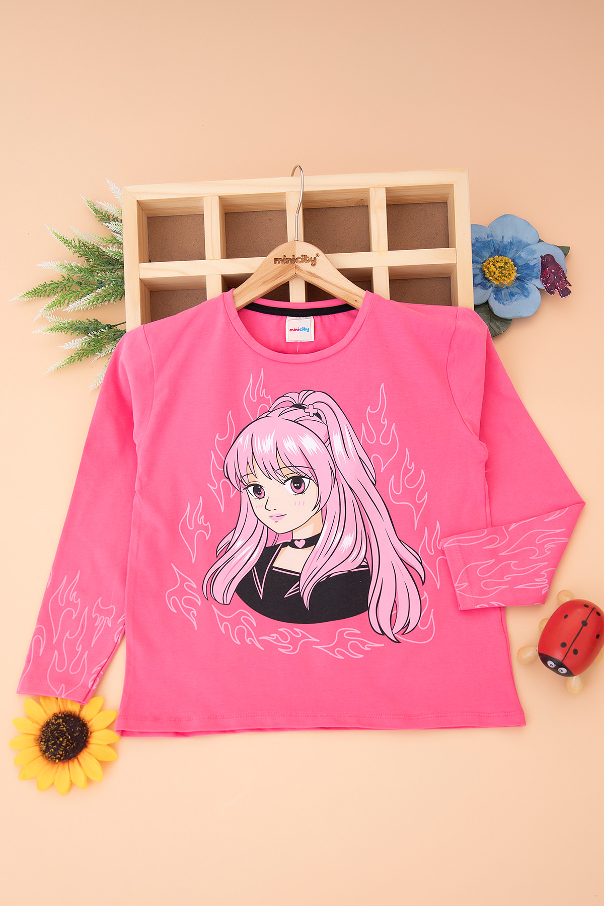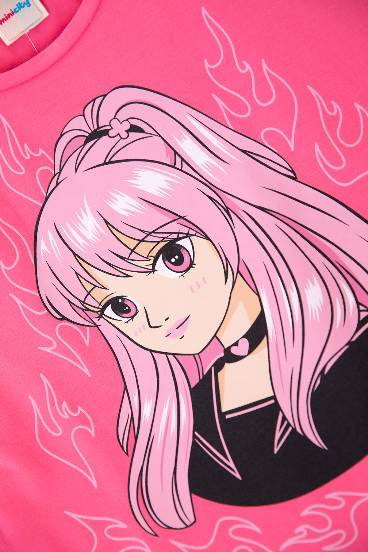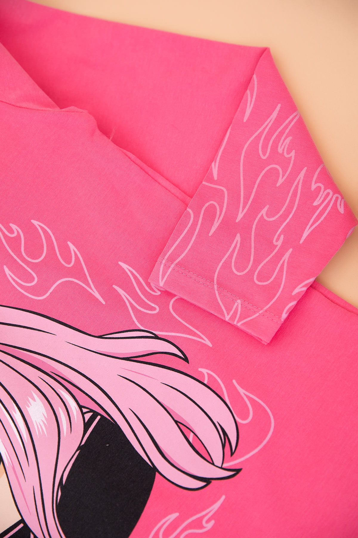 Kız Çocuk Pembe Saçlı Alevli Kız Body - 2428 (8-14 Yaş)
