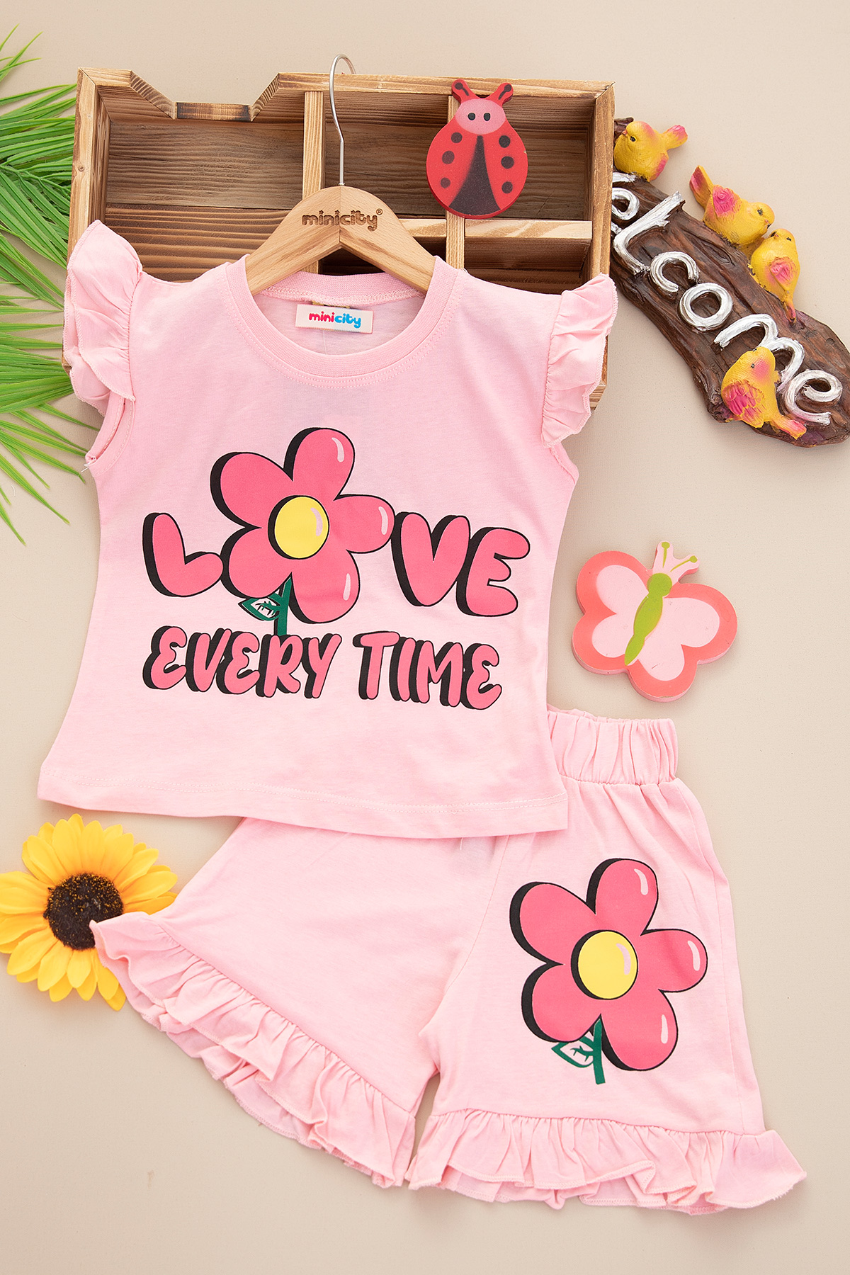 Kız Çocuk Penye Love Baskılı Takım - 12588 (4-8 Yaş)