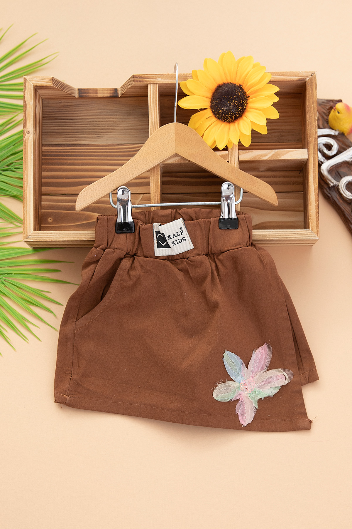 Kız Çocuk Pft Tül Çiçekli Şort Etek - 371 (3-10 Yaş)