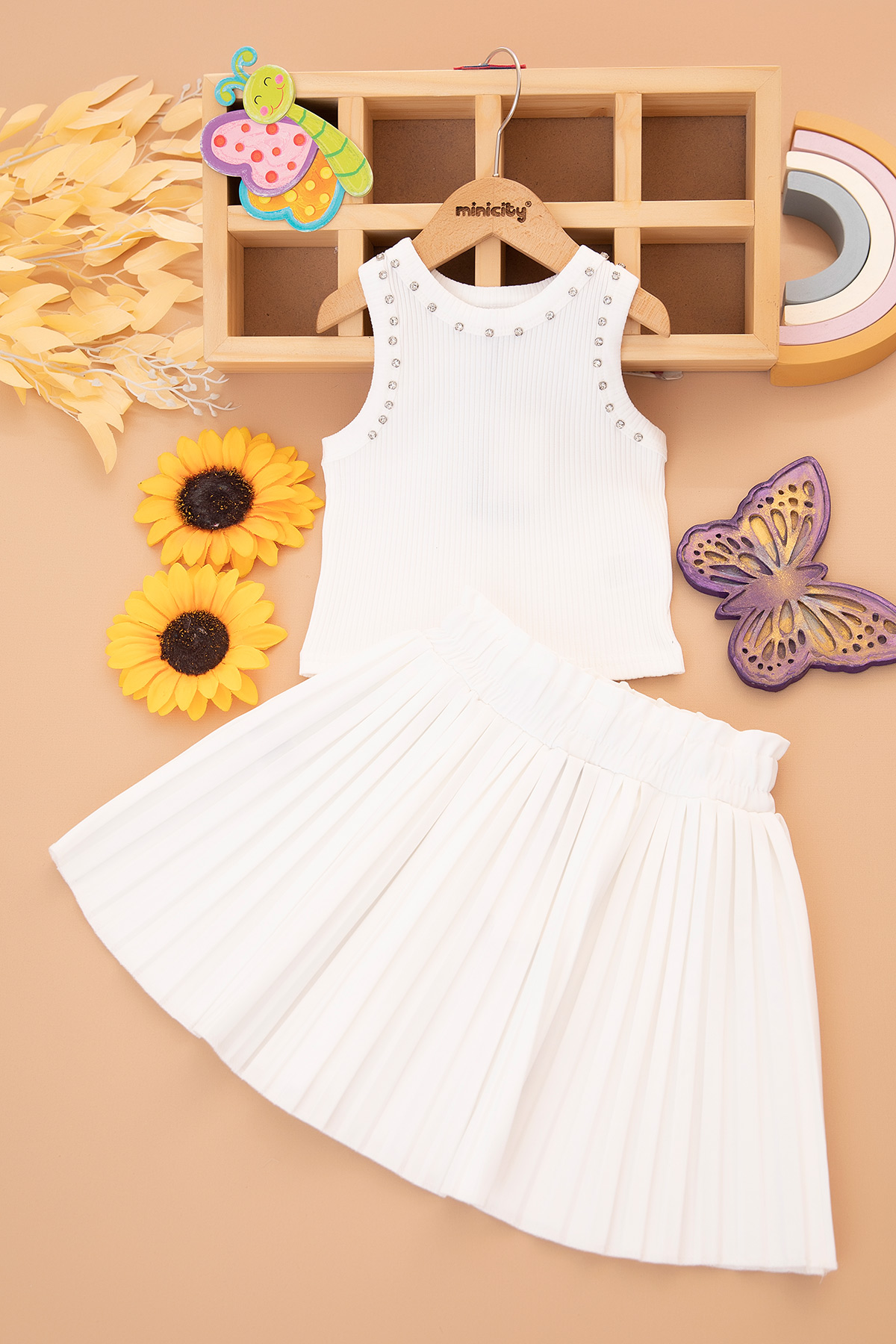 Kız Çocuk Pileli Etek Crop Takım - 4723-4621 (6-14 Yaş)