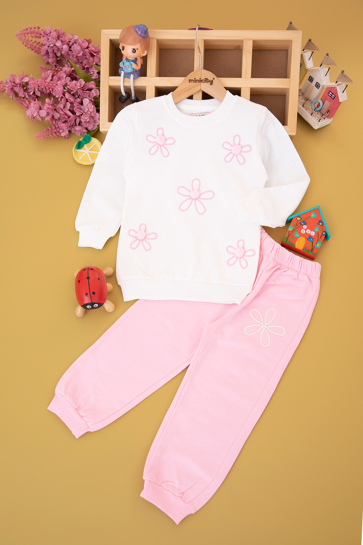 Kız Çocuk Ponpon Aksesuarlı Takım (3-10 Yaş)