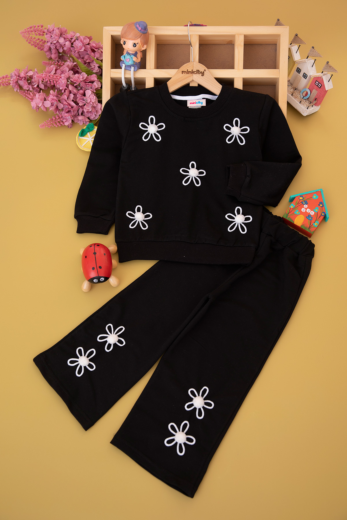 Kız Çocuk Ponpon Aksesuarlı Takım (3-10 Yaş)