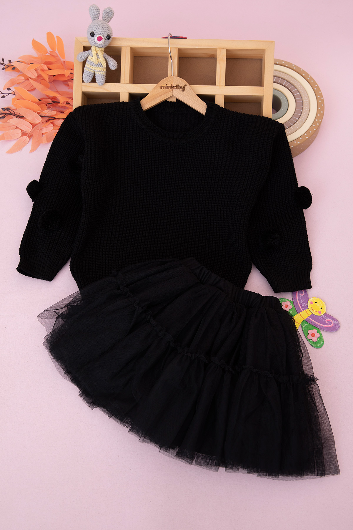 Kız Çocuk Ponpon Tüllü Triko Takım - 4190 (6-9 Yaş)