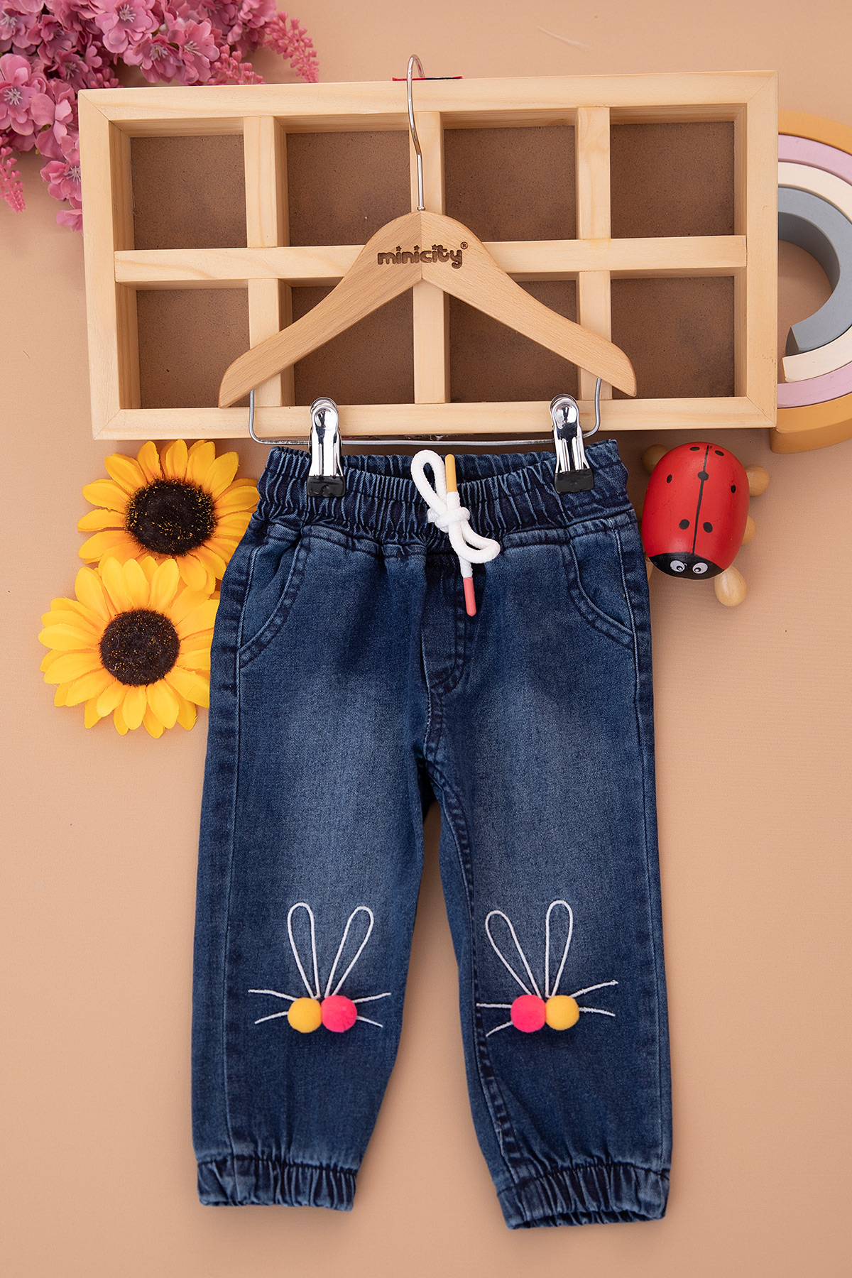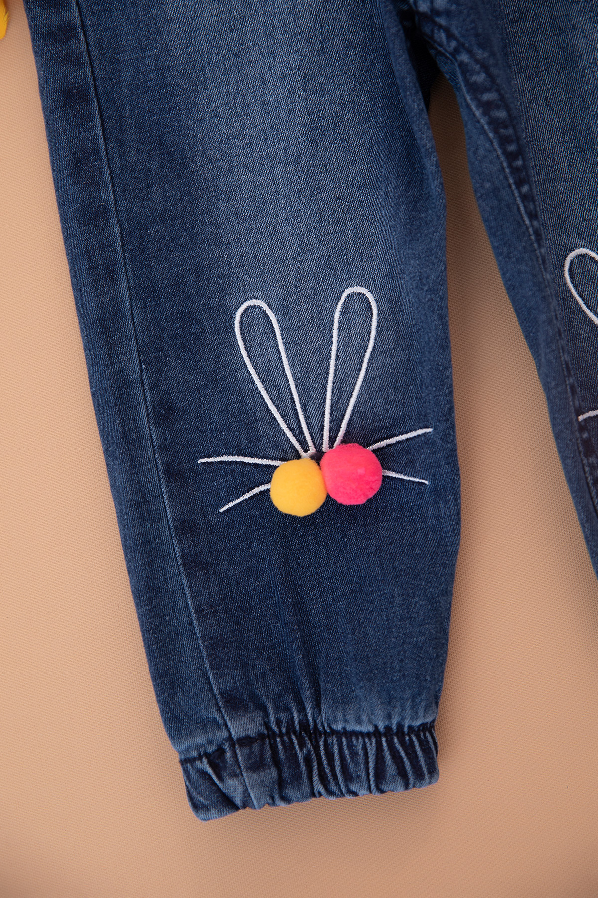 Kız Çocuk Ponponlu Kot Pantolon - 300601 (1-5 Yaş)