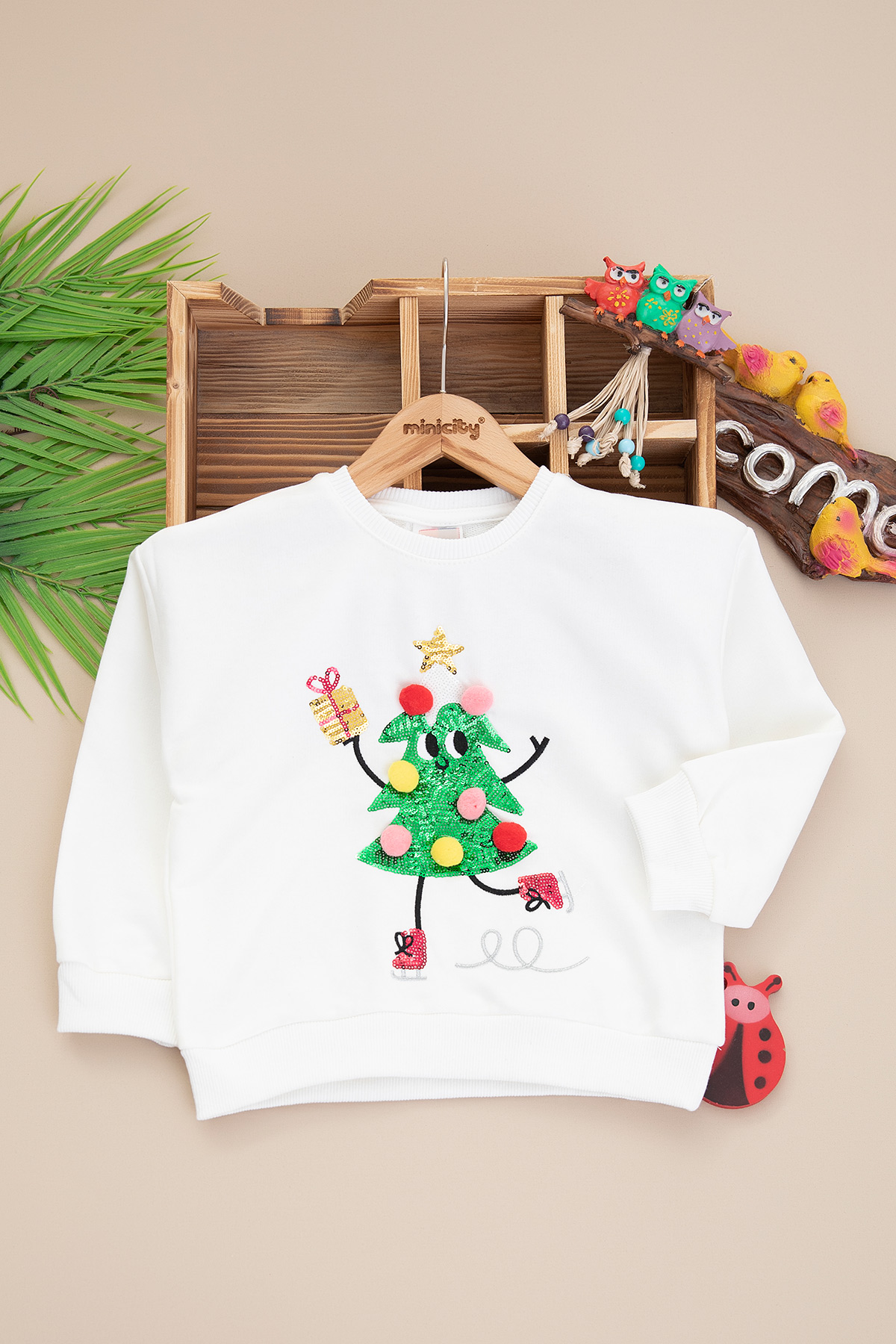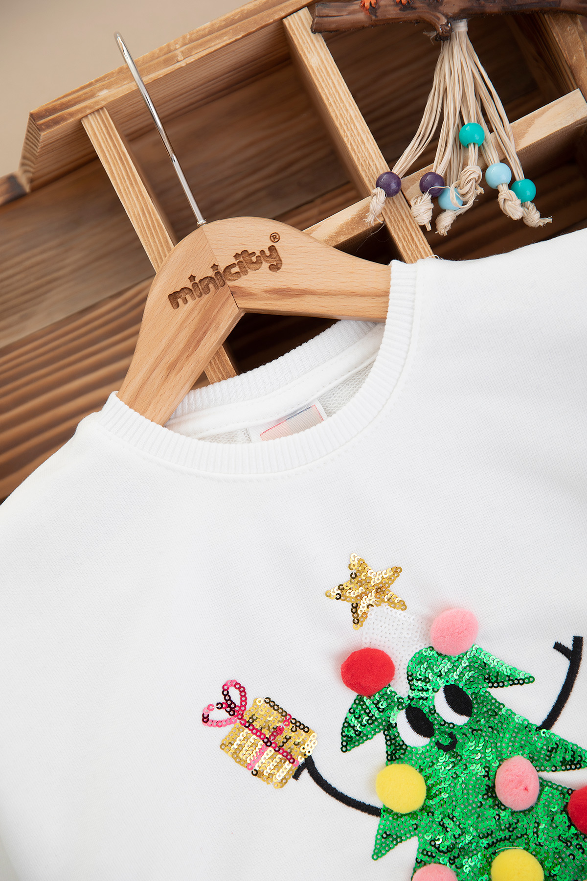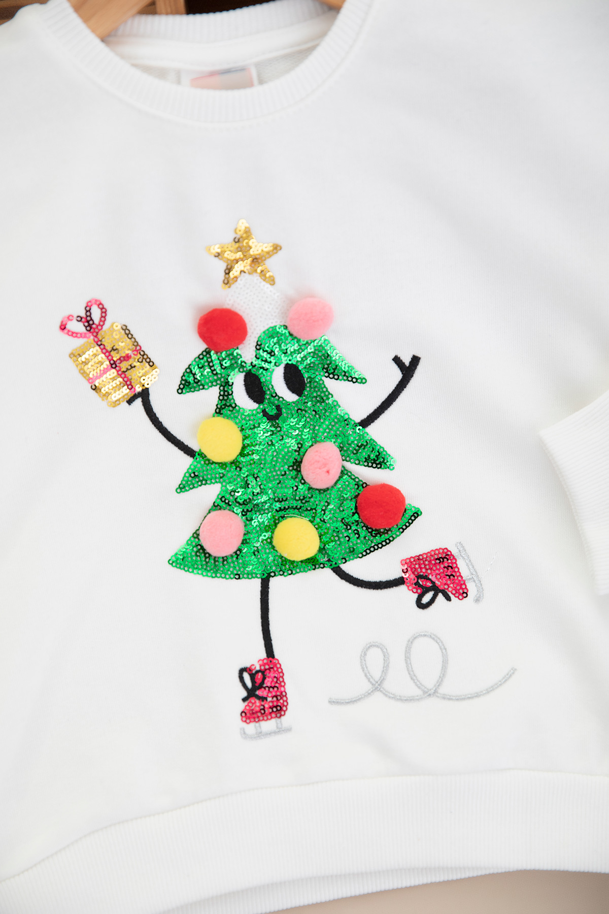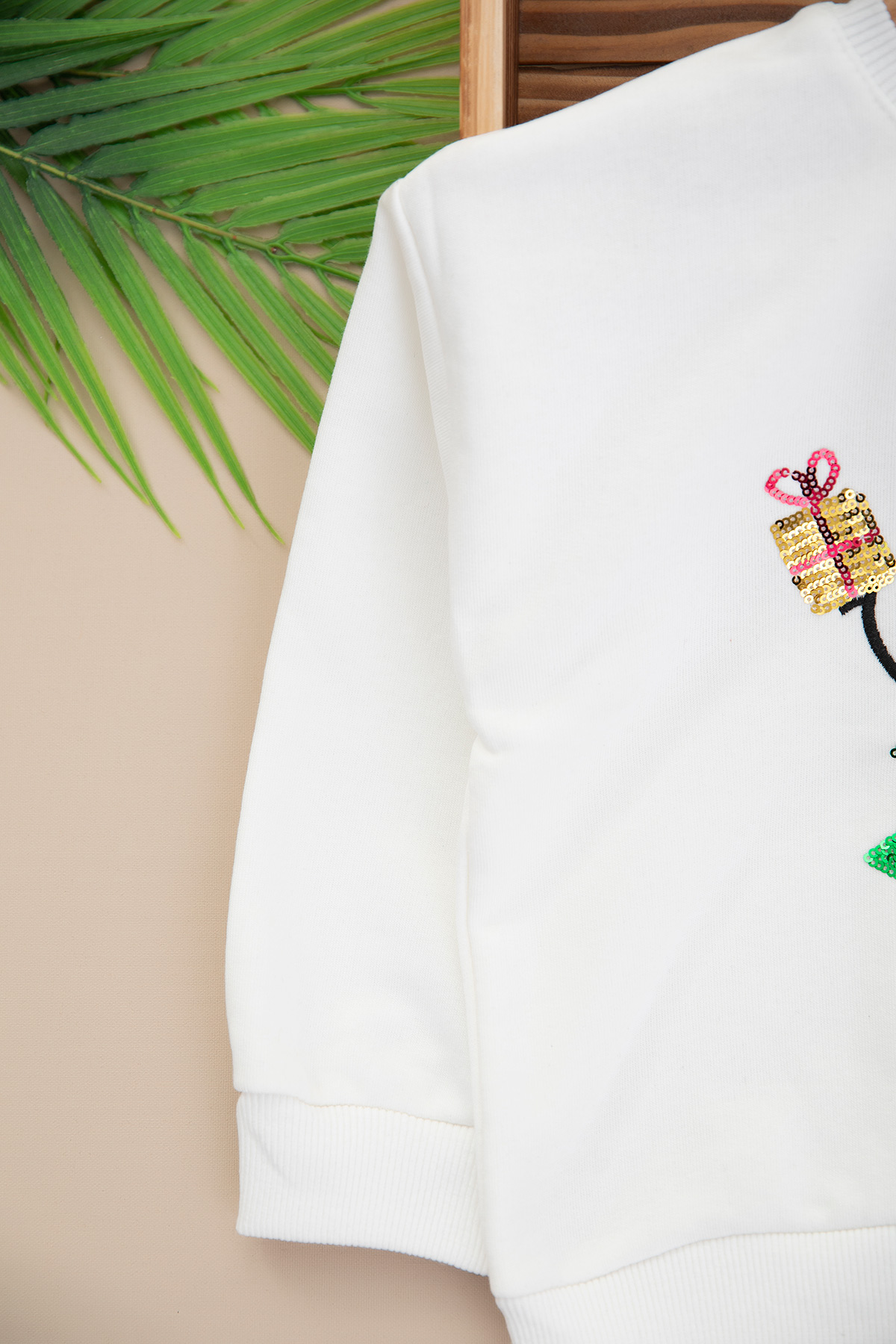 Kız Çocuk Ponponlu Yılbaşı Sweat - 1114 (3-10 Yaş)