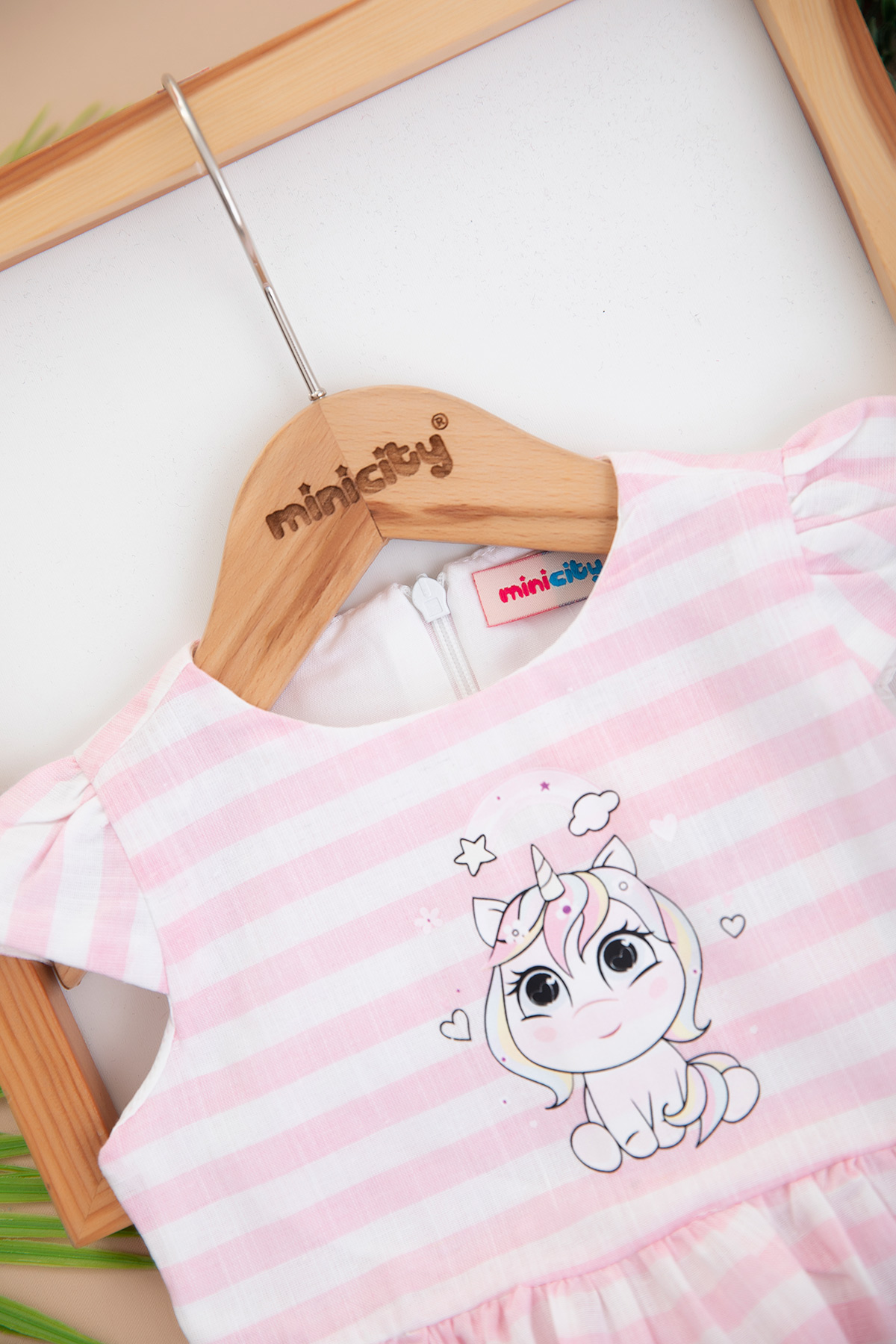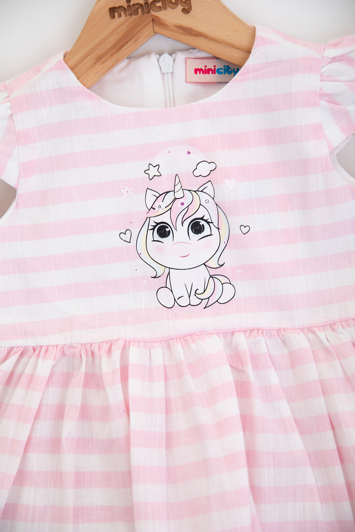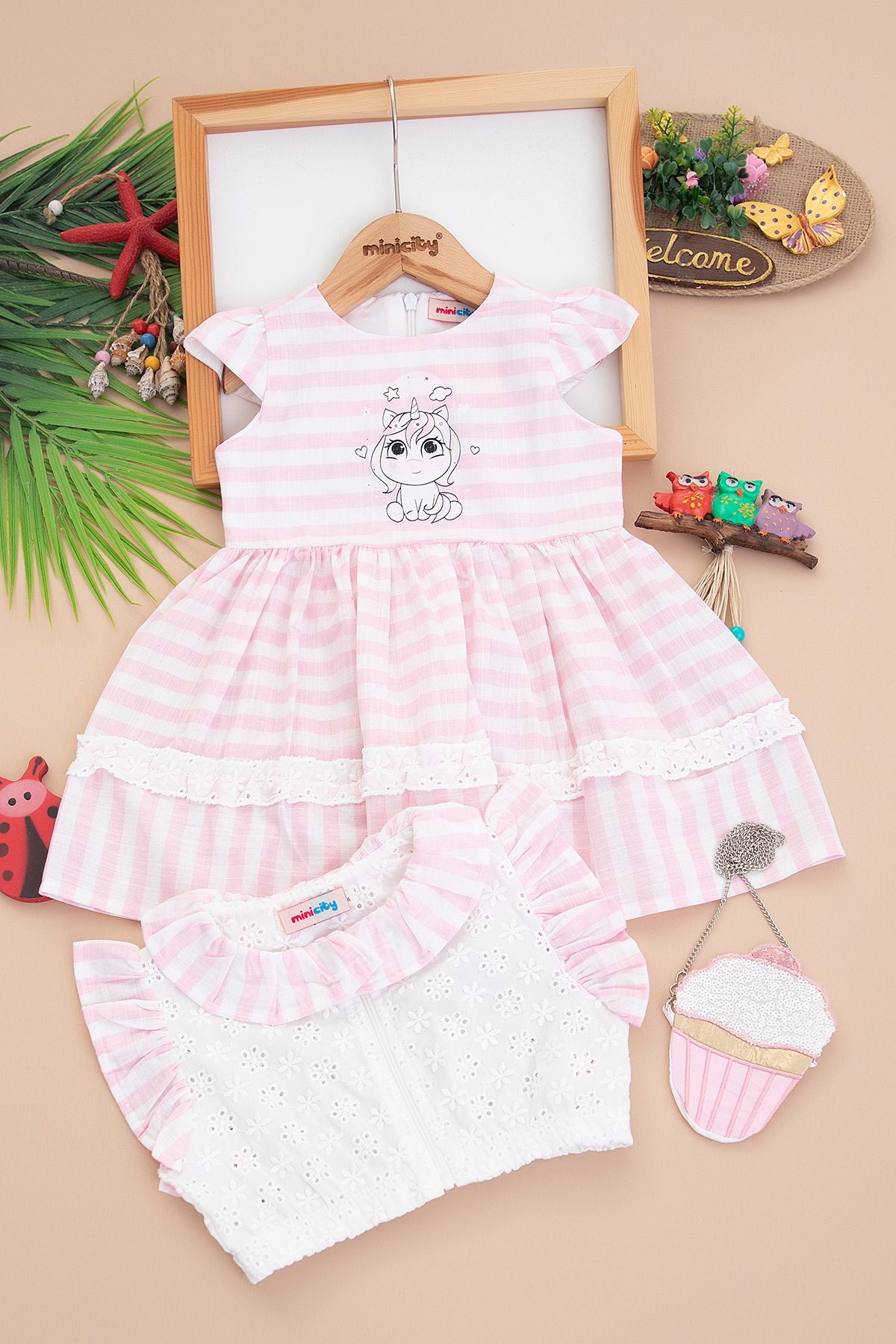 Kız Çocuk Pony Baskılı Brode Yelekli Elbise - 4105 (1-4 Yaş)