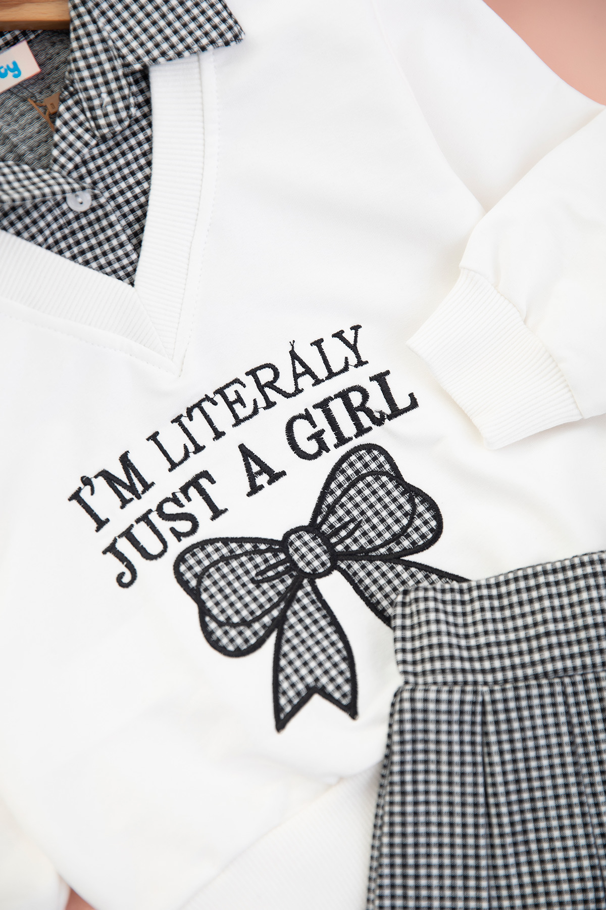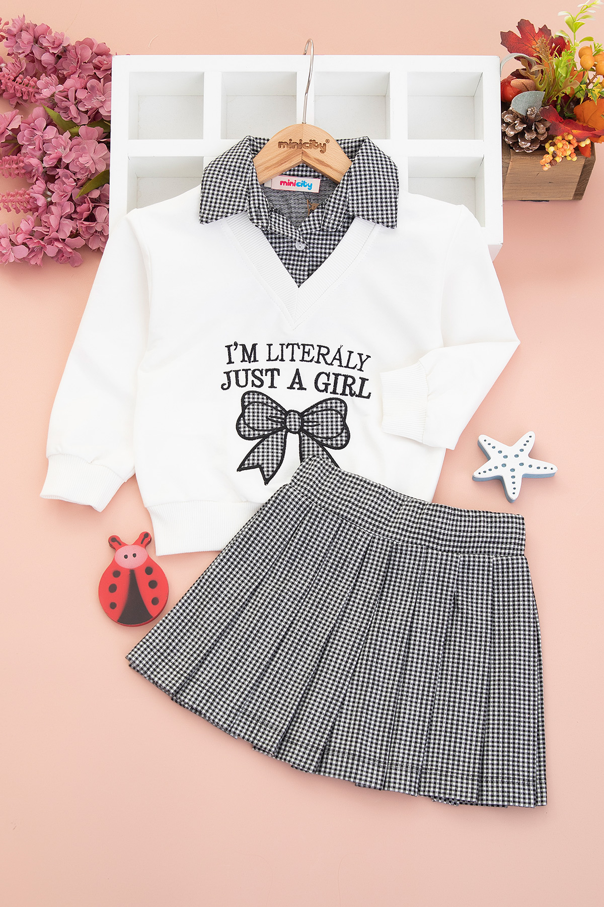 Kız Çocuk Pötikareli Fiyonklu Etekli Takım - 526198 (3-7 Yaş)
