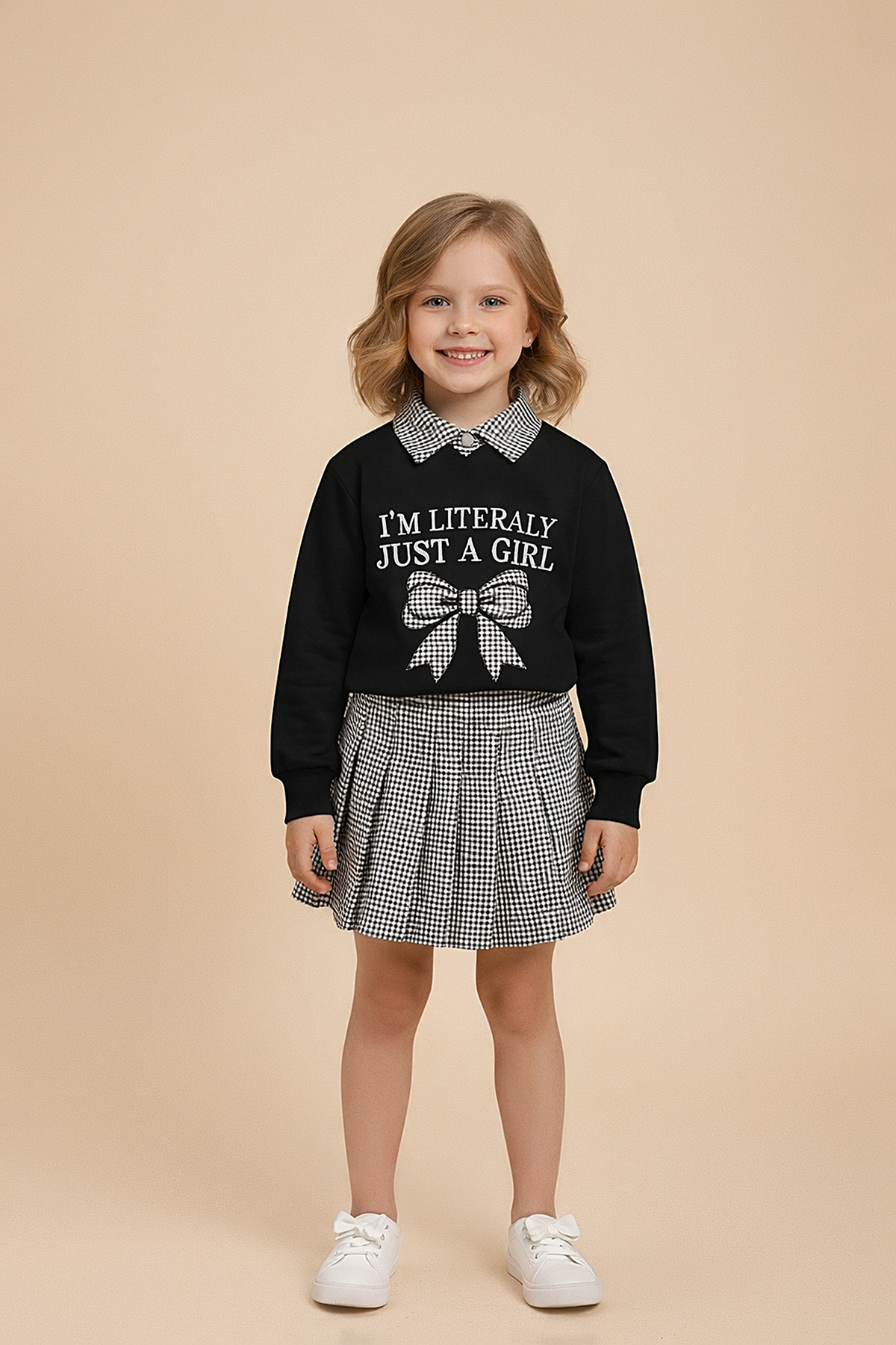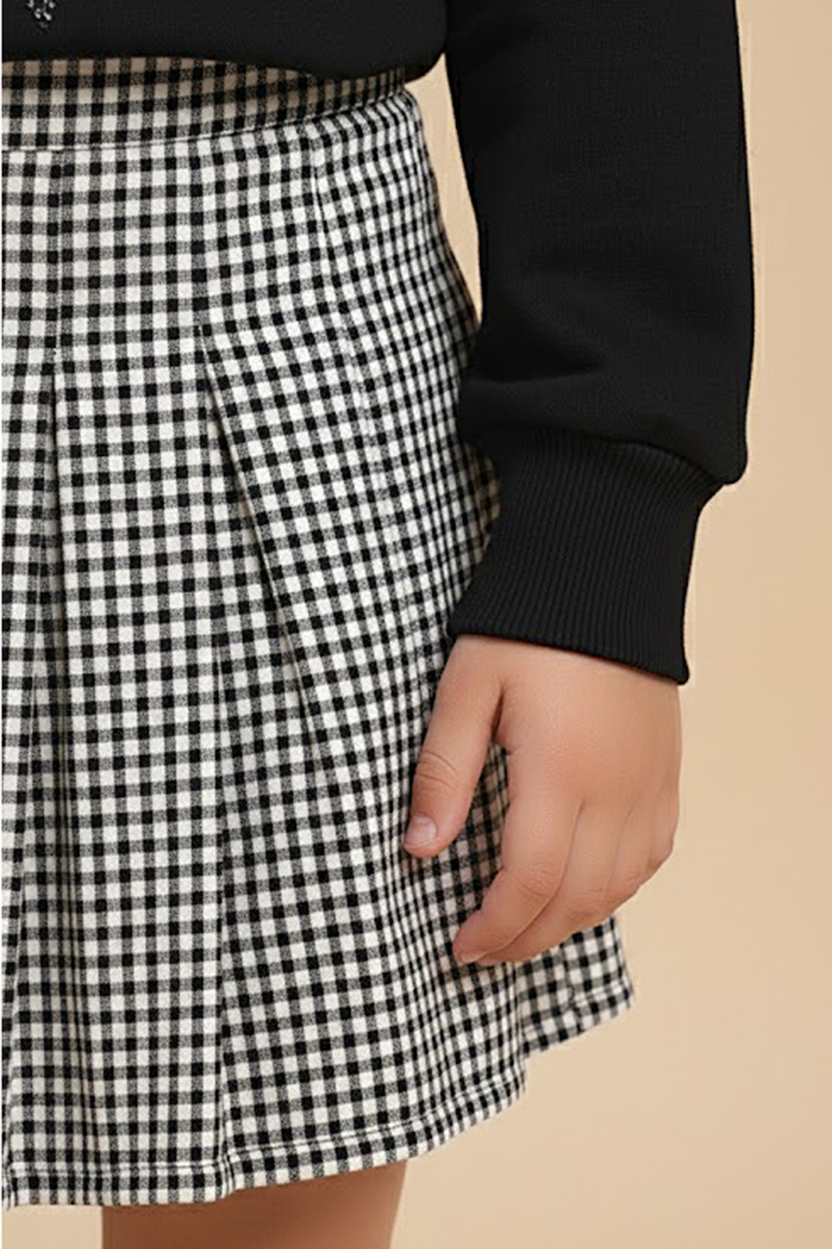 Kız Çocuk Pötikareli Fiyonklu Etekli Takım - 526198 (3-7 Yaş)