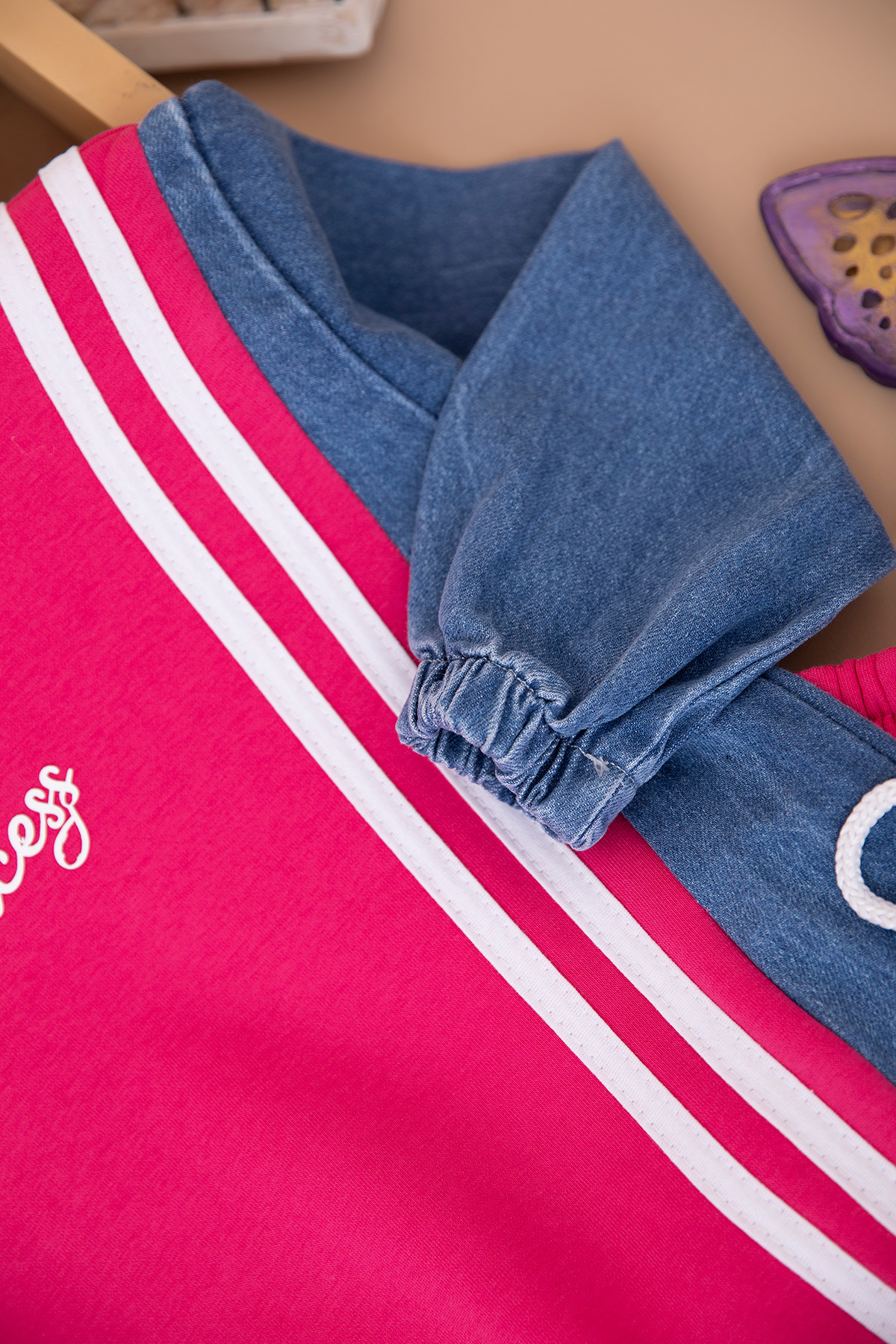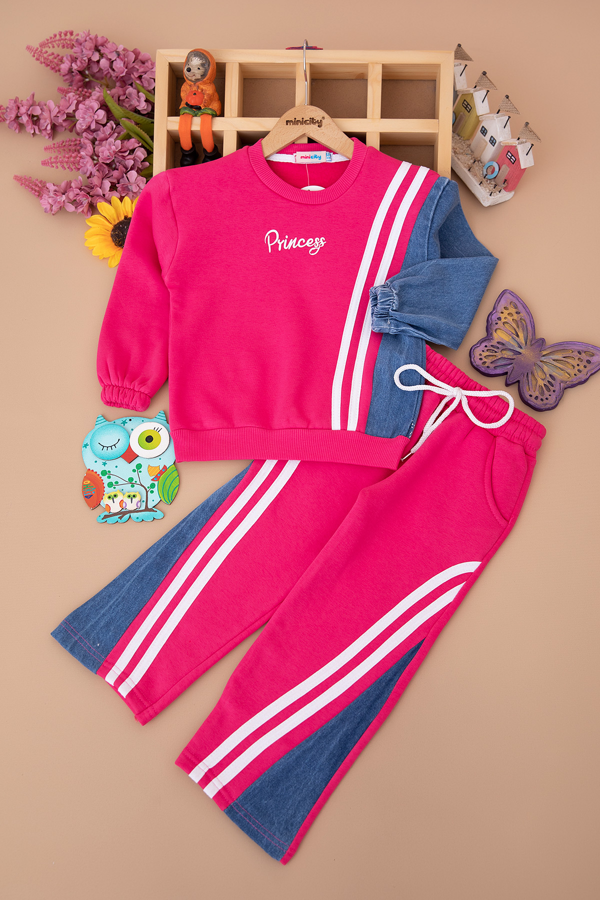 Kız Çocuk Princes Nakışlı Kotlu Üçip Takım (3-10 Yaş)