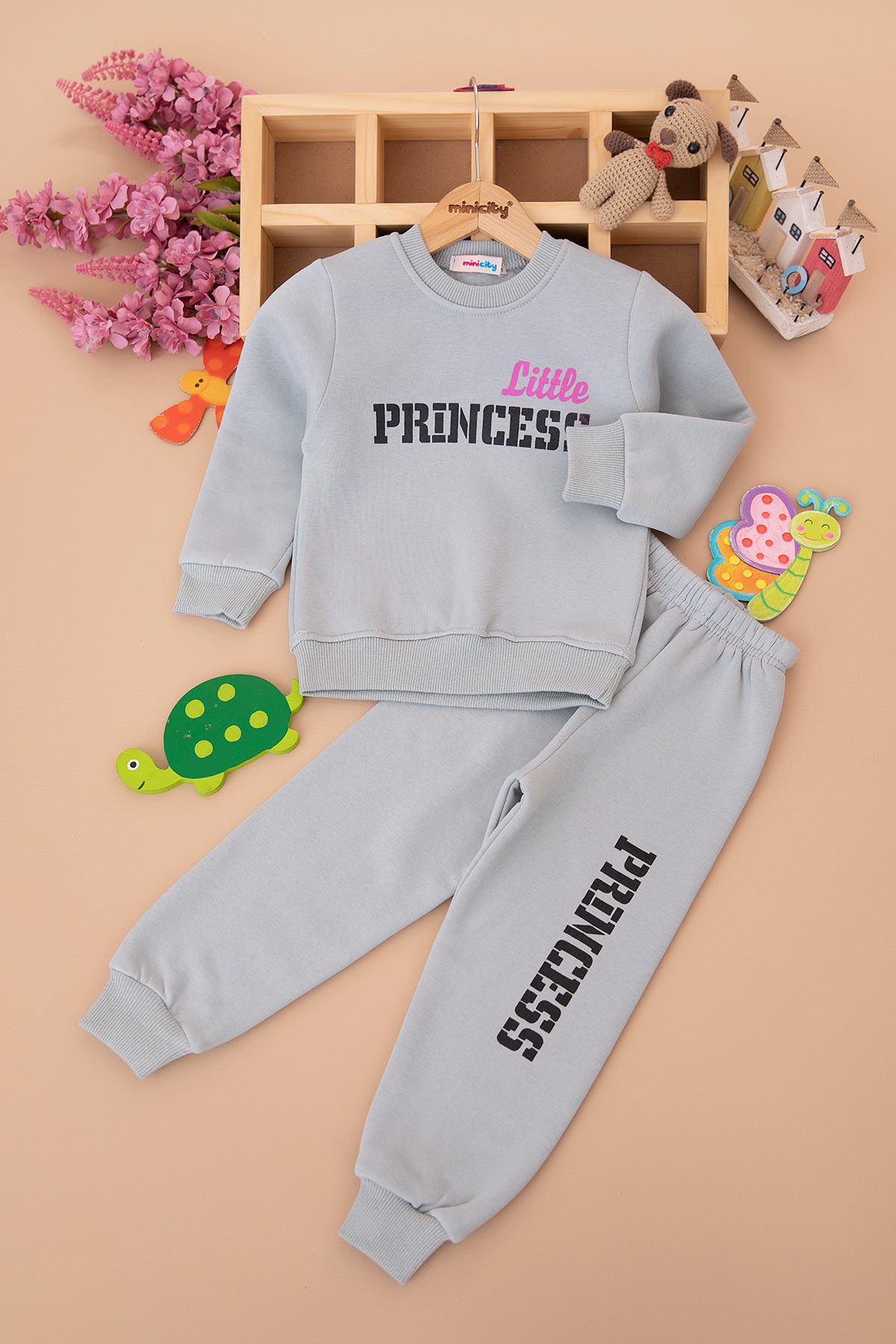 Kız Çocuk Princess Baskılı Üçip Takım - 50910 (3-7 Yaş)