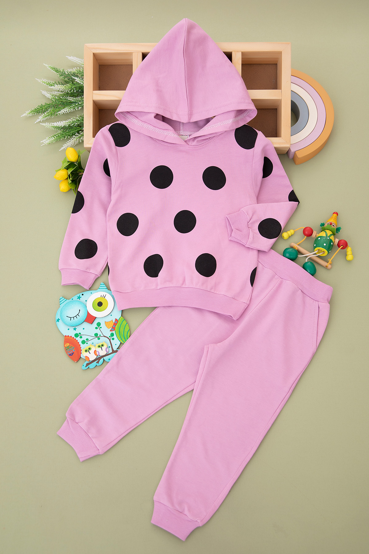 Kız Çocuk Puan Baskılı Kapşonlu Takım - 3427 (3-6 Yaş)