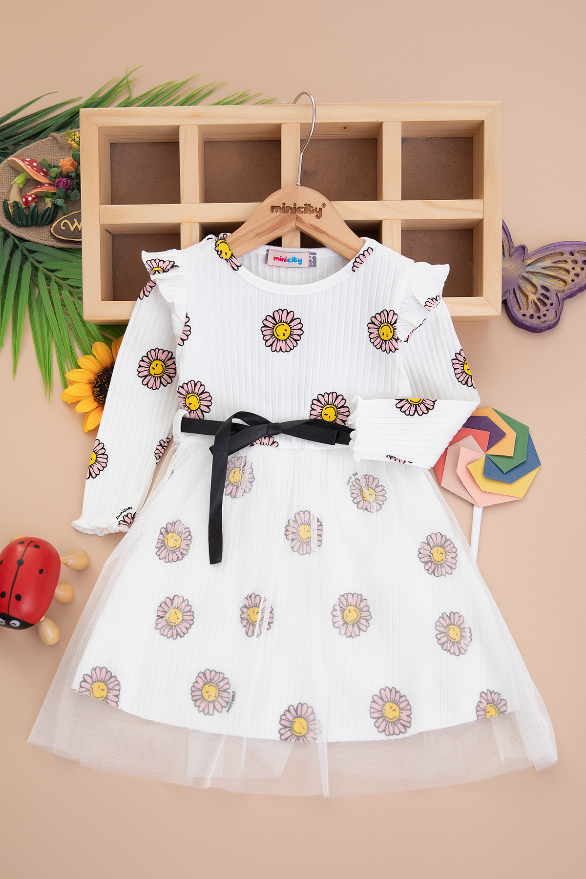 Kız Çocuk Puan Baskılı Tüllü Elbise - 3852 (3-8 Yaş)
