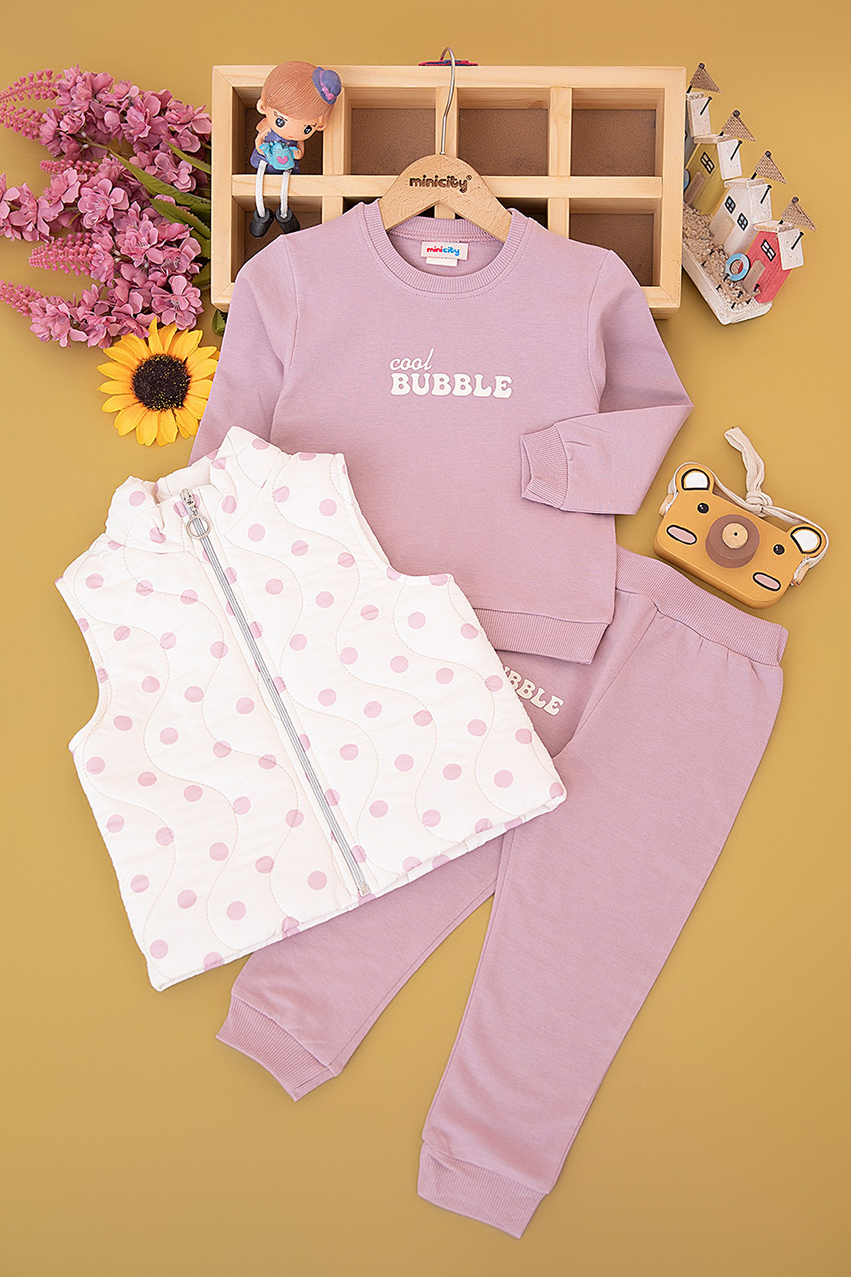 Kız Çocuk Puan Baskılı Yelekli Takım - 3701 (3-6 YAş)