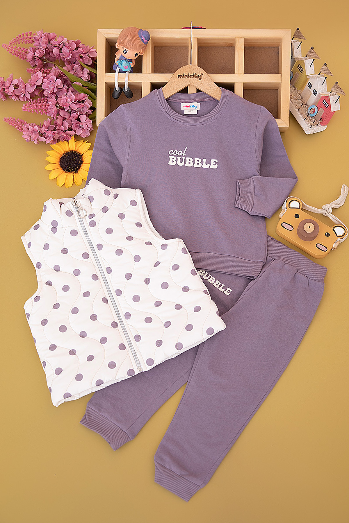Kız Çocuk Puan Baskılı Yelekli Takım - 3701 (3-6 YAş)