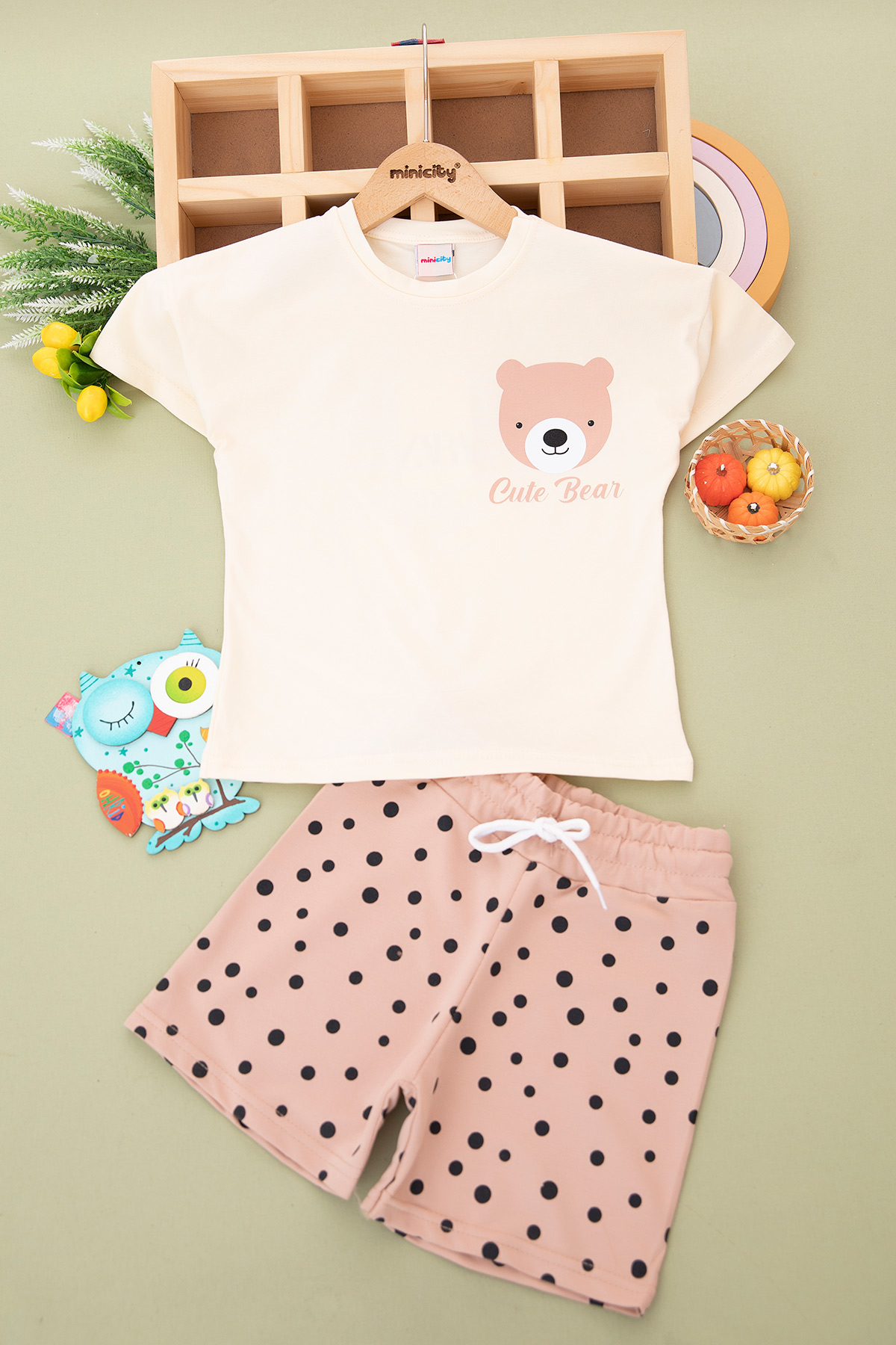 Kız Çocuk Puanlı Ayıcık Şortlu Takım - 3791 (3-10 Yaş)