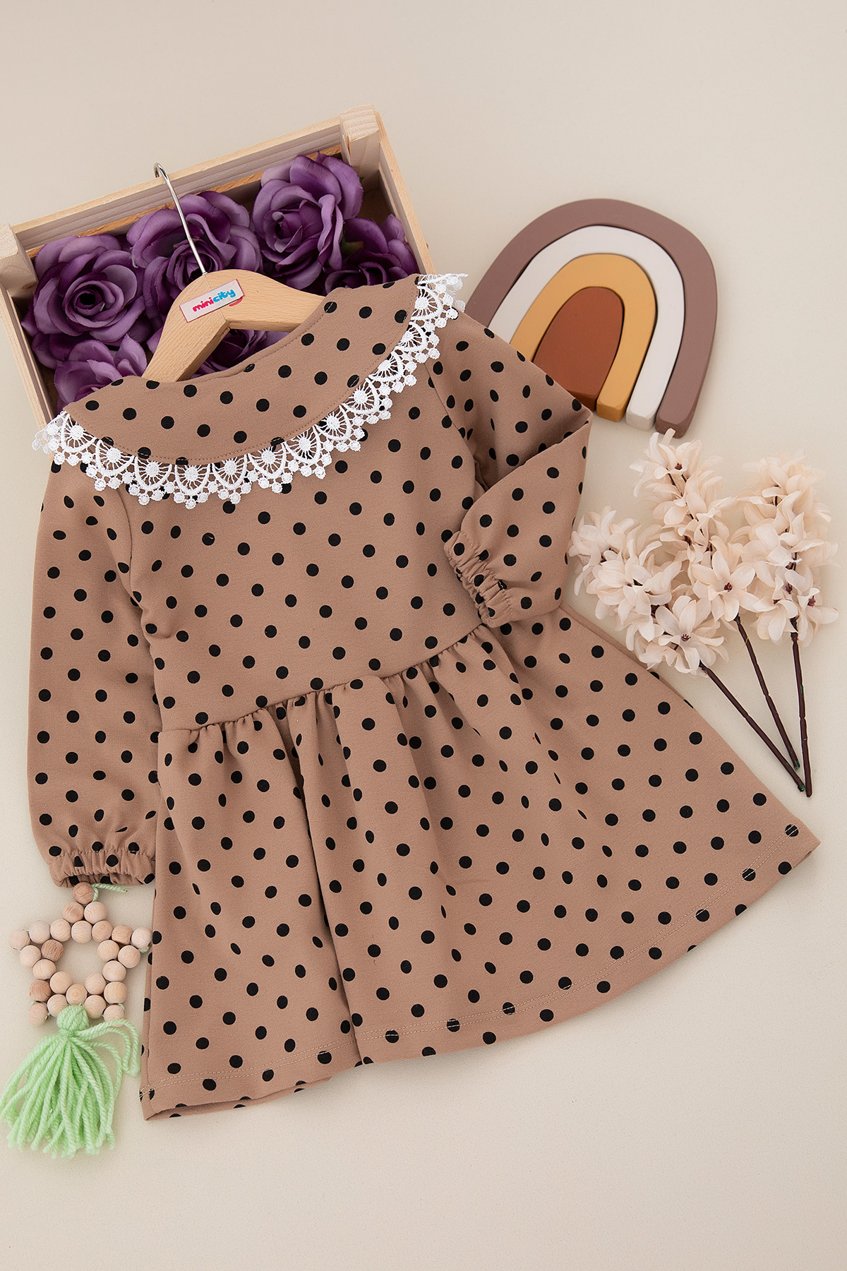 Kız Çocuk Puanlı Bebe Yaka Elbise - 7505 (3-7 Yaş)