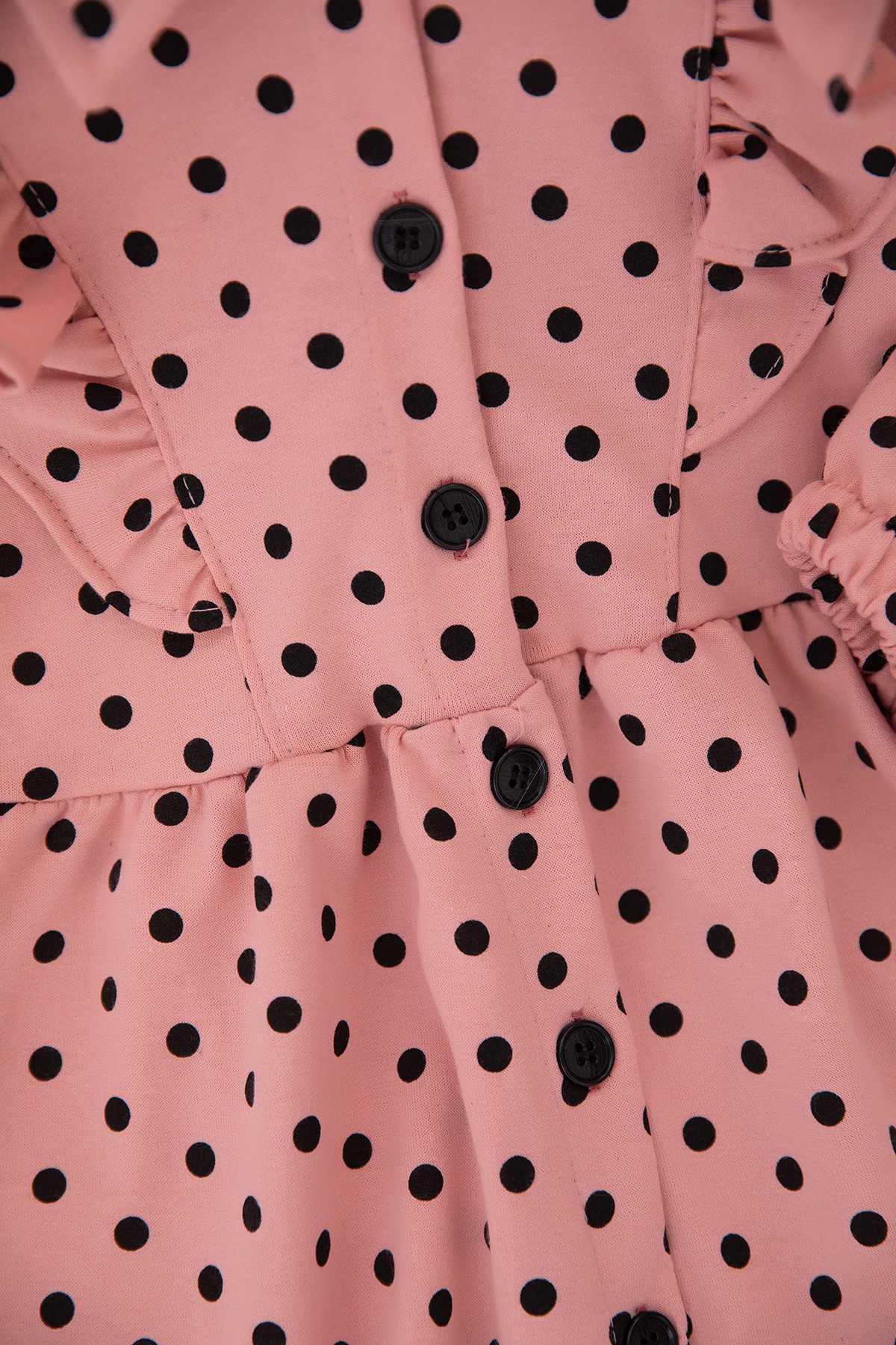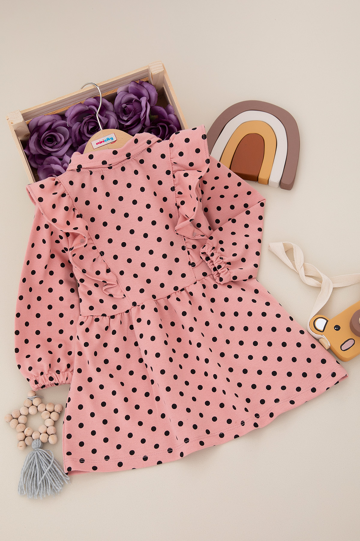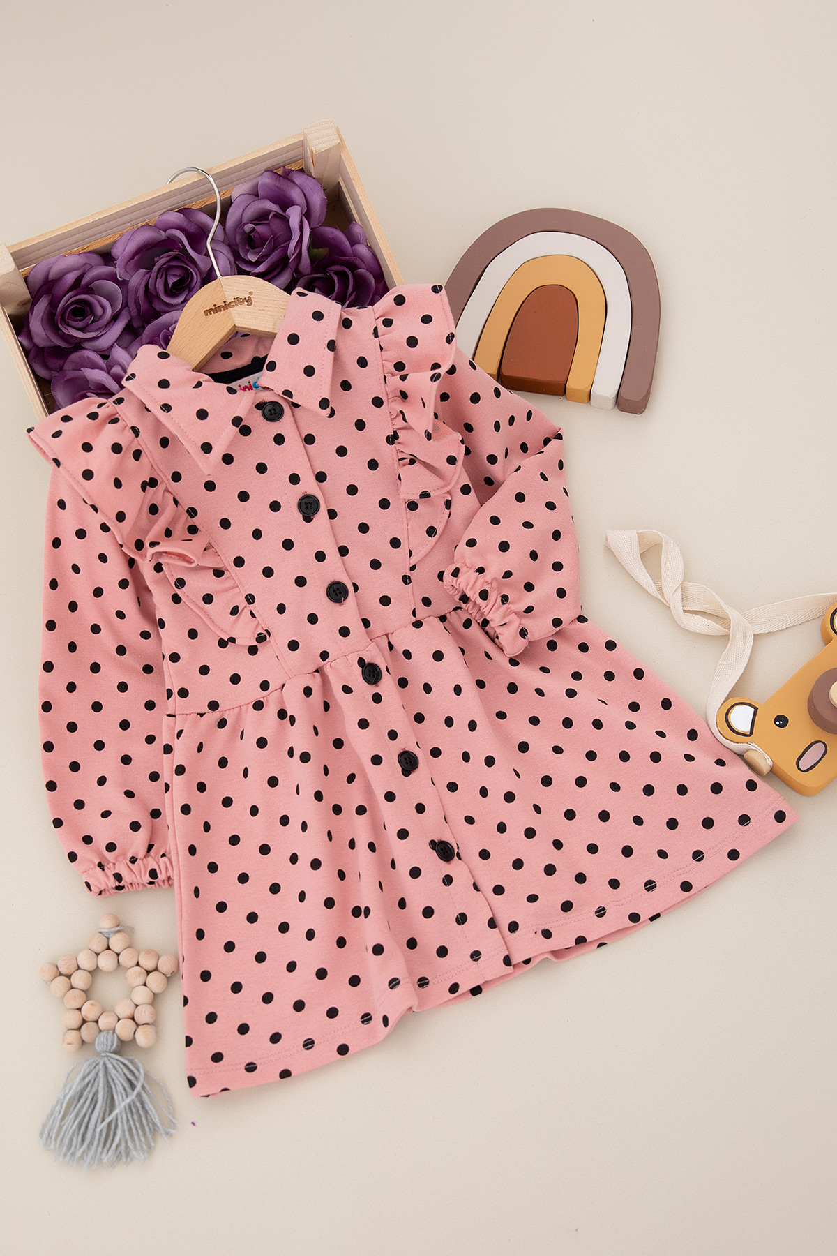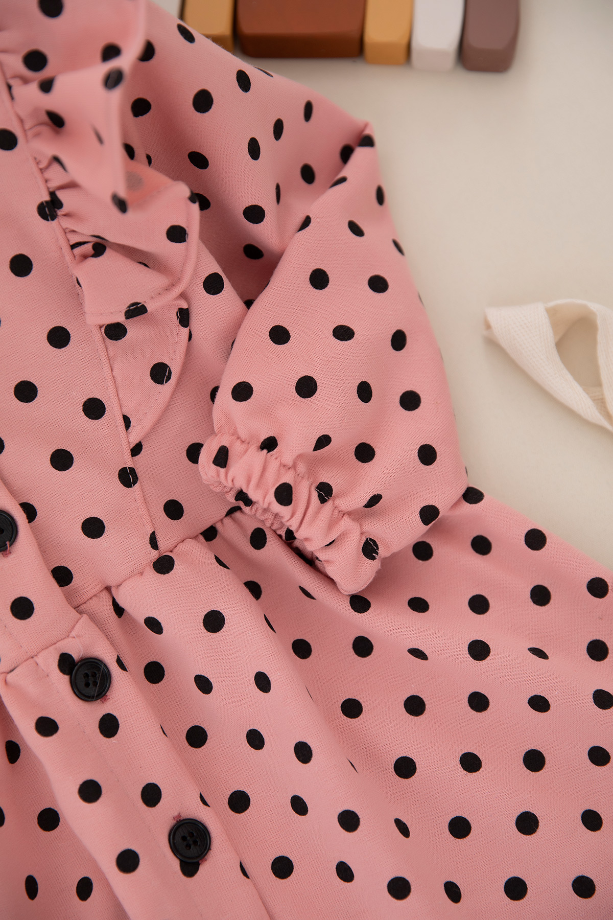 Kız Çocuk Puanlı Kol Lastikli Yakalı Elbise - 7503 (4-8 Yaş)