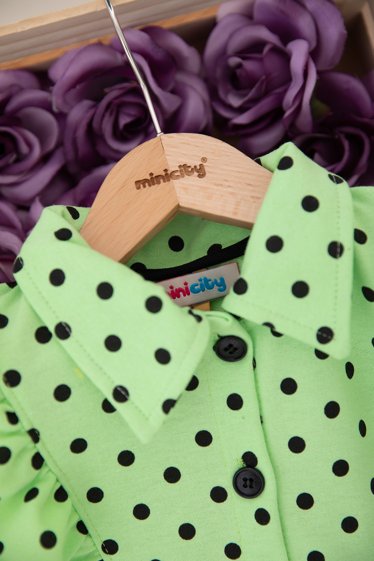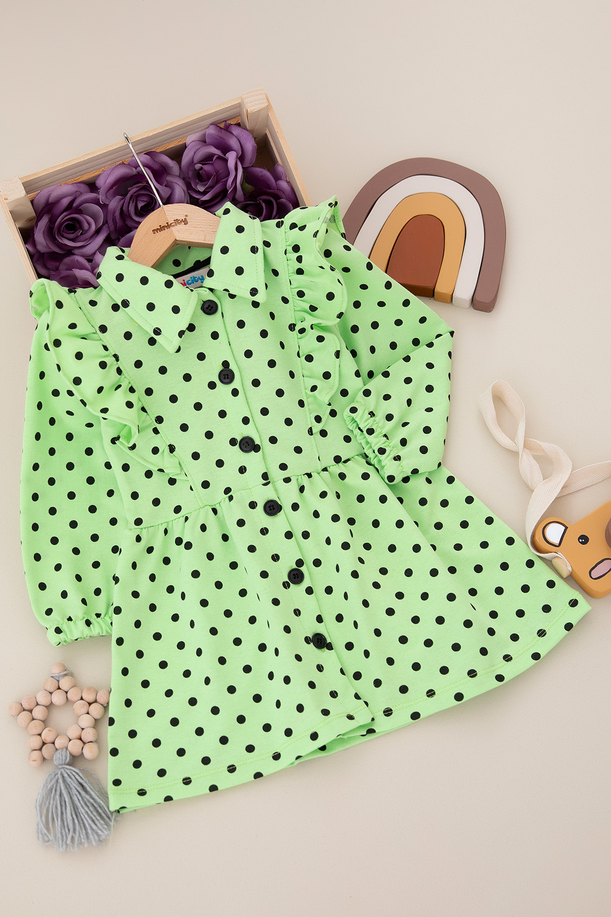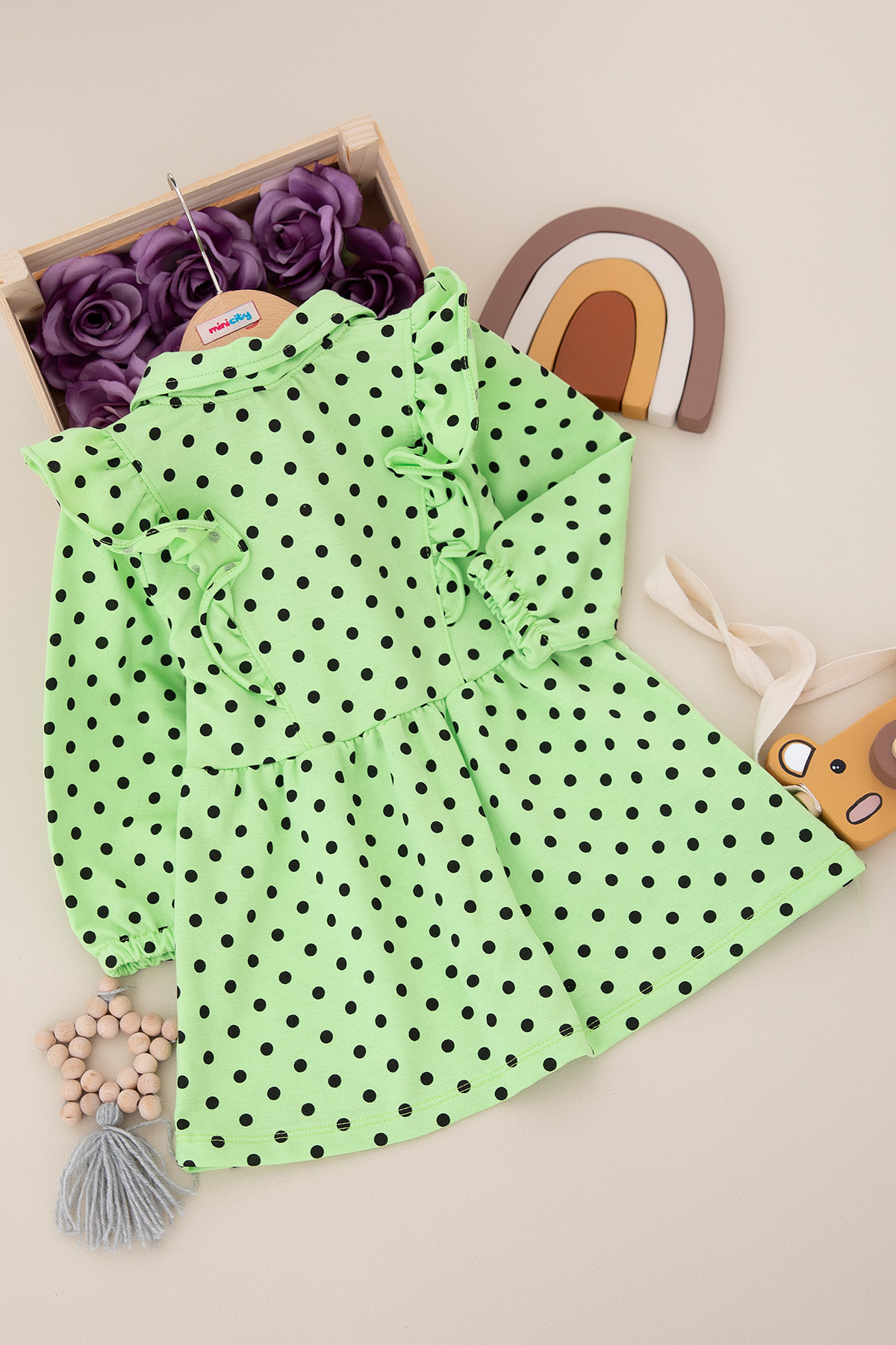 Kız Çocuk Puanlı Kol Lastikli Yakalı Elbise - 7503 (4-8 Yaş)