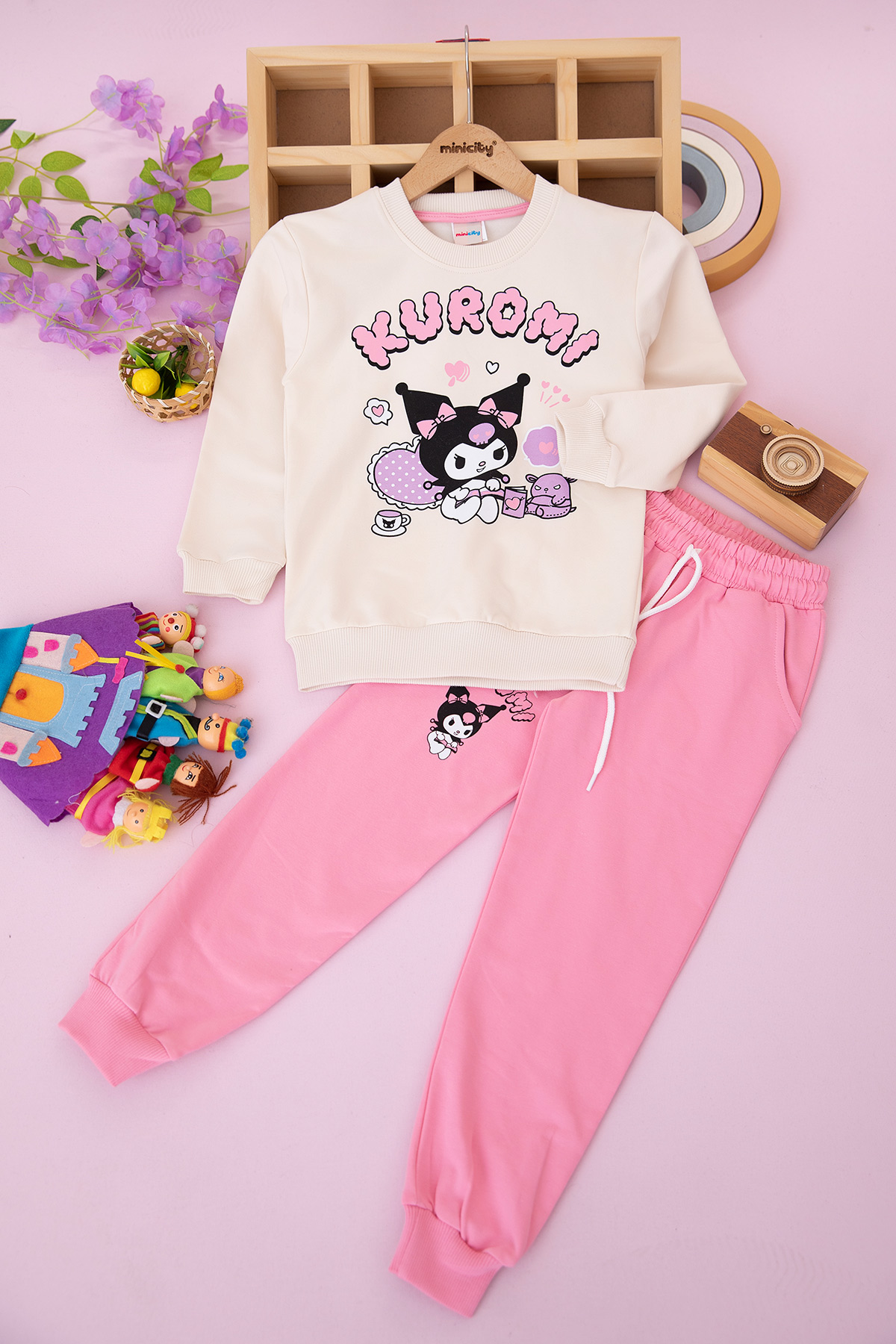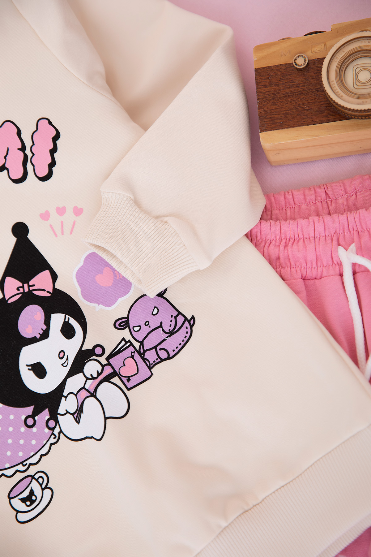 Kız Çocuk Puanlı Kuromi Baskılı Şardonlu Takım (5-8 Yaş)