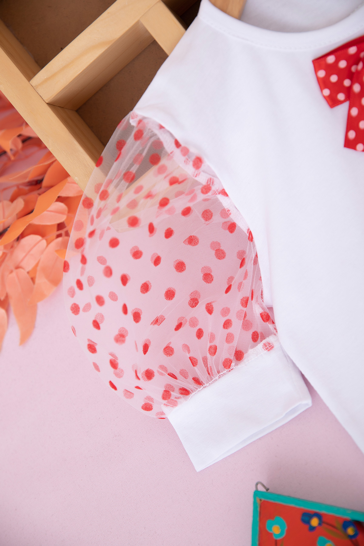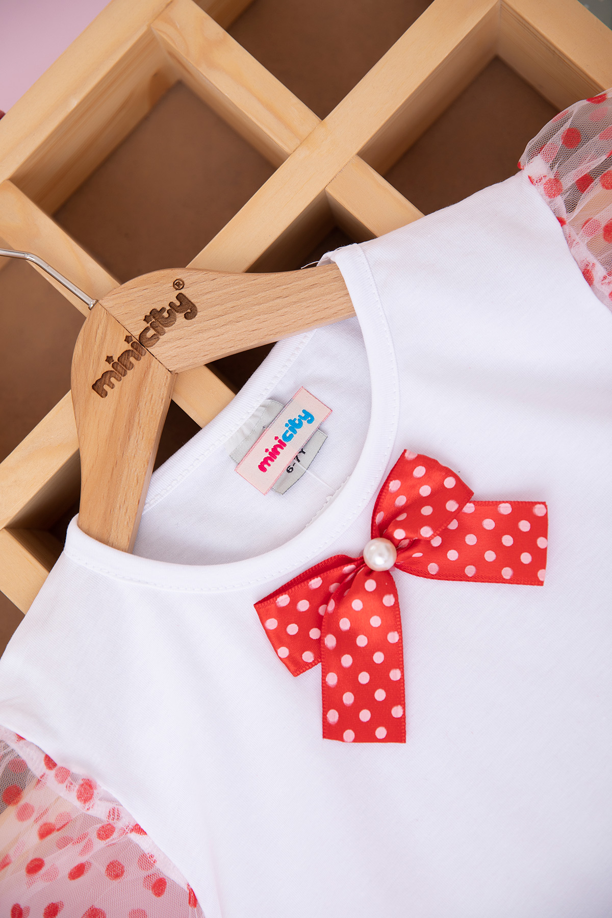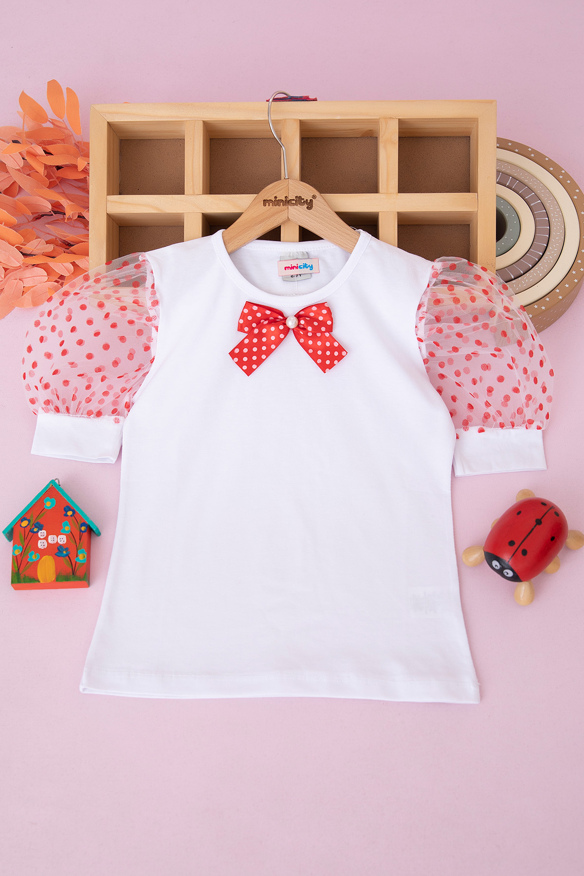 Kız Çocuk Puantiyeli Fiyonklu T-Shirt - 4104 (7-11 Yaş)