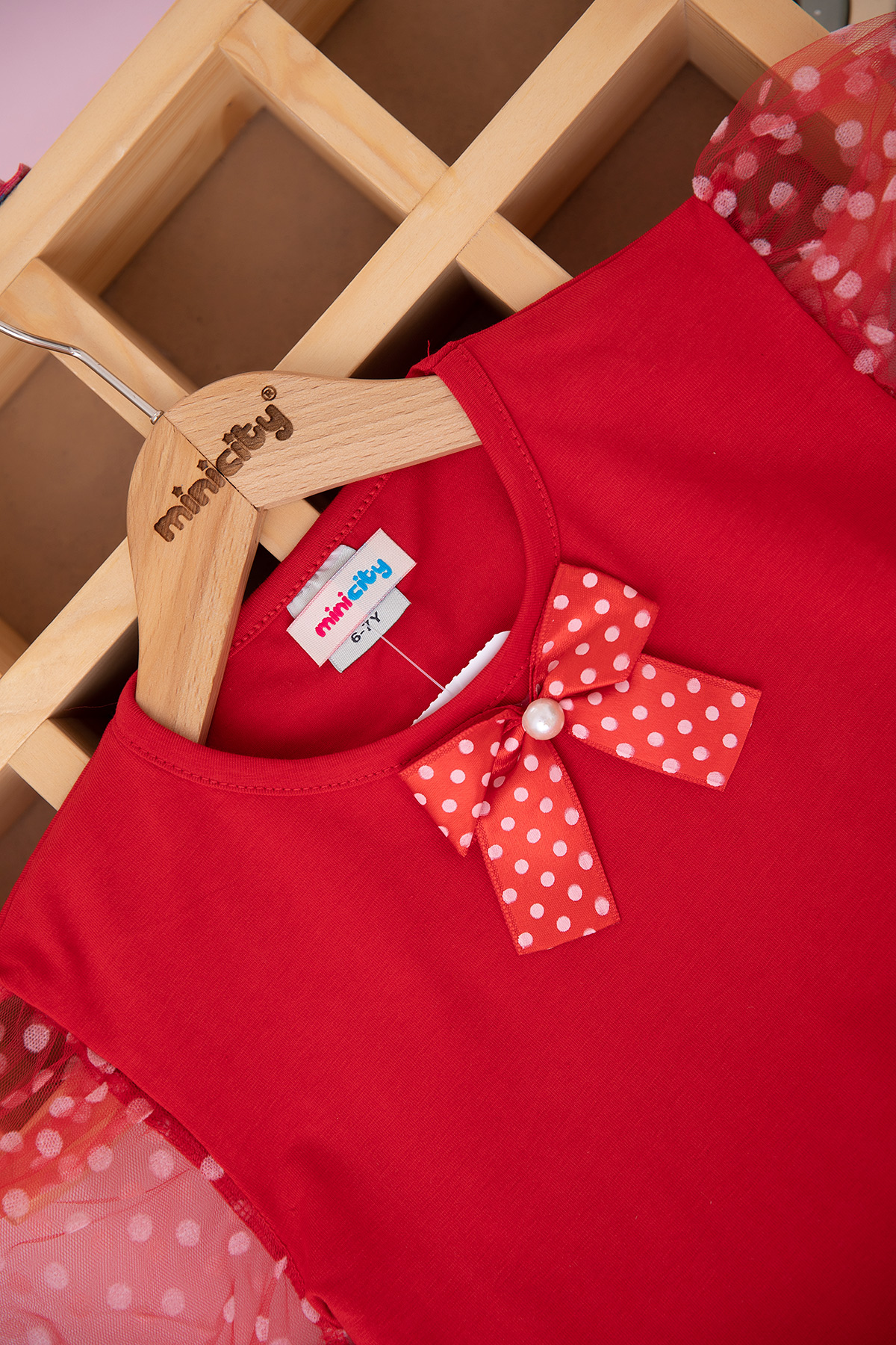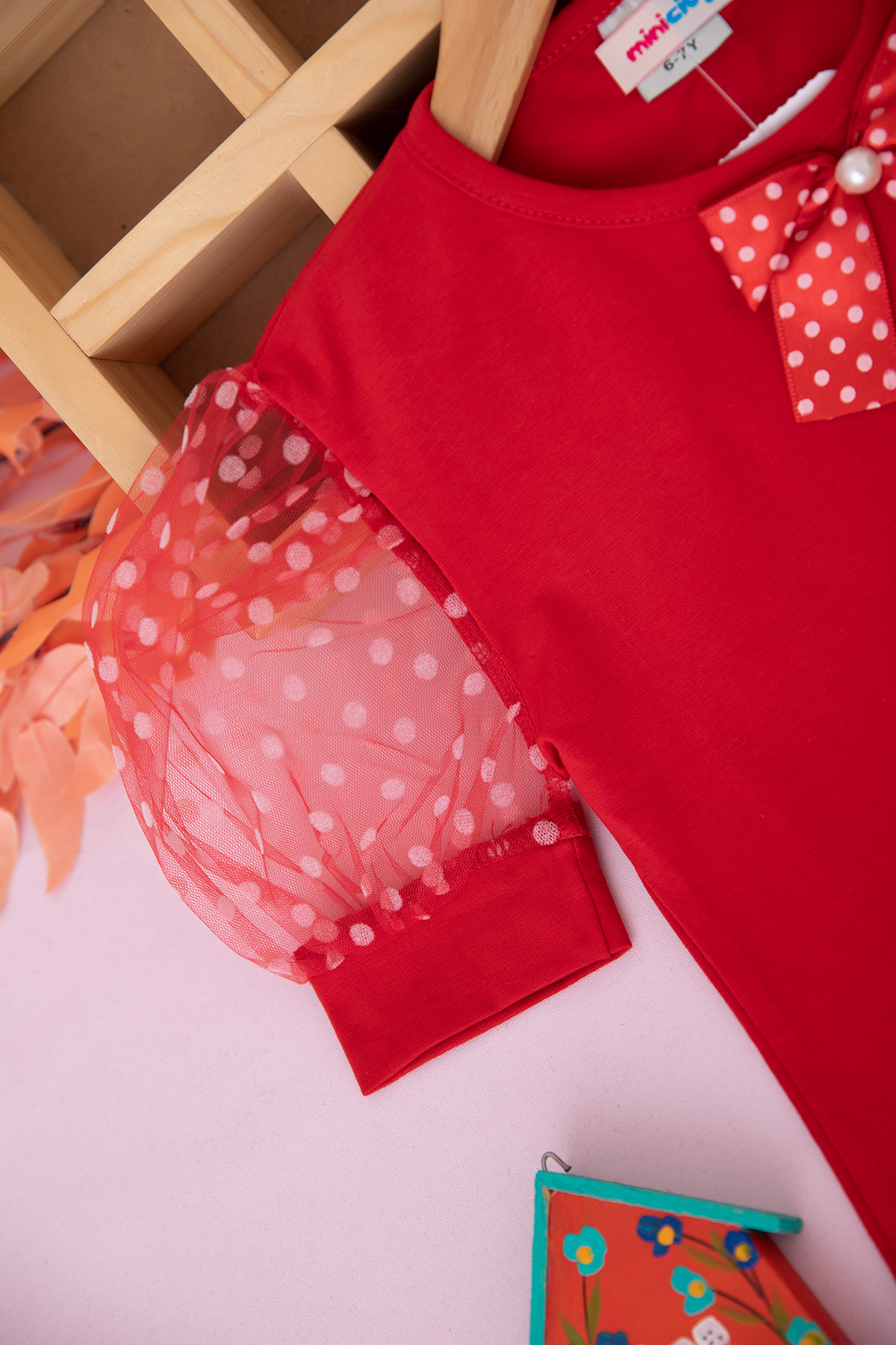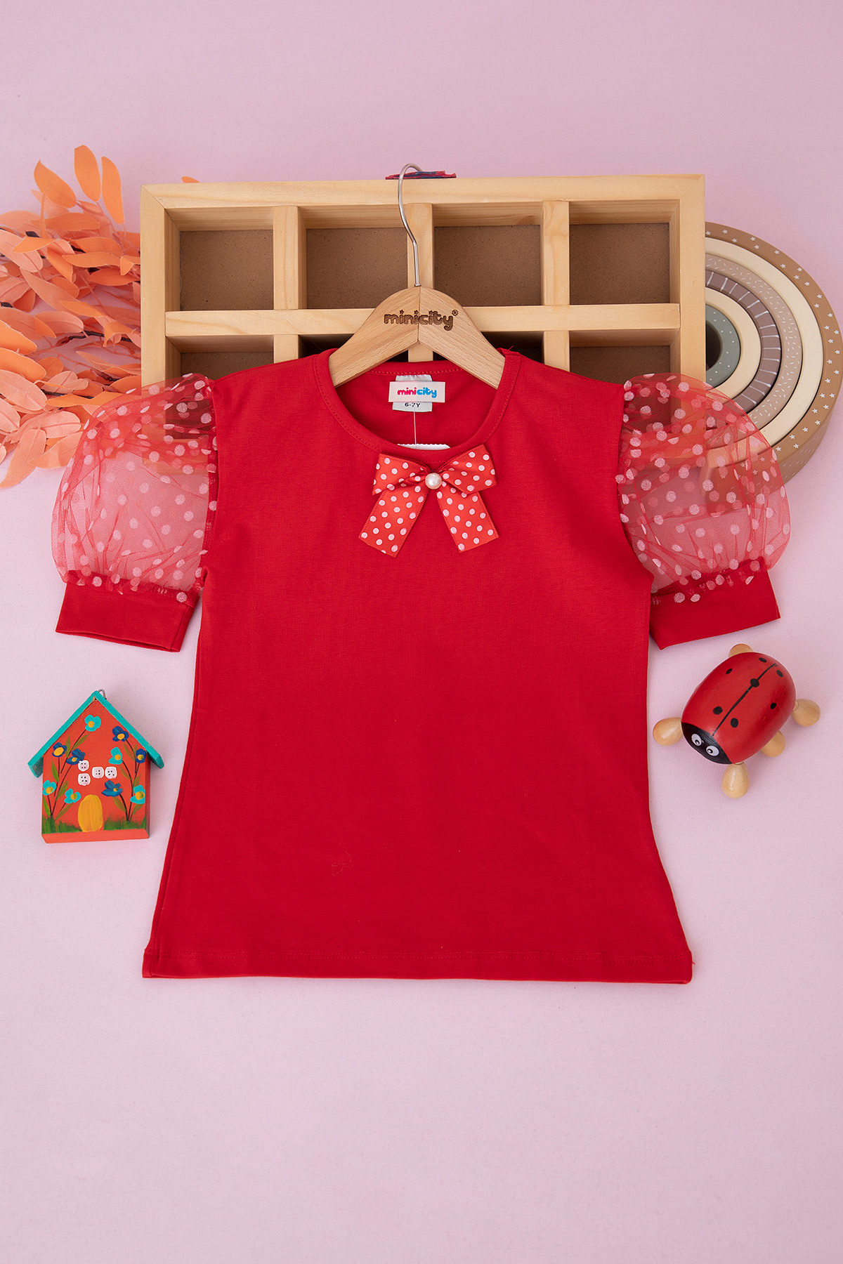 Kız Çocuk Puantiyeli Fiyonklu T-Shirt - 4104 (7-11 Yaş)