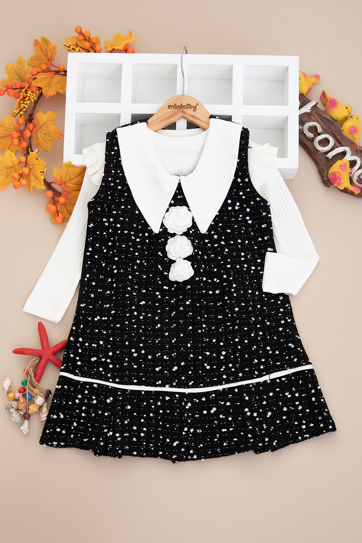 Kız Çocuk Puantiyeli Güllü Elbise - 303 (3-6 Yaş)