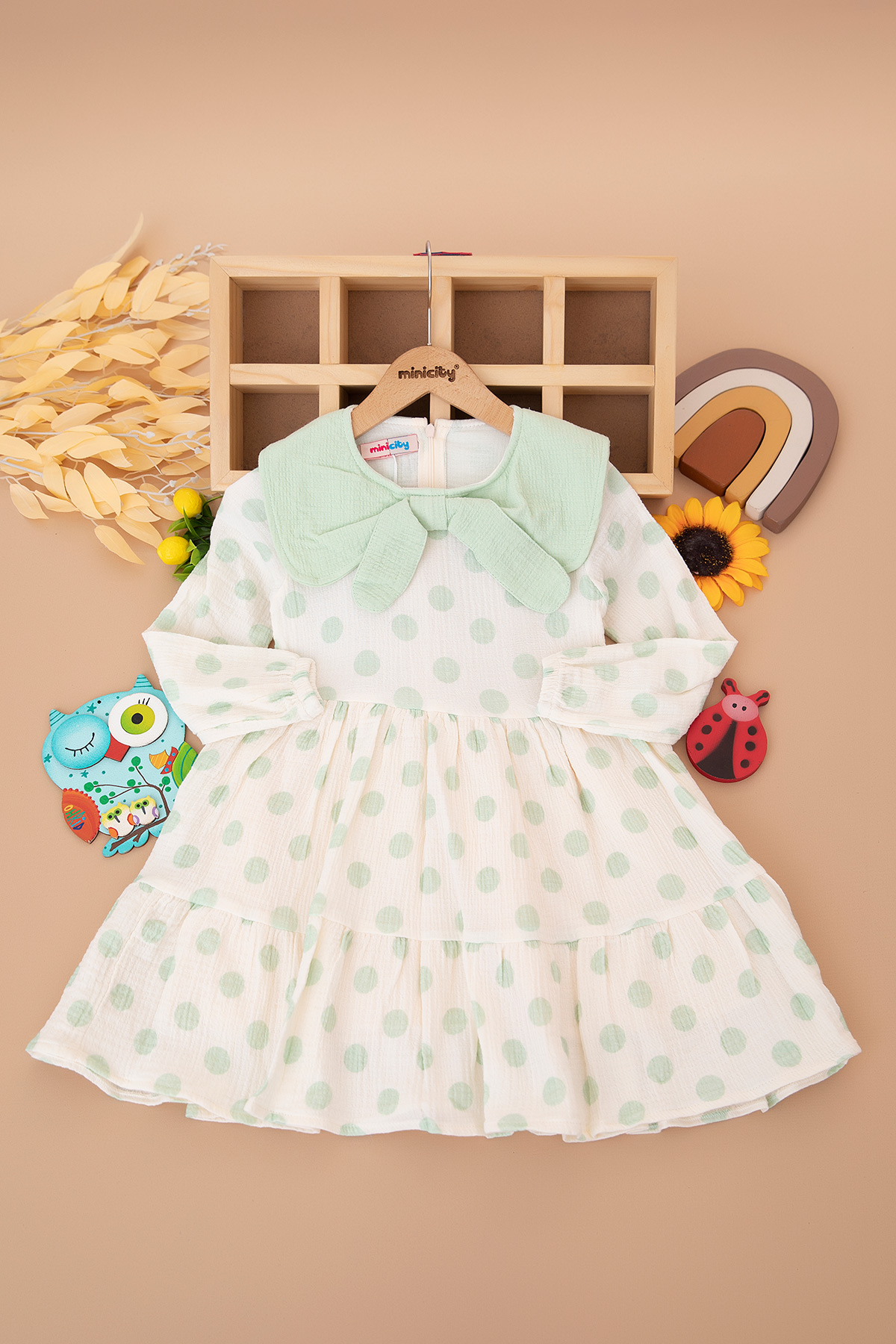 Kız Çocuk Puantiyeli Müslin Elbise - 1643 (5-8 Yaş)