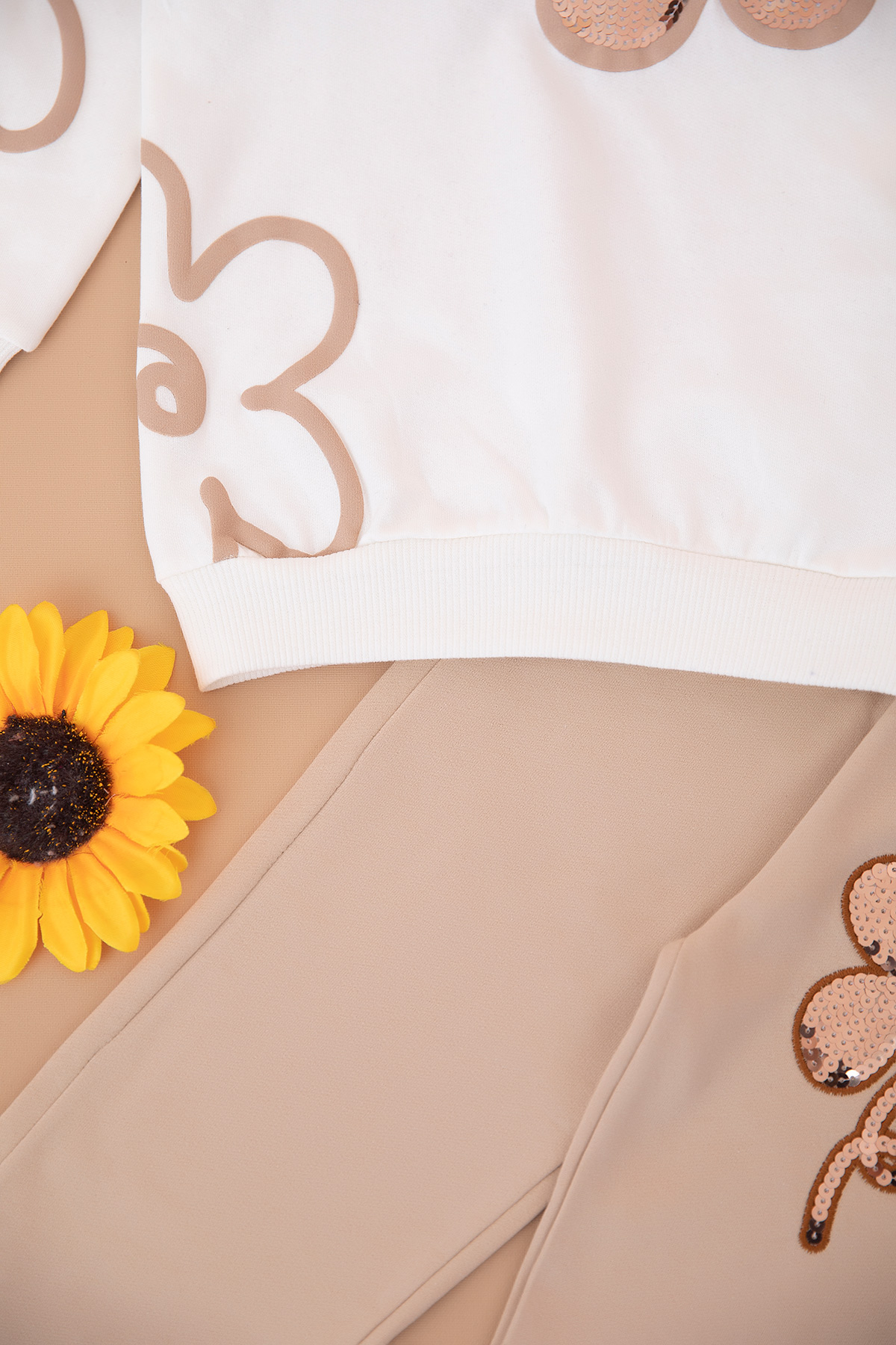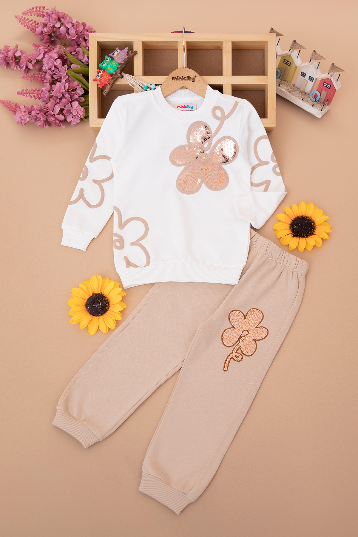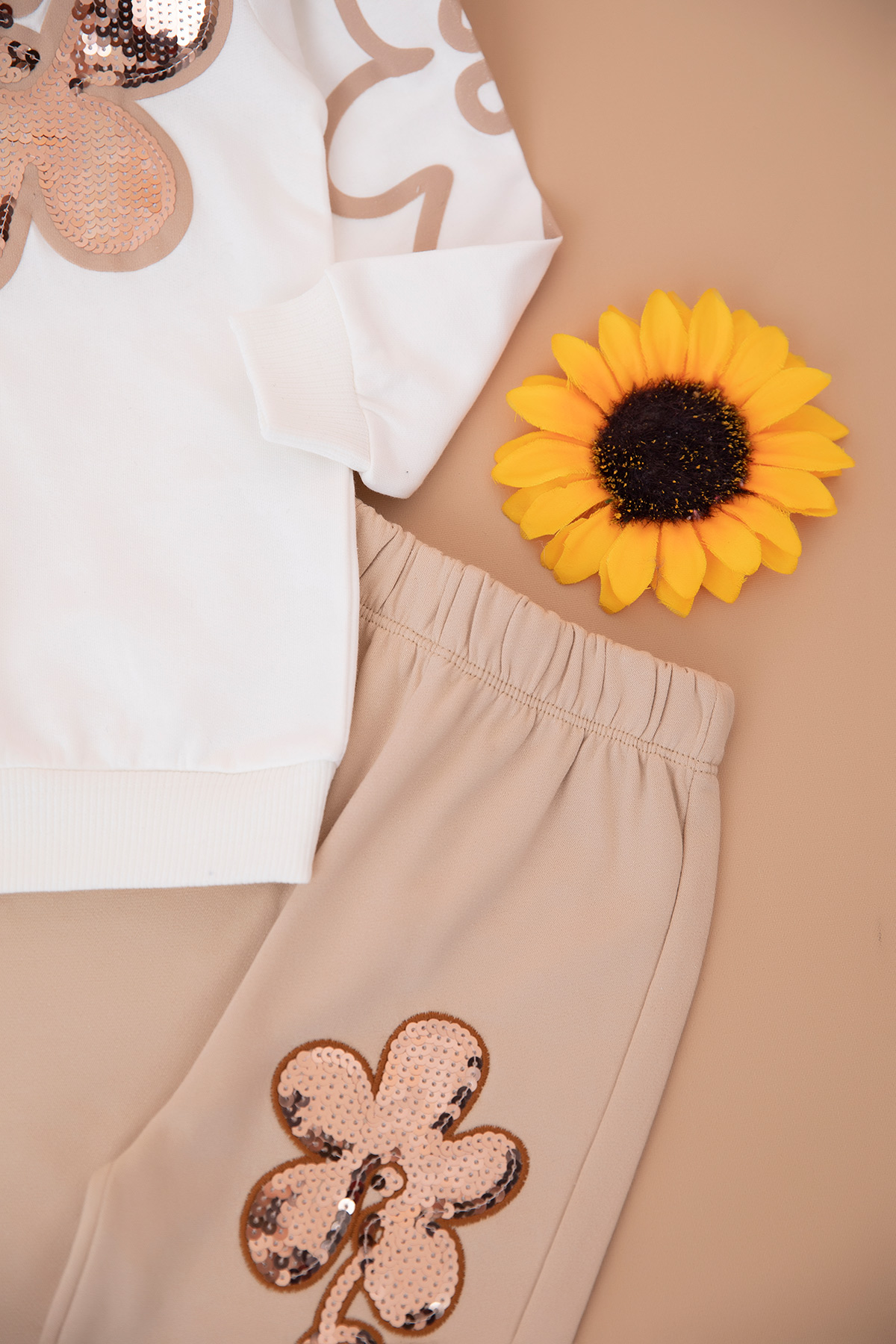 Kız Çocuk Pullu Çiçek Nakışlı Takım (3-10 Yaş)