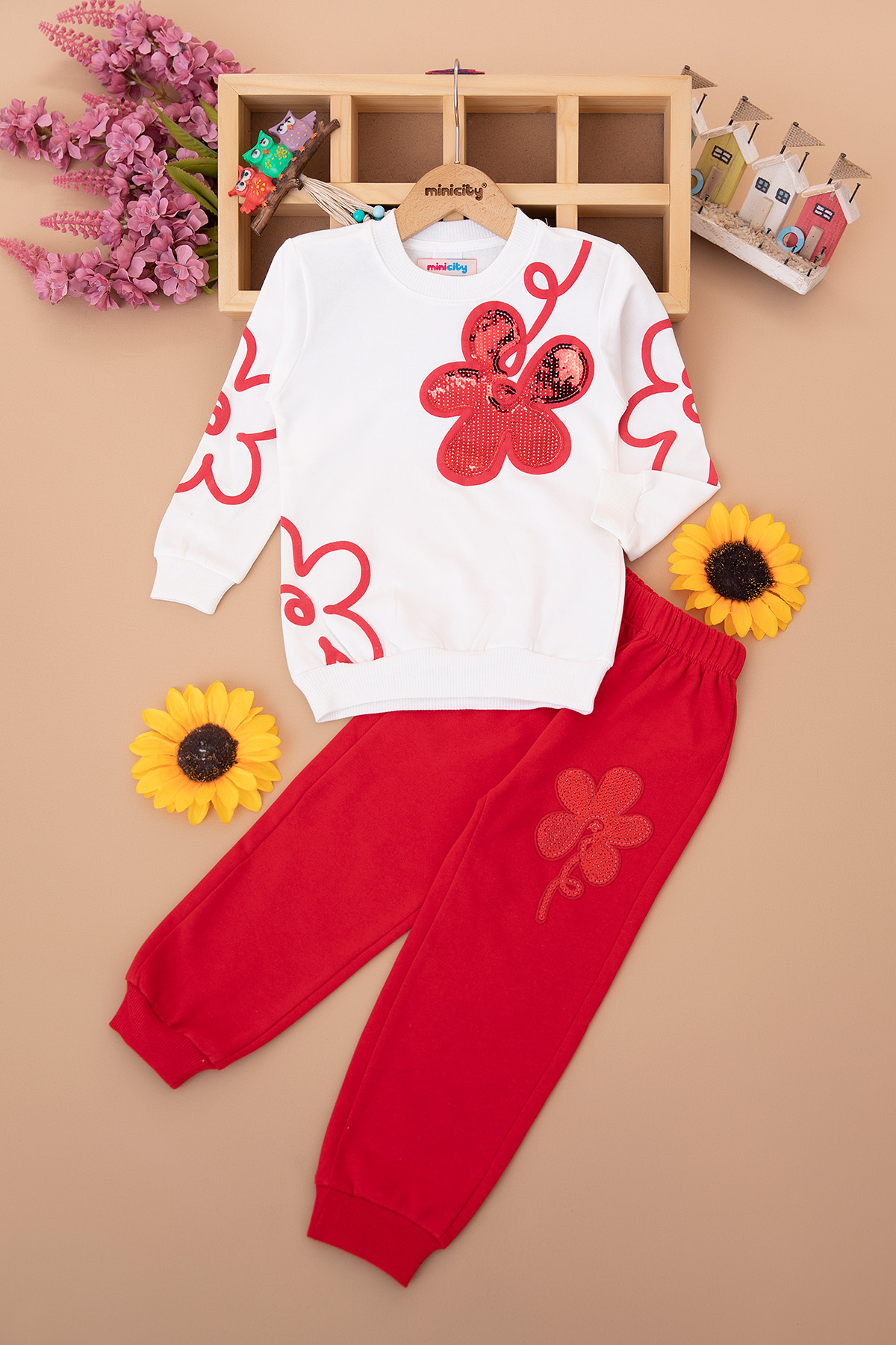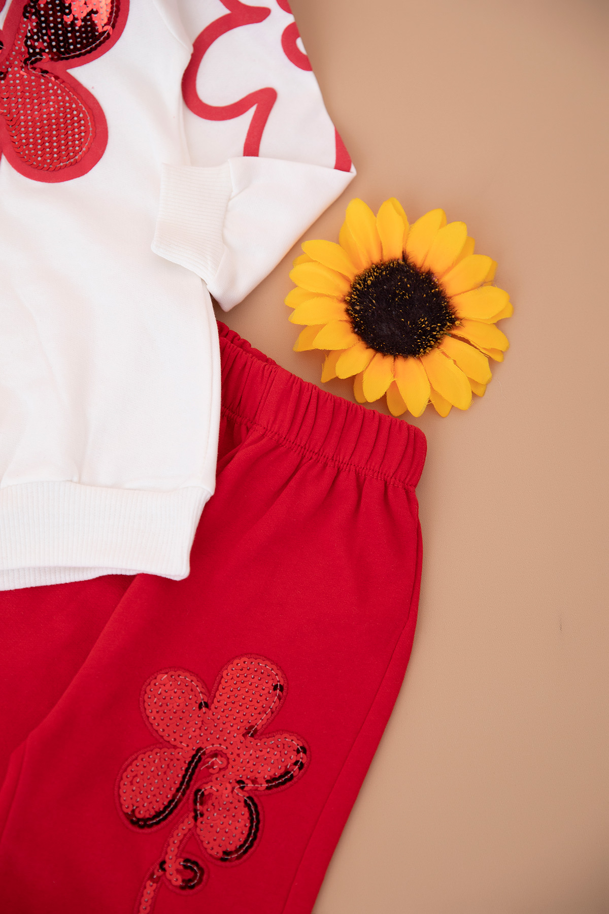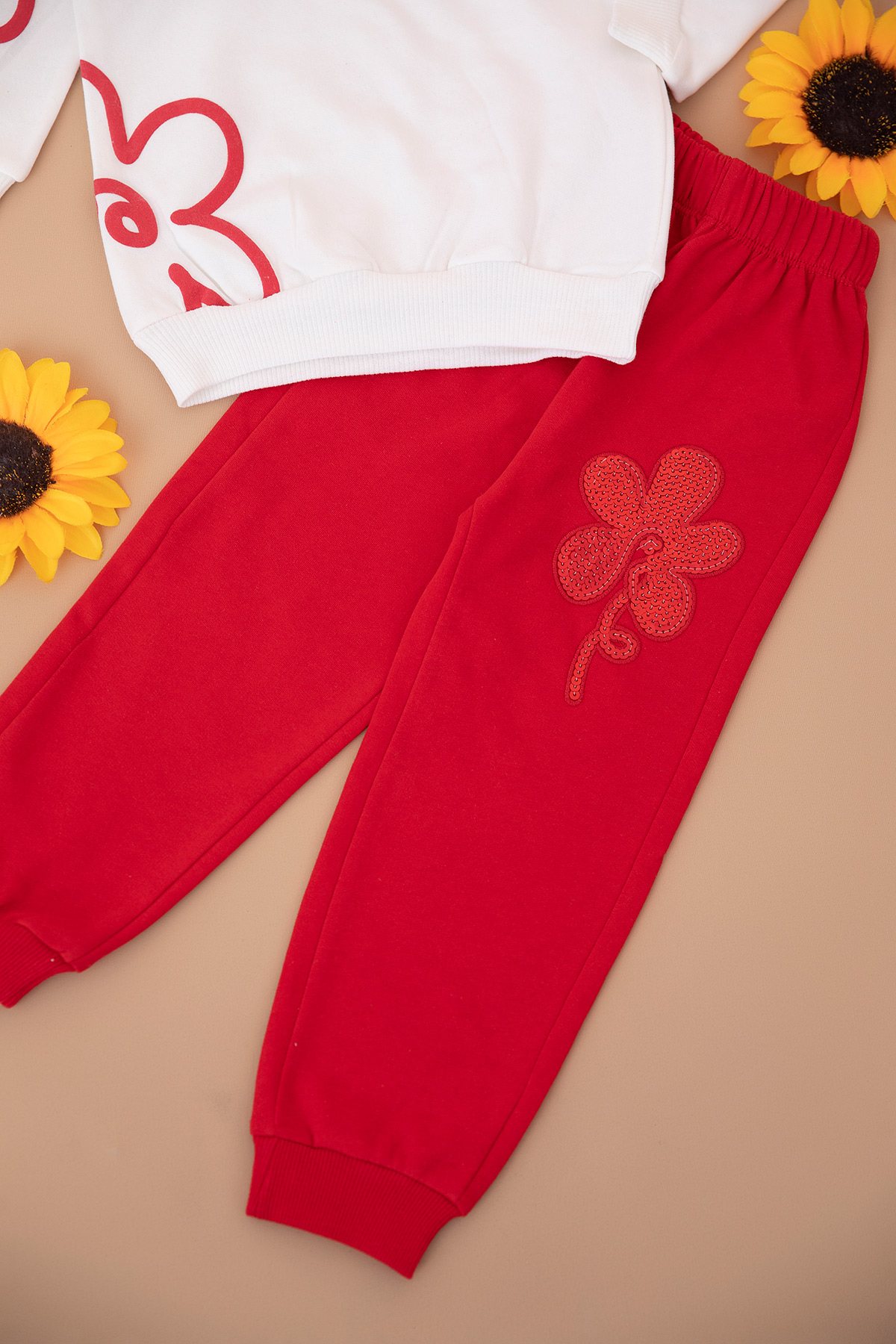 Kız Çocuk Pullu Çiçek Nakışlı Takım (3-10 Yaş)