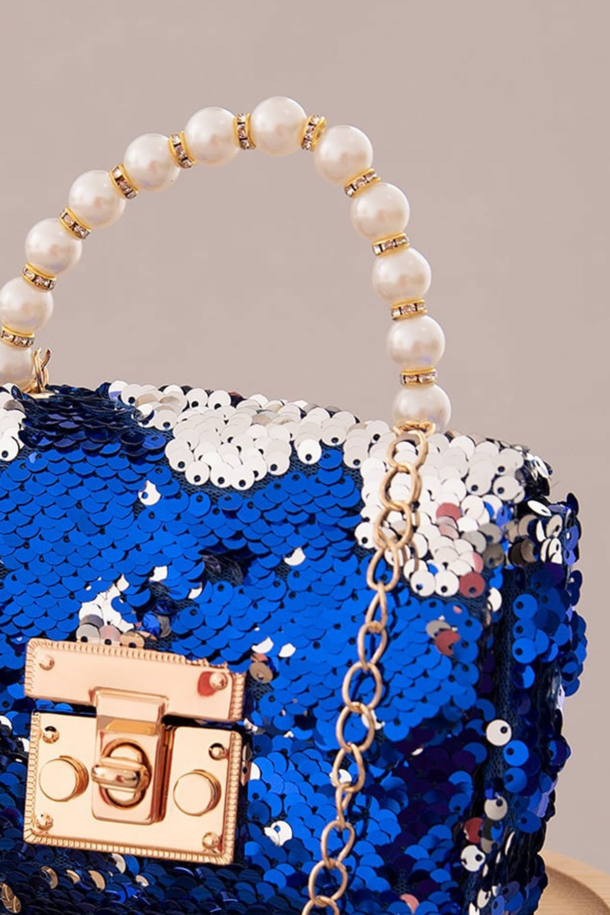Kız Çocuk Pullu İnci Kulplu El Çantası