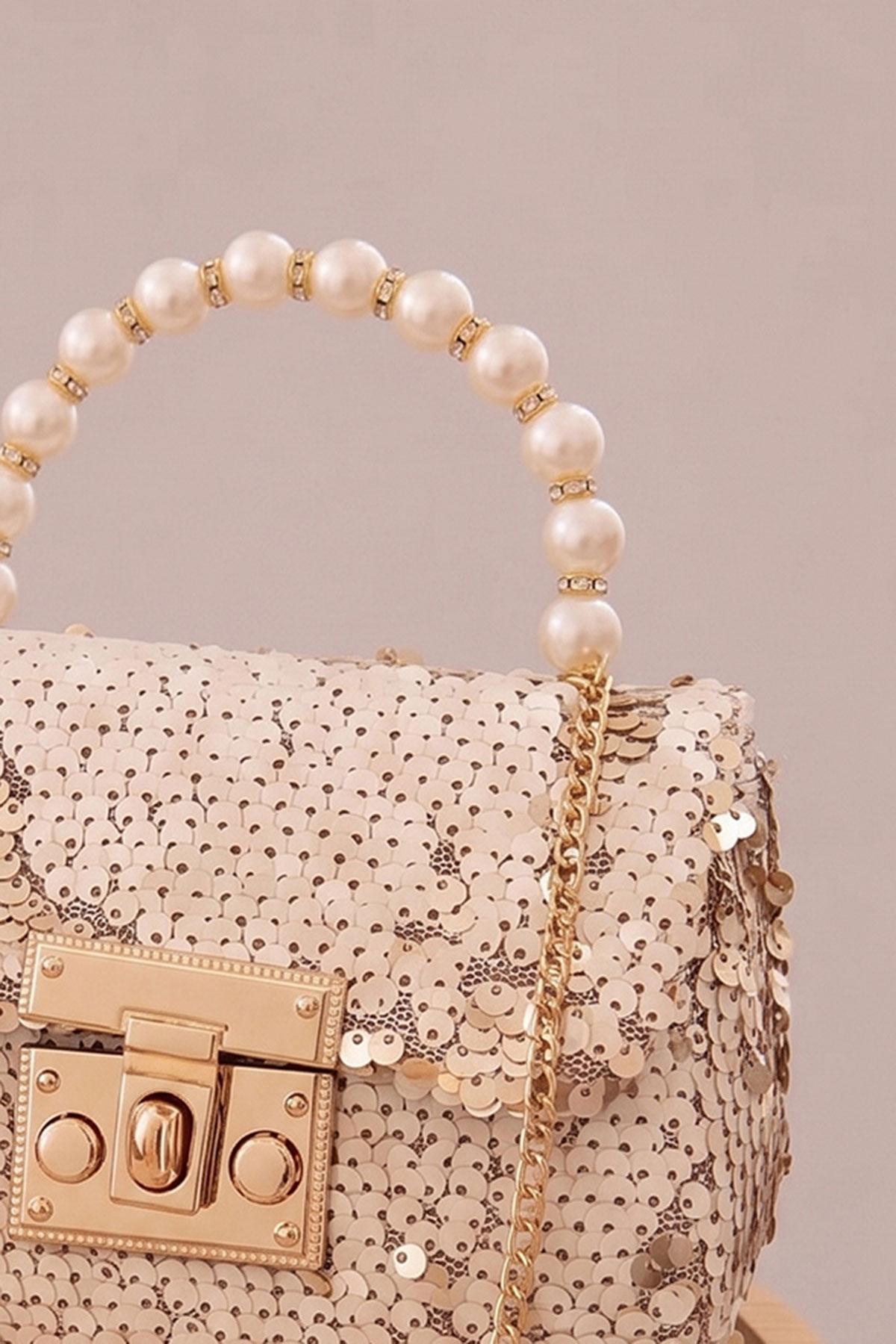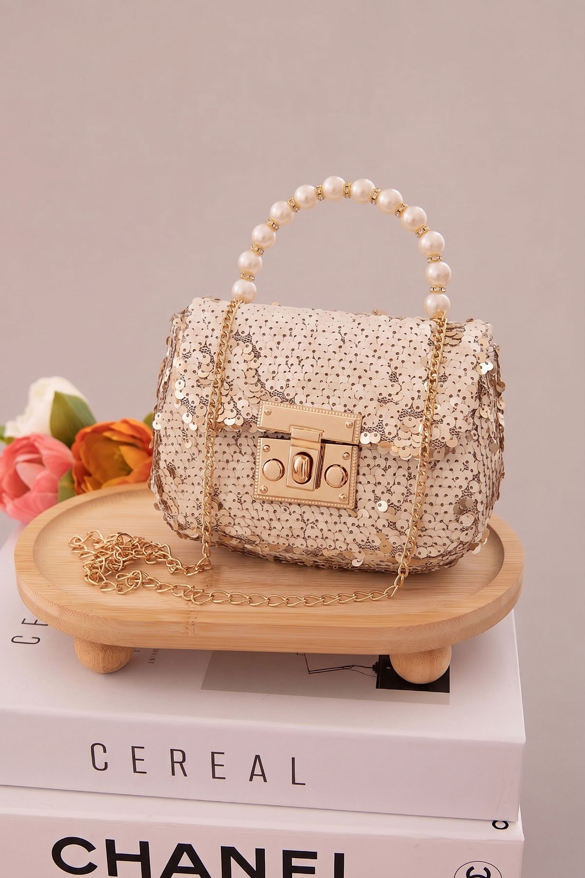 Kız Çocuk Pullu İnci Kulplu El Çantası
