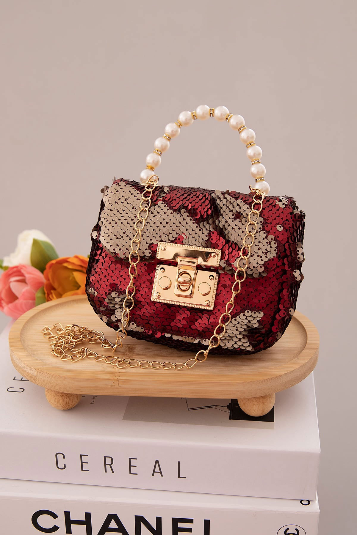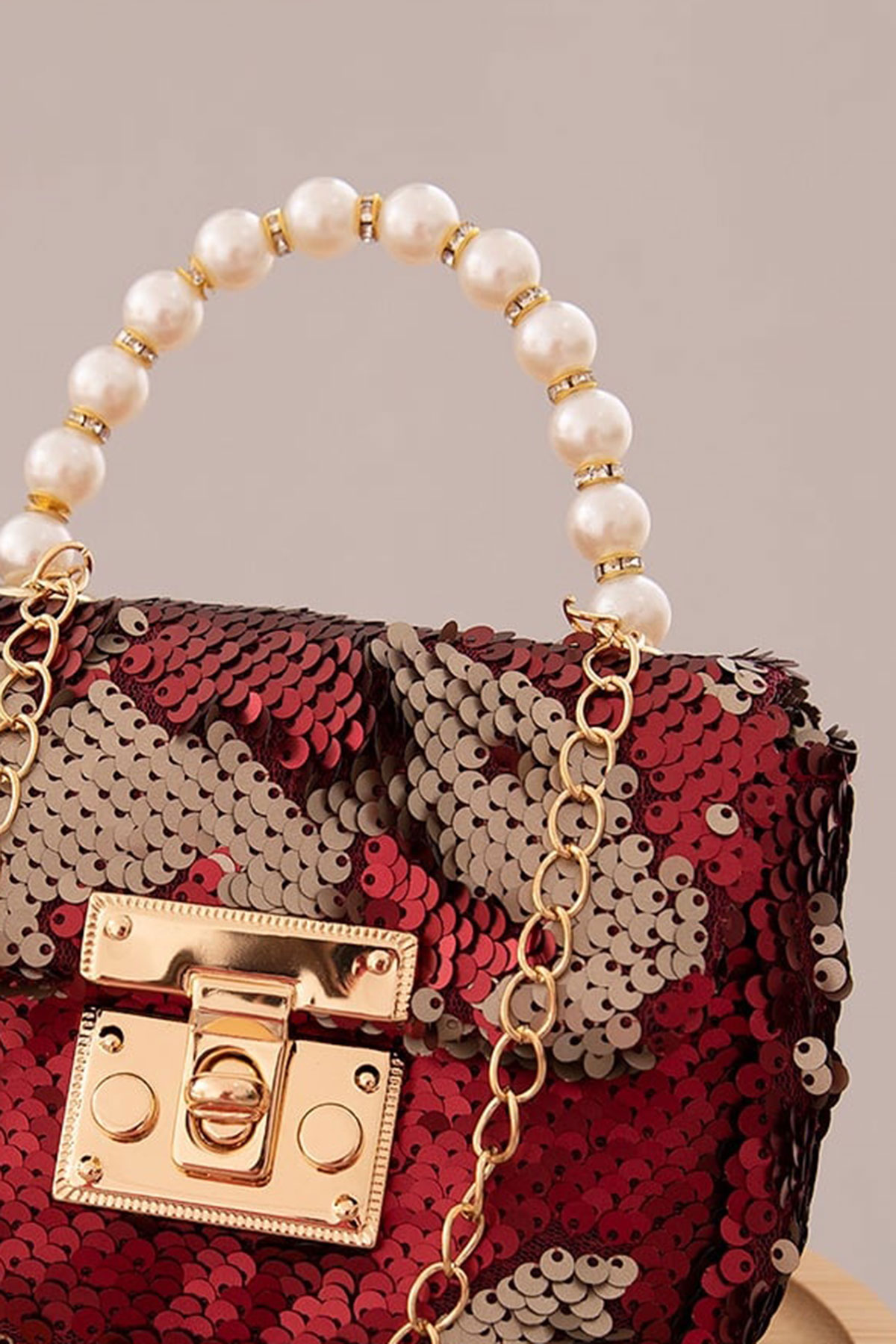 Kız Çocuk Pullu İnci Kulplu El Çantası