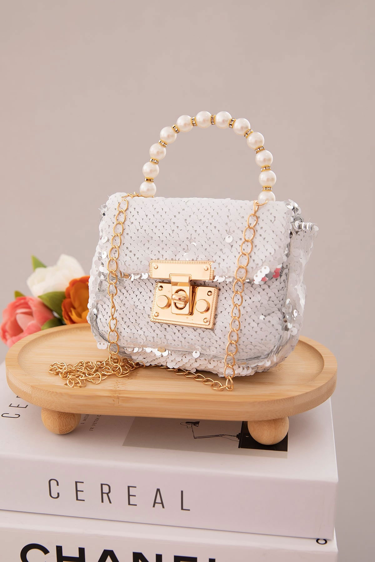 Kız Çocuk Pullu İnci Kulplu El Çantası