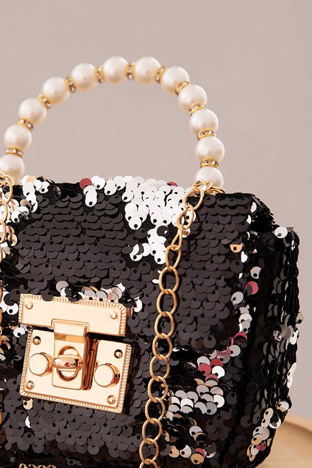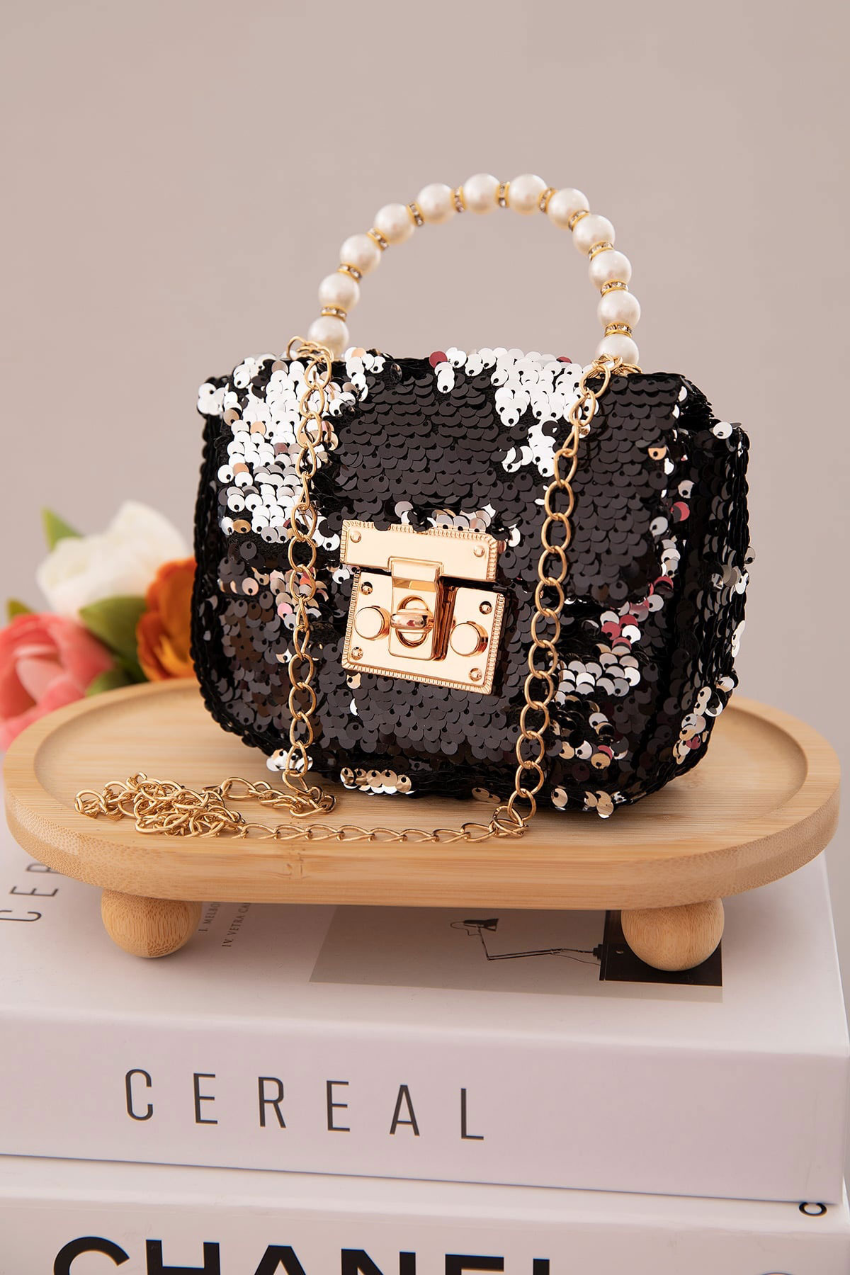Kız Çocuk Pullu İnci Kulplu El Çantası
