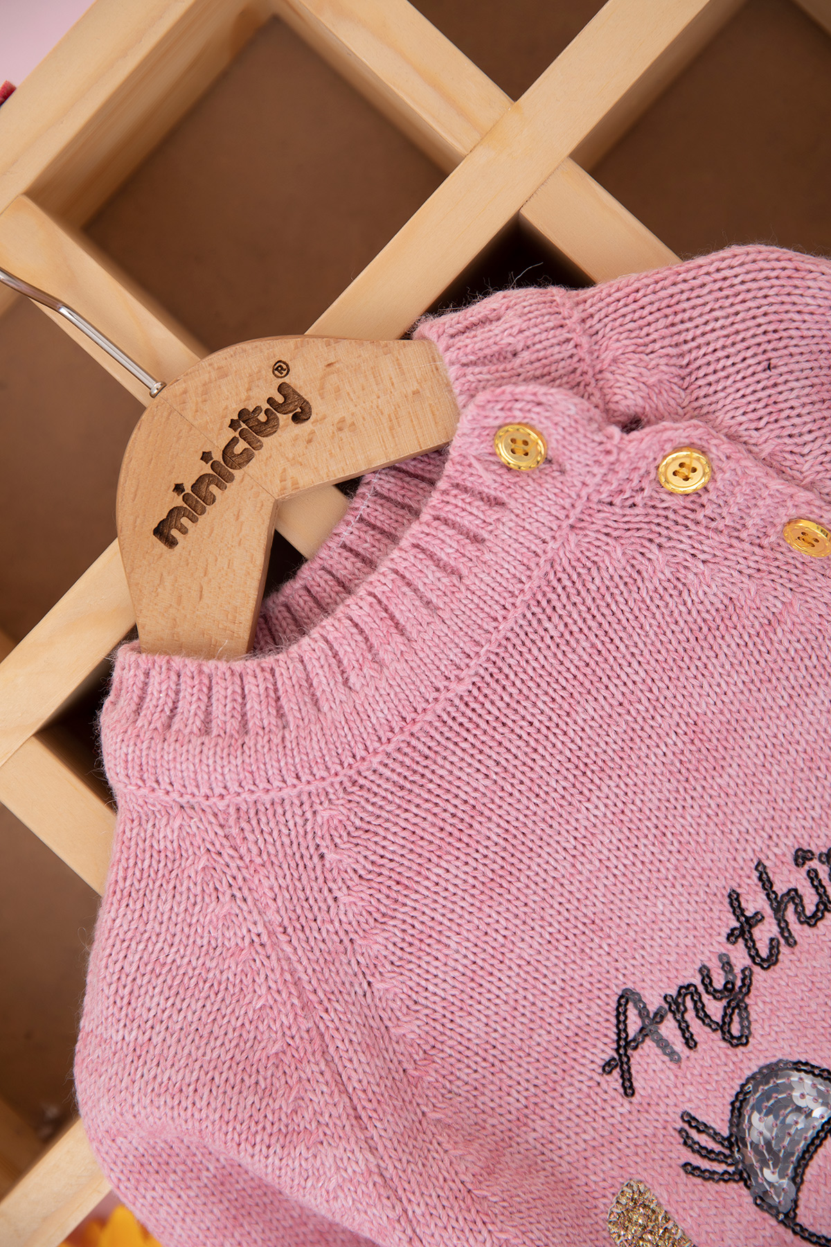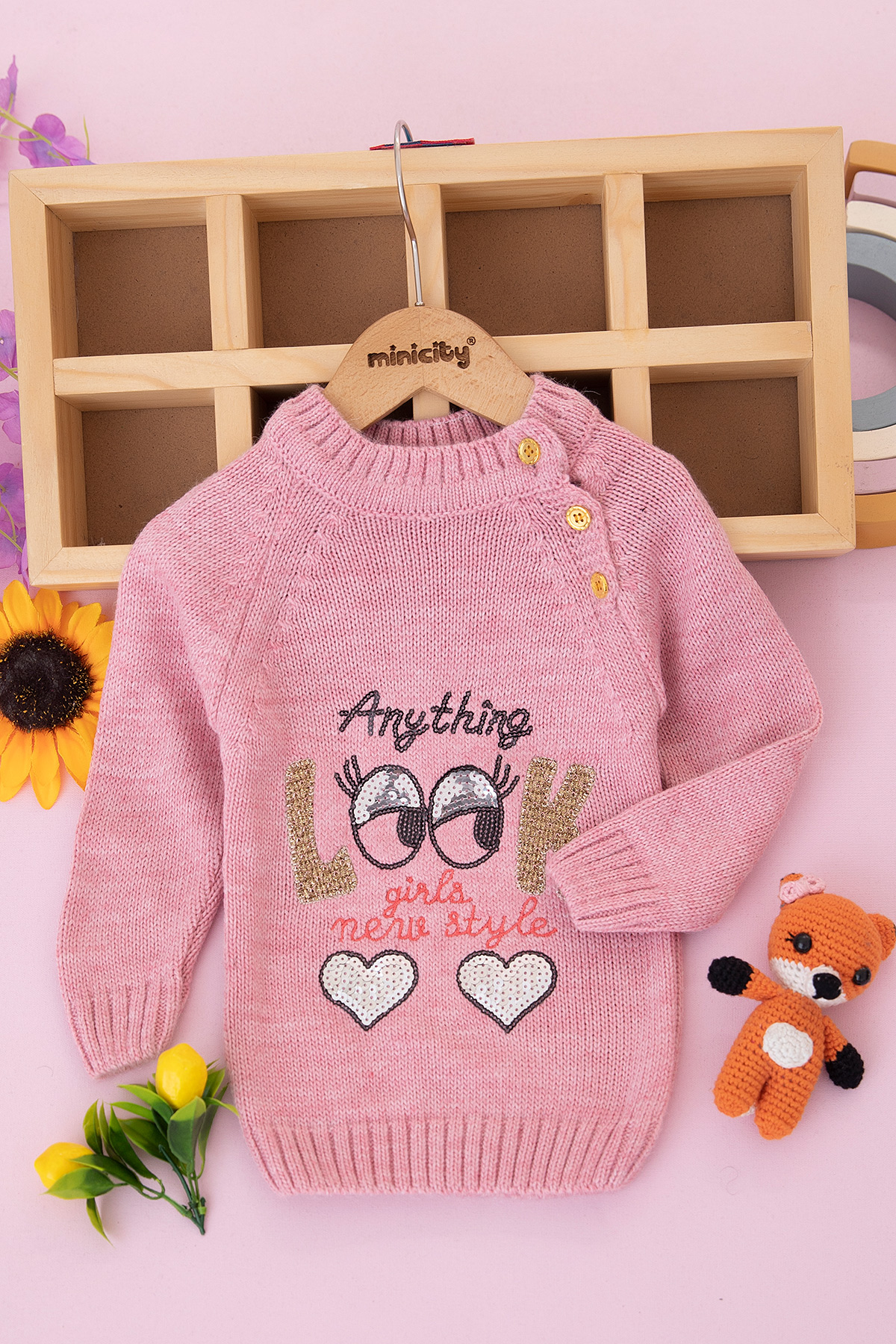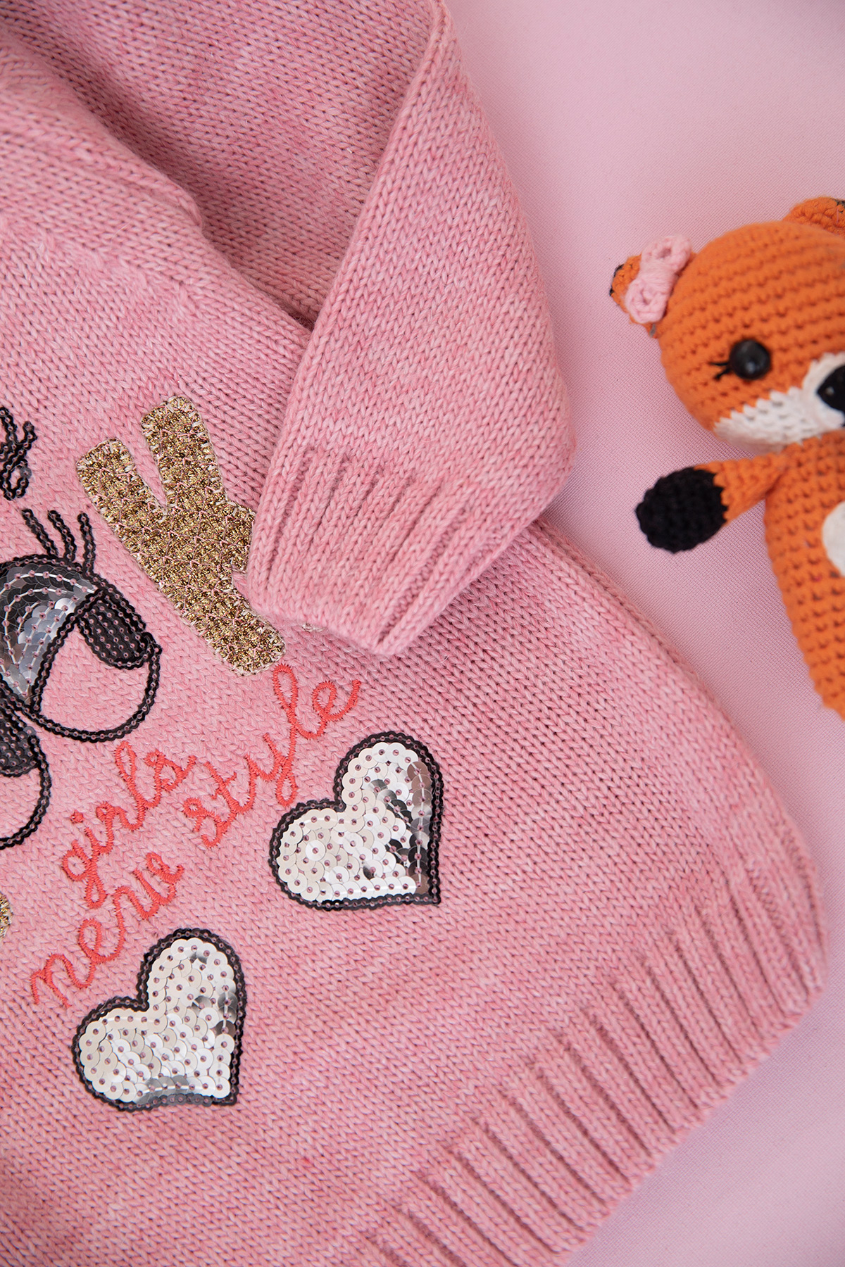 Kız Çocuk Pullu Look Nakışlı Kazak (0-3 Yaş)