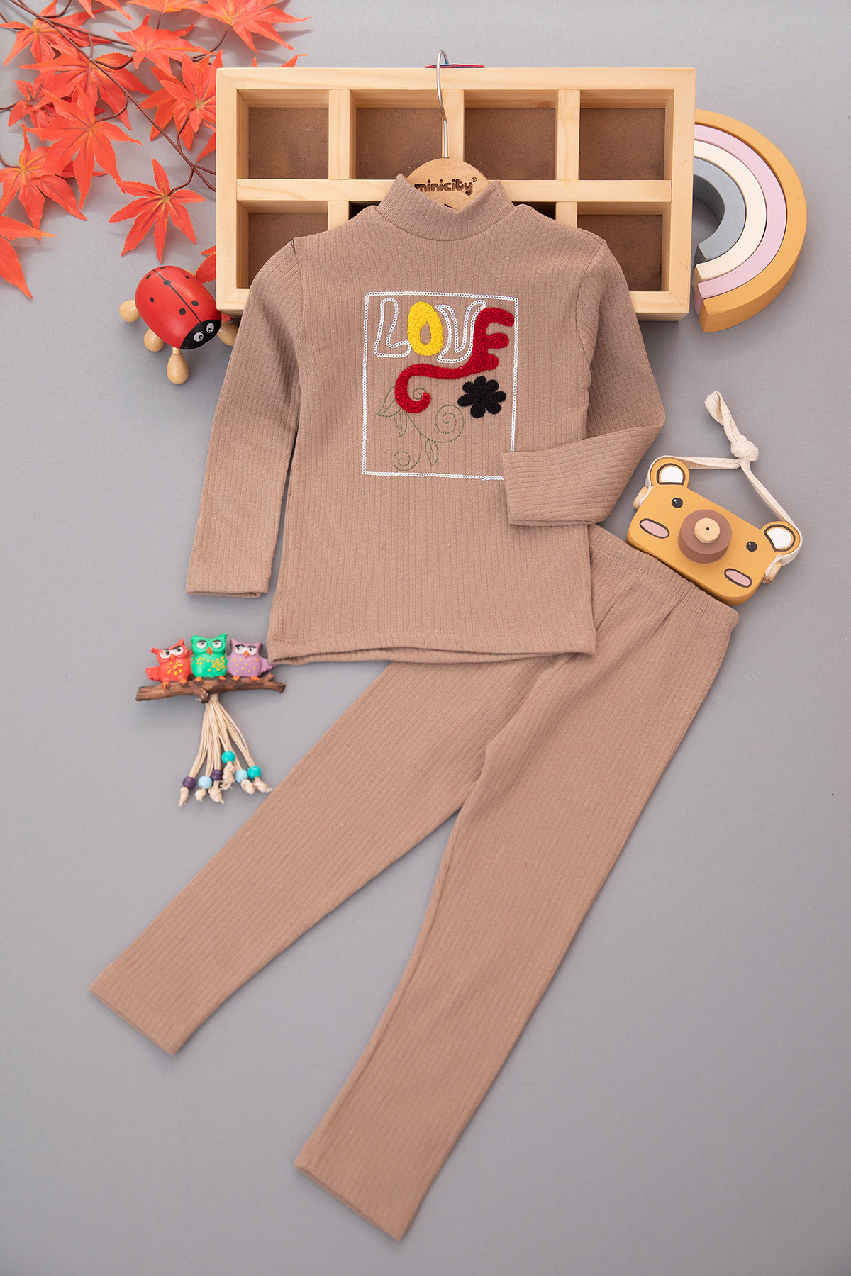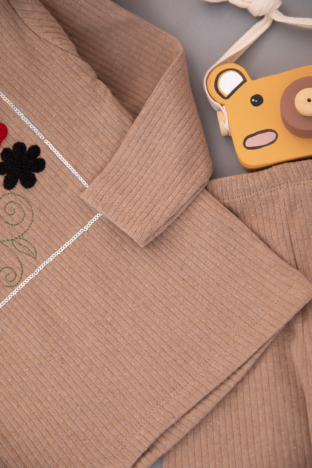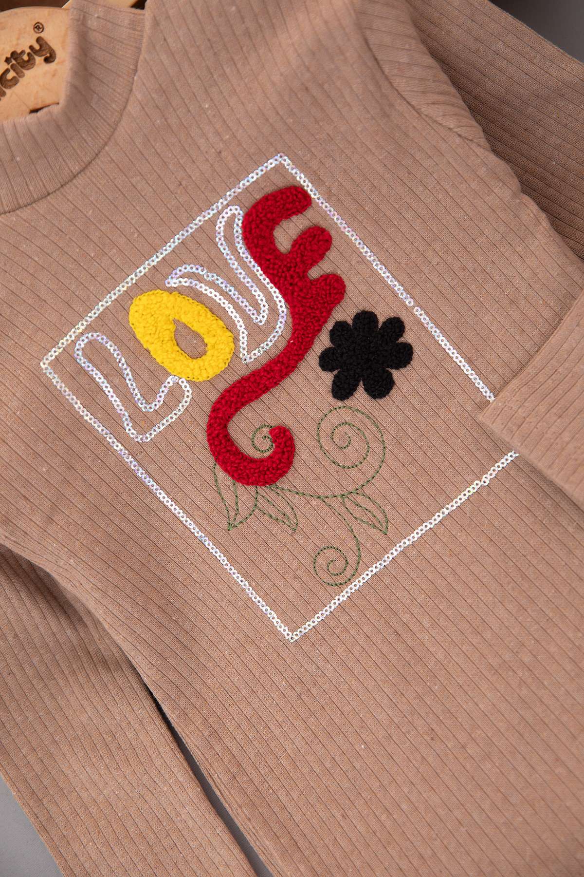 Kız Çocuk Pullu Love Nakışlı Şardonlu Fitilli Takım