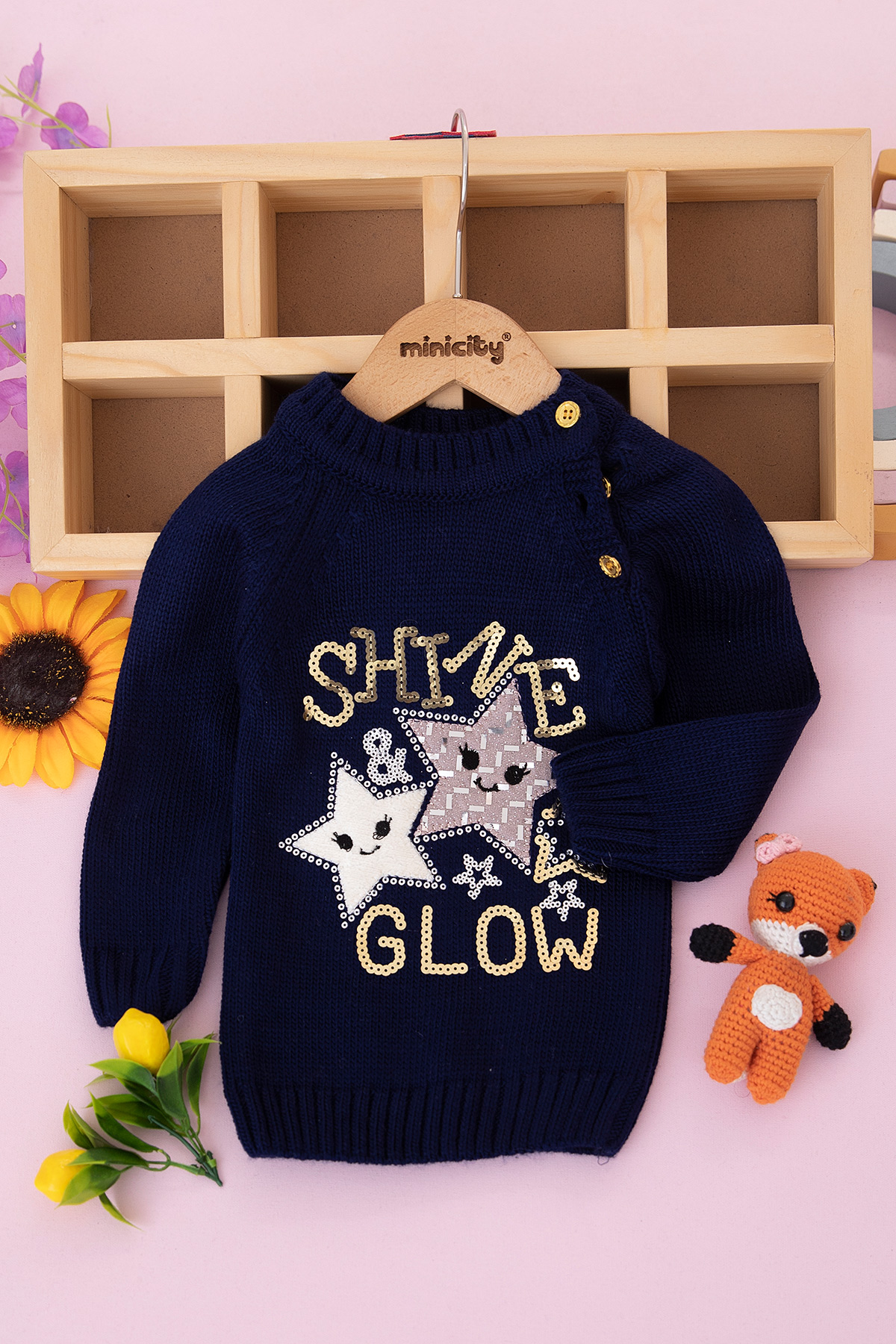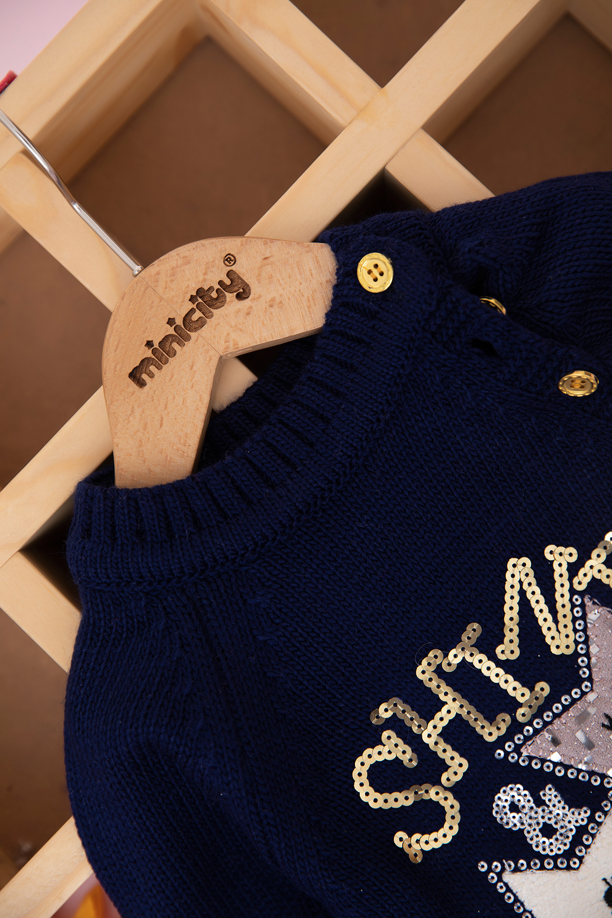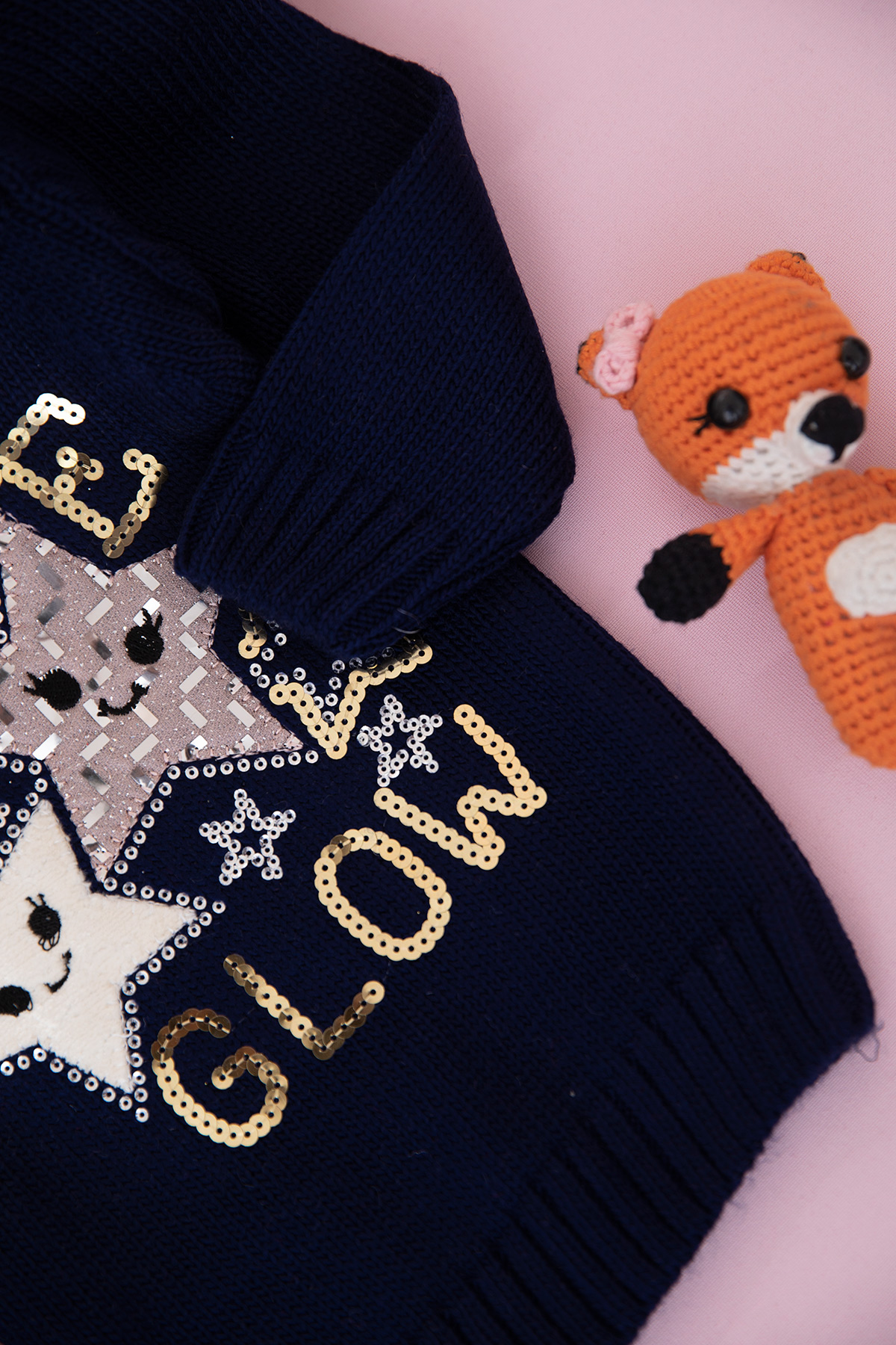 Kız Çocuk Pullu Shine Glow Yıldız Nakışlı Kazak (0-3 Yaş)