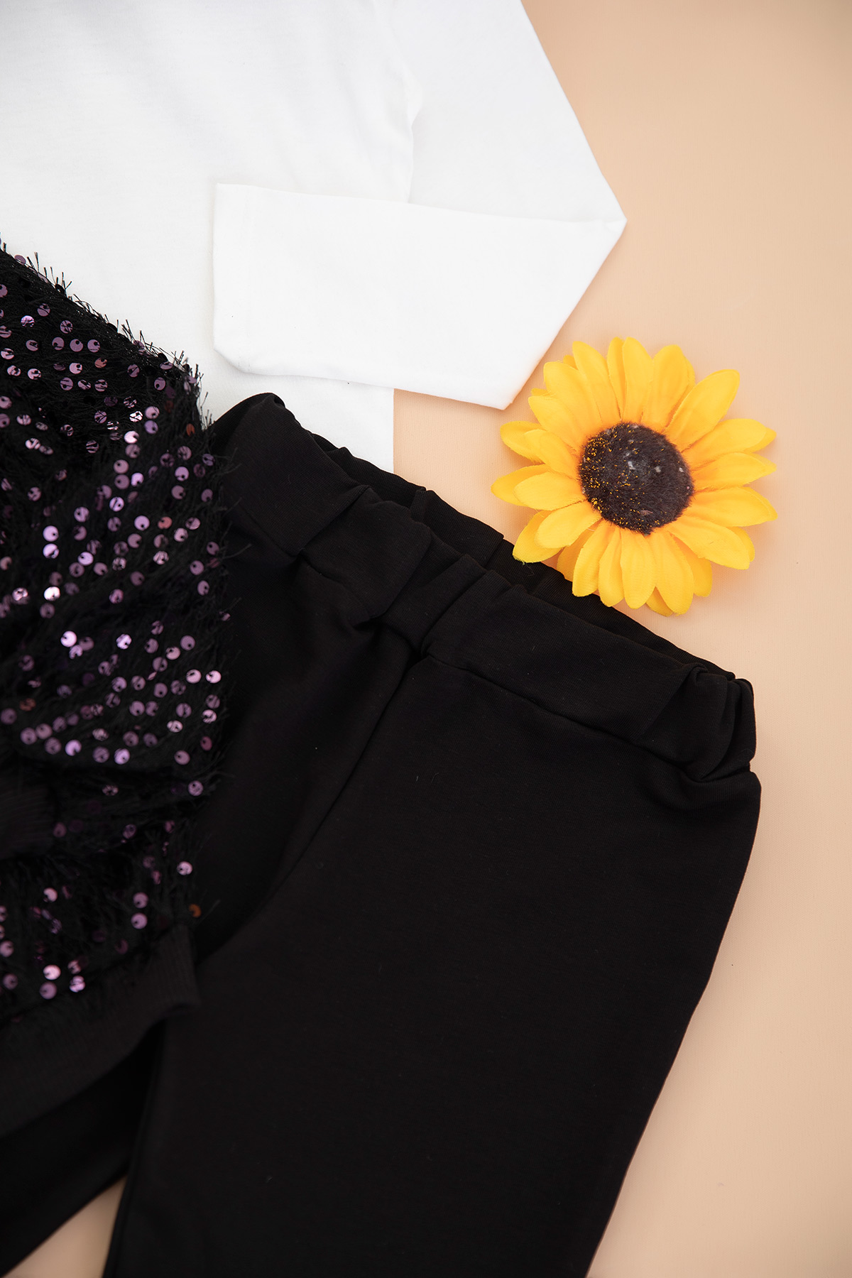 Kız Çocuk Pullu Simli Pantolon Üçlü Takım (3-10 Yaş)