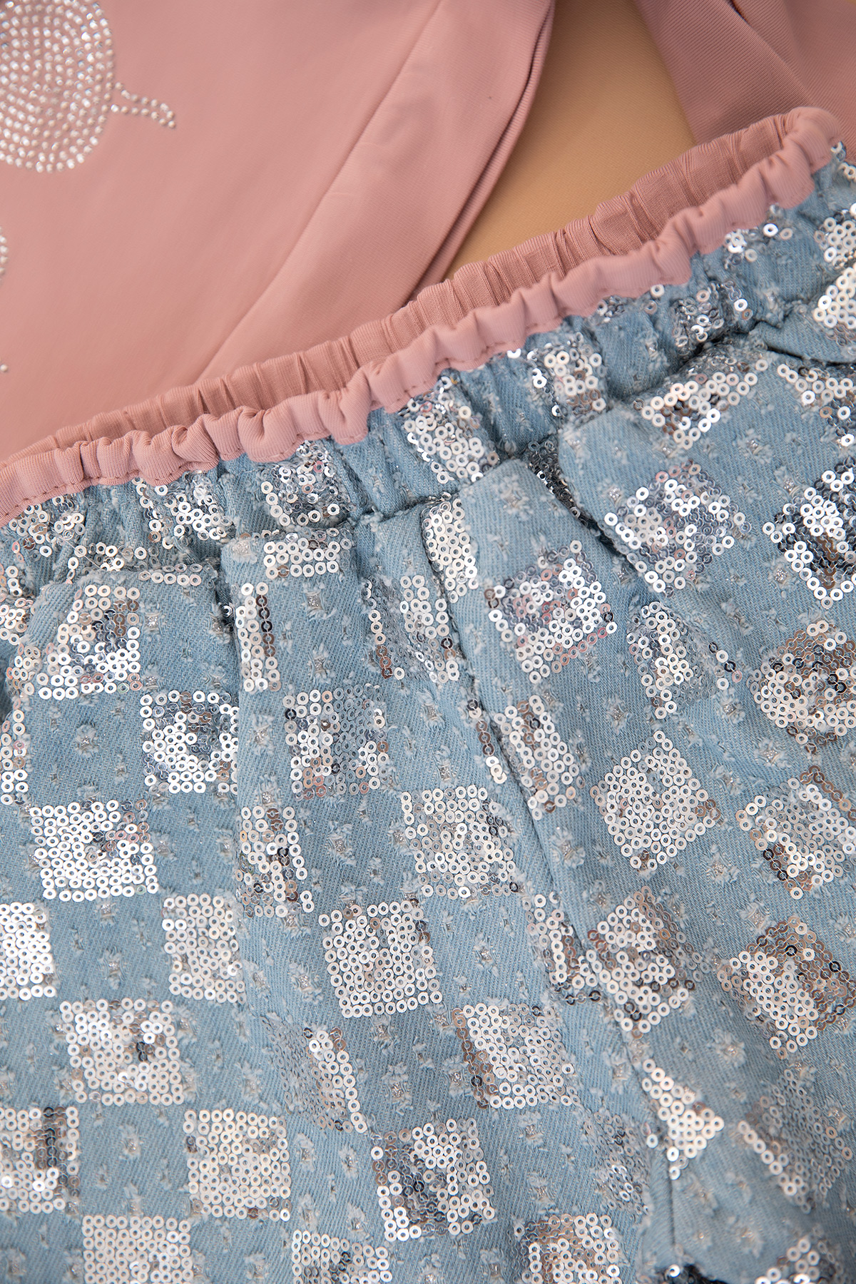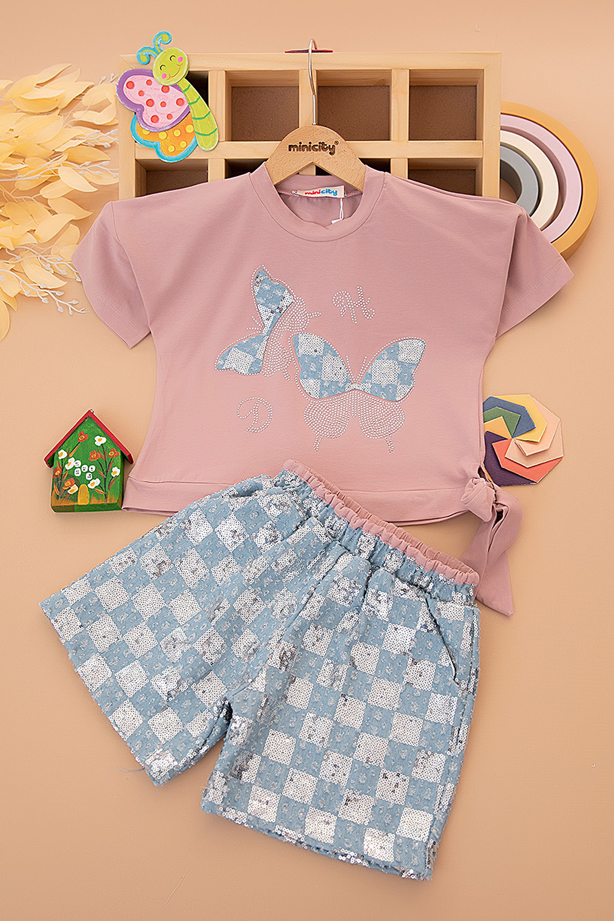 Kız Çocuk Pullu Kot Şort Takım - 231 (9-12 Yaş)