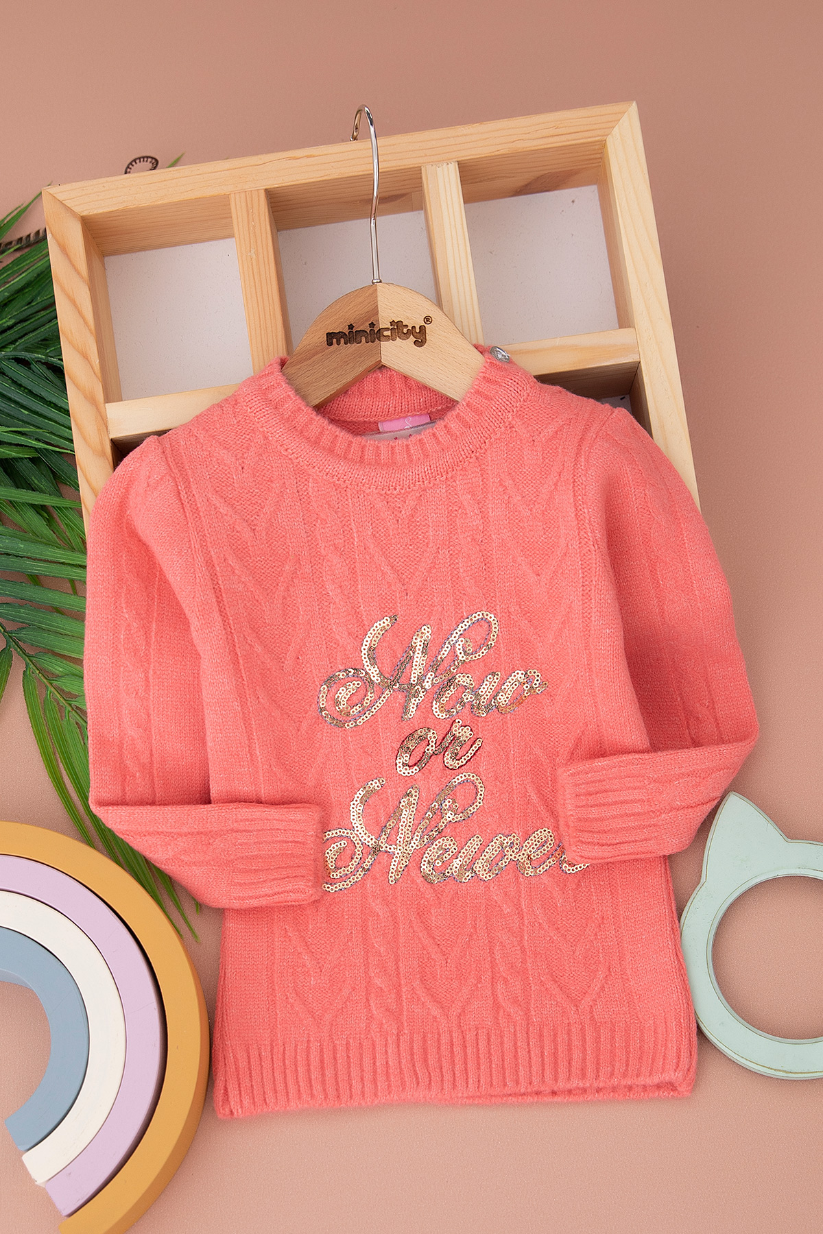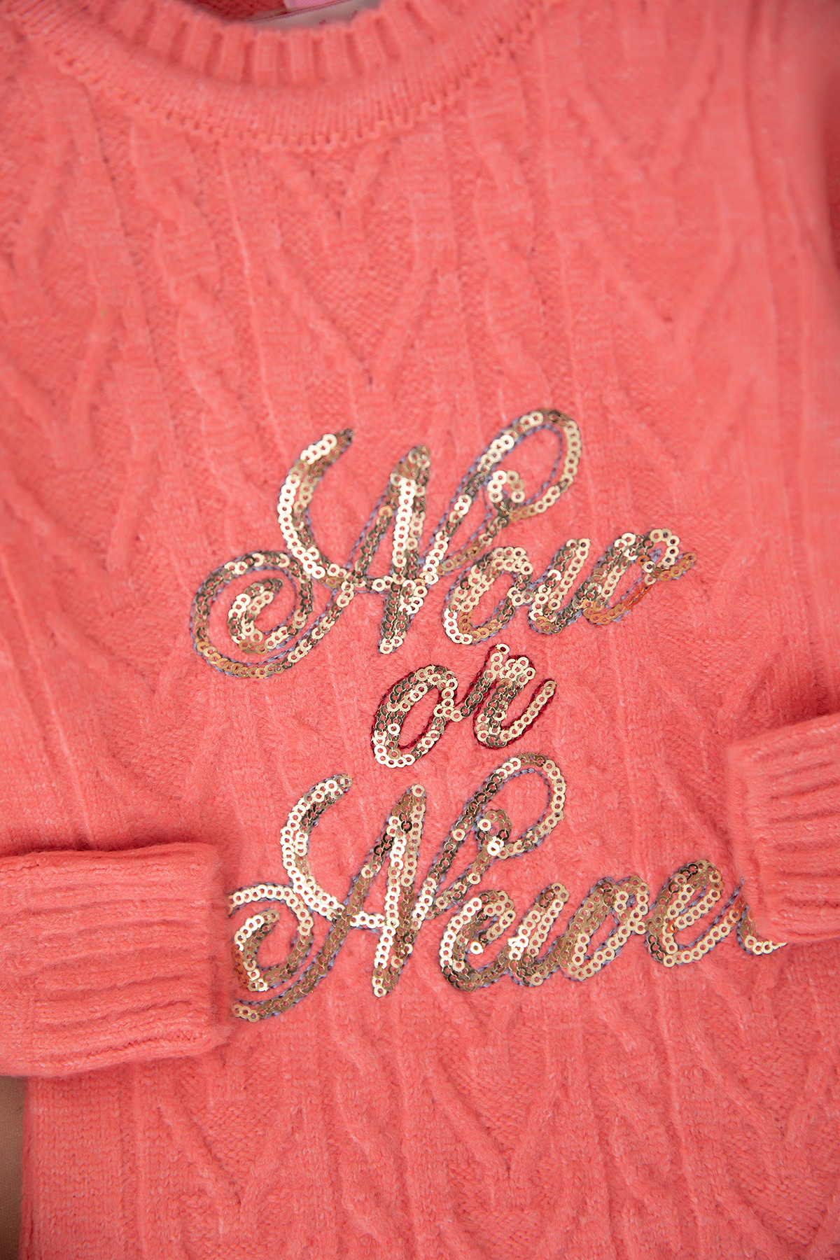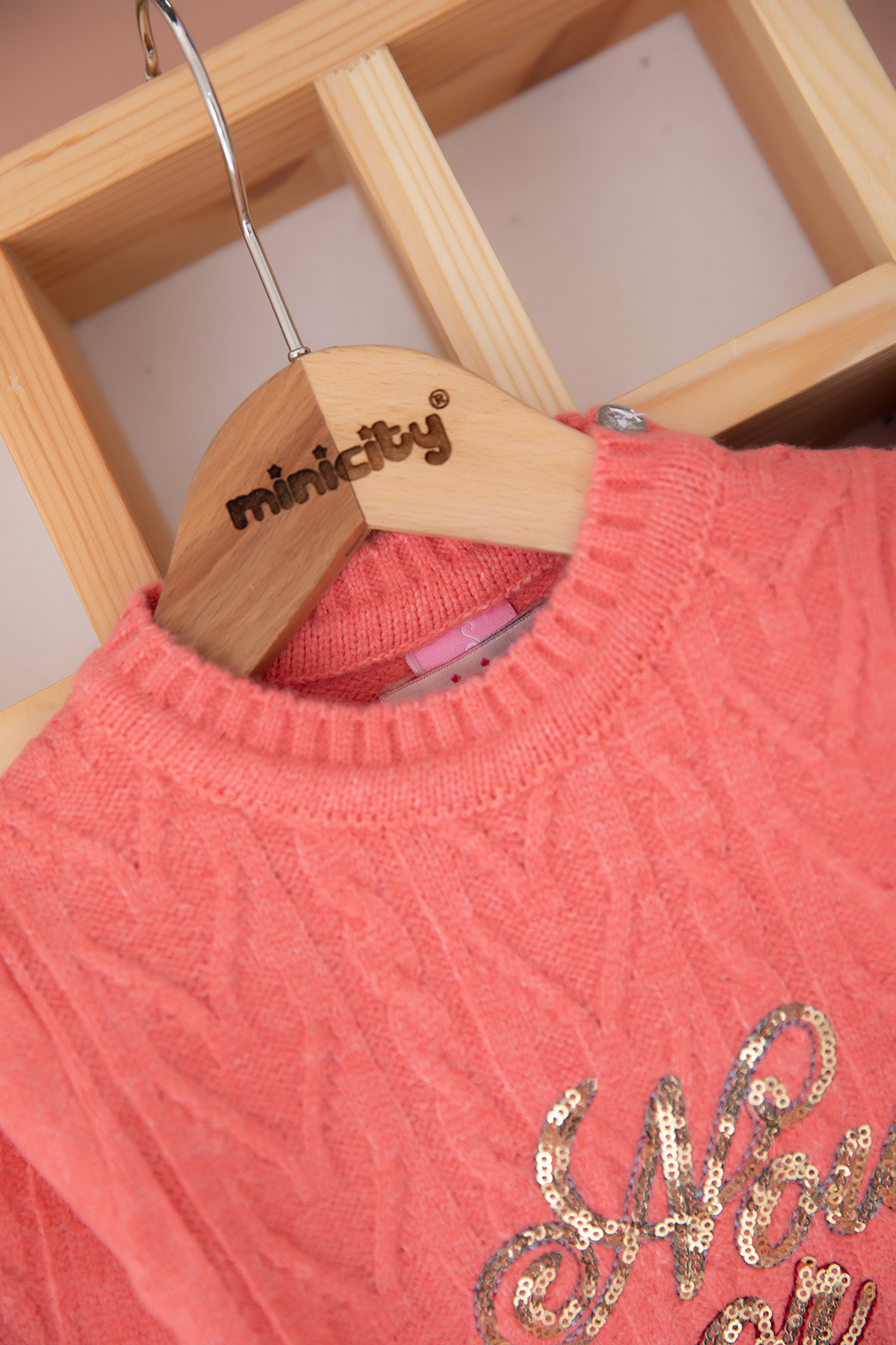 Kız Çocuk Pullu Yazı Nakışlı Kazak - 1020