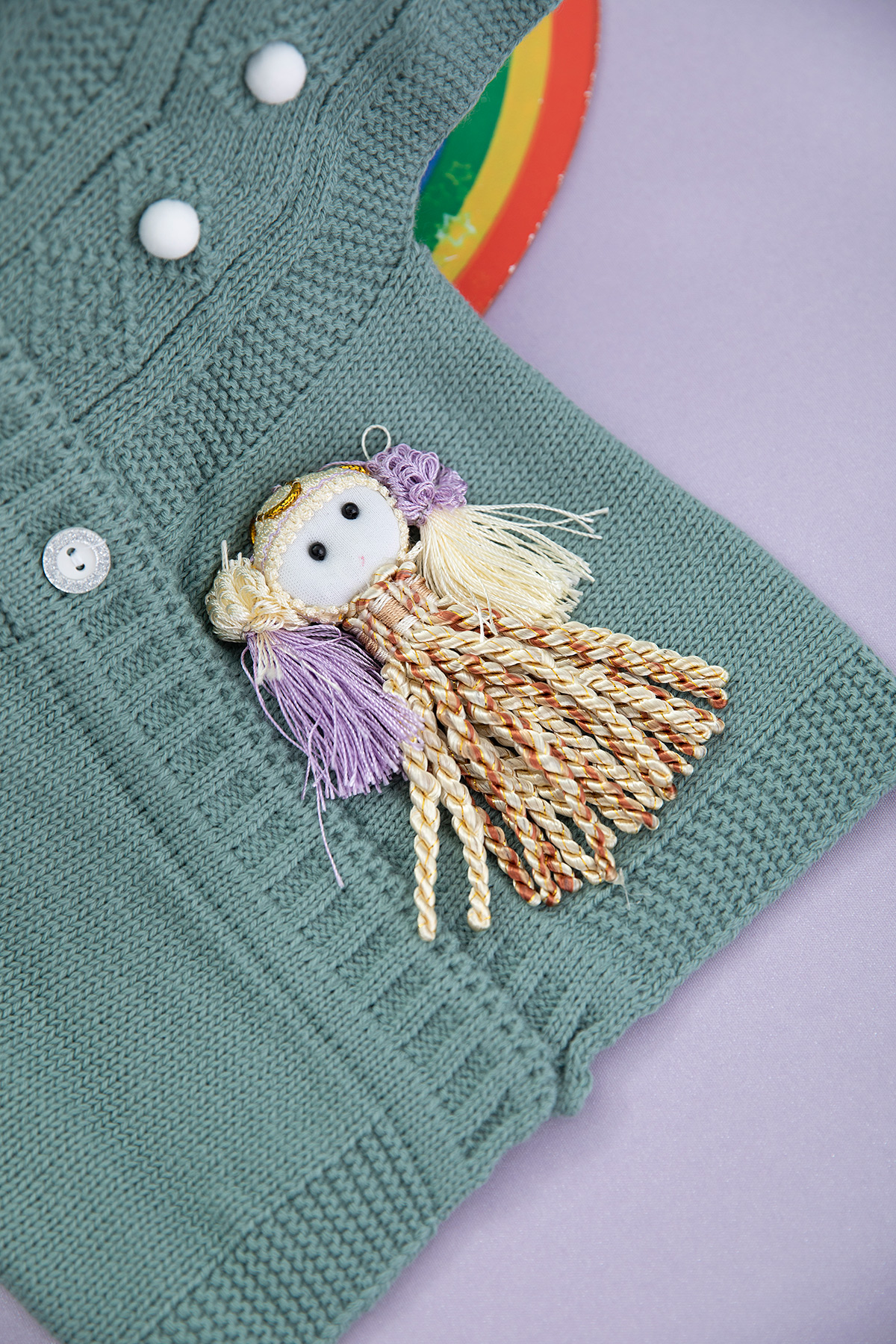 Kız Çocuk Püsküllü Bebekli Triko Yelek - 470 (1-5 Yaş)