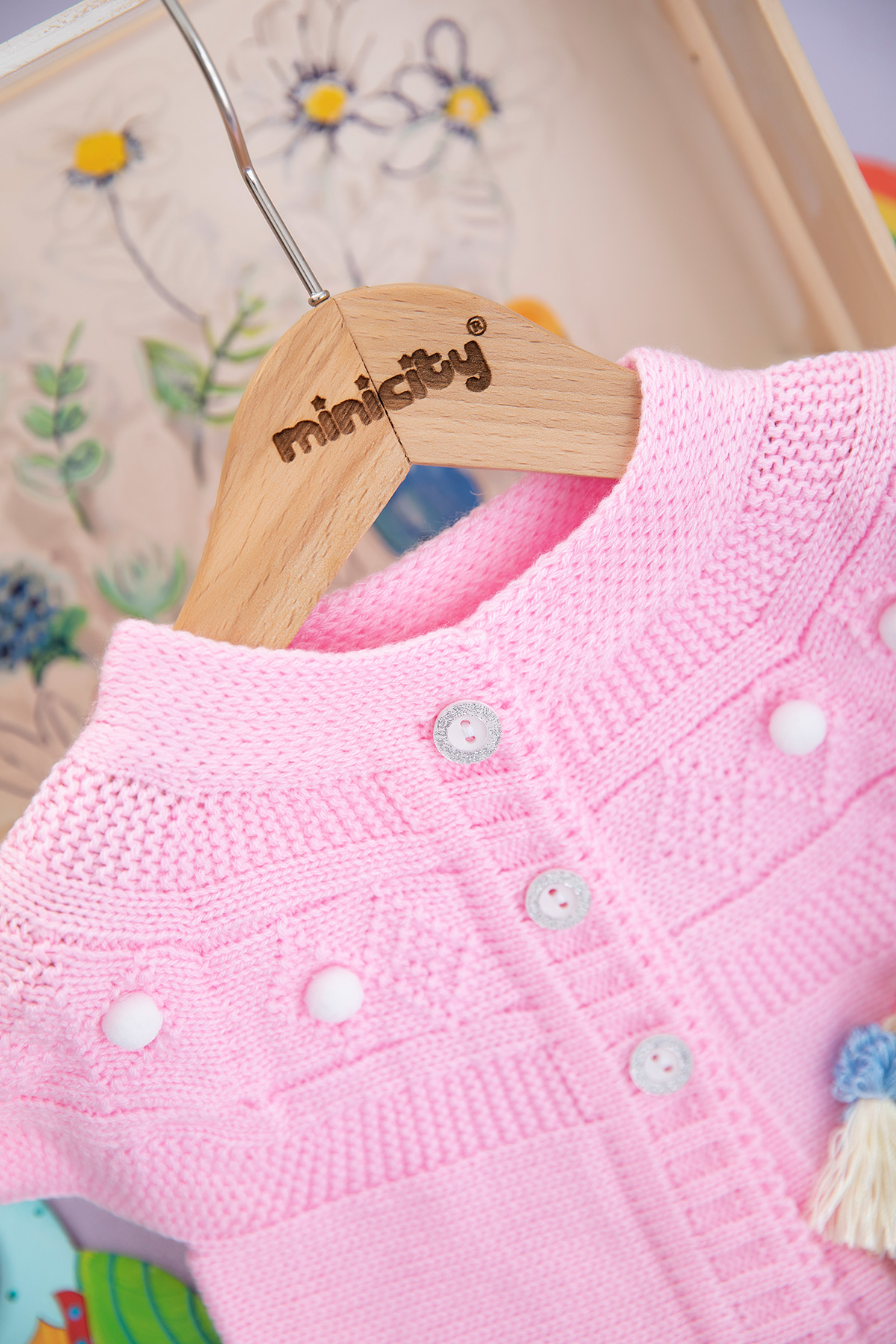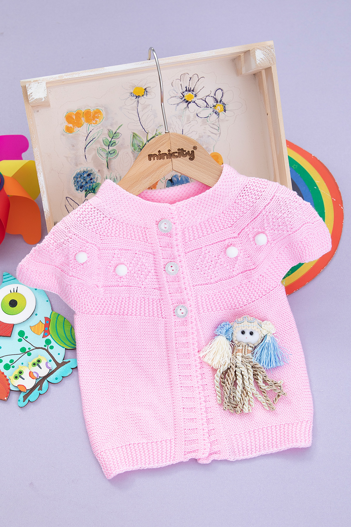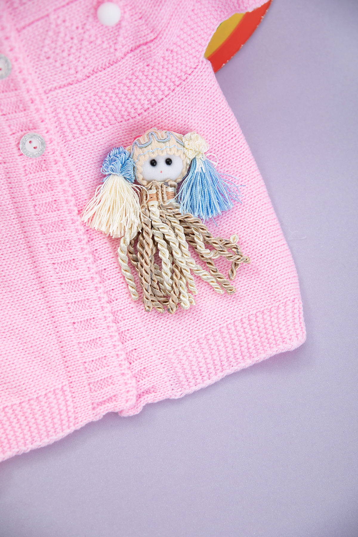 Kız Çocuk Püsküllü Bebekli Triko Yelek - 470 (1-5 Yaş)