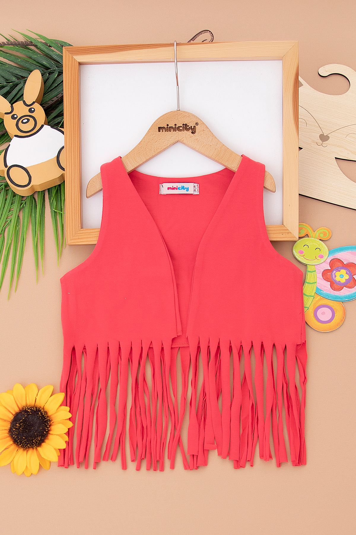 Kız Çocuk Püsküllü Yelek - 7022 (4-14 Yaş)