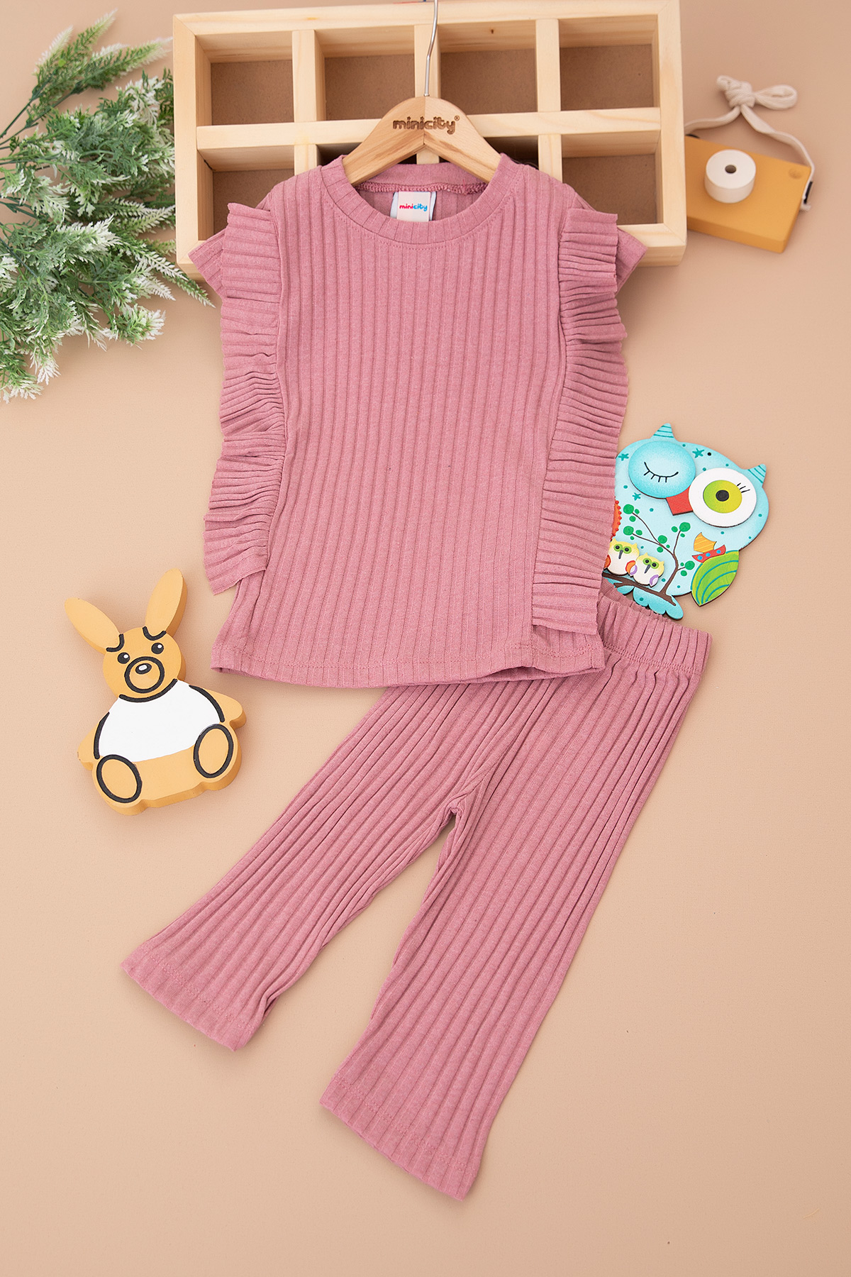 Kız Çocuk Raporlu Fırfırlı Yarım Kol Takım (3-10 Yaş)