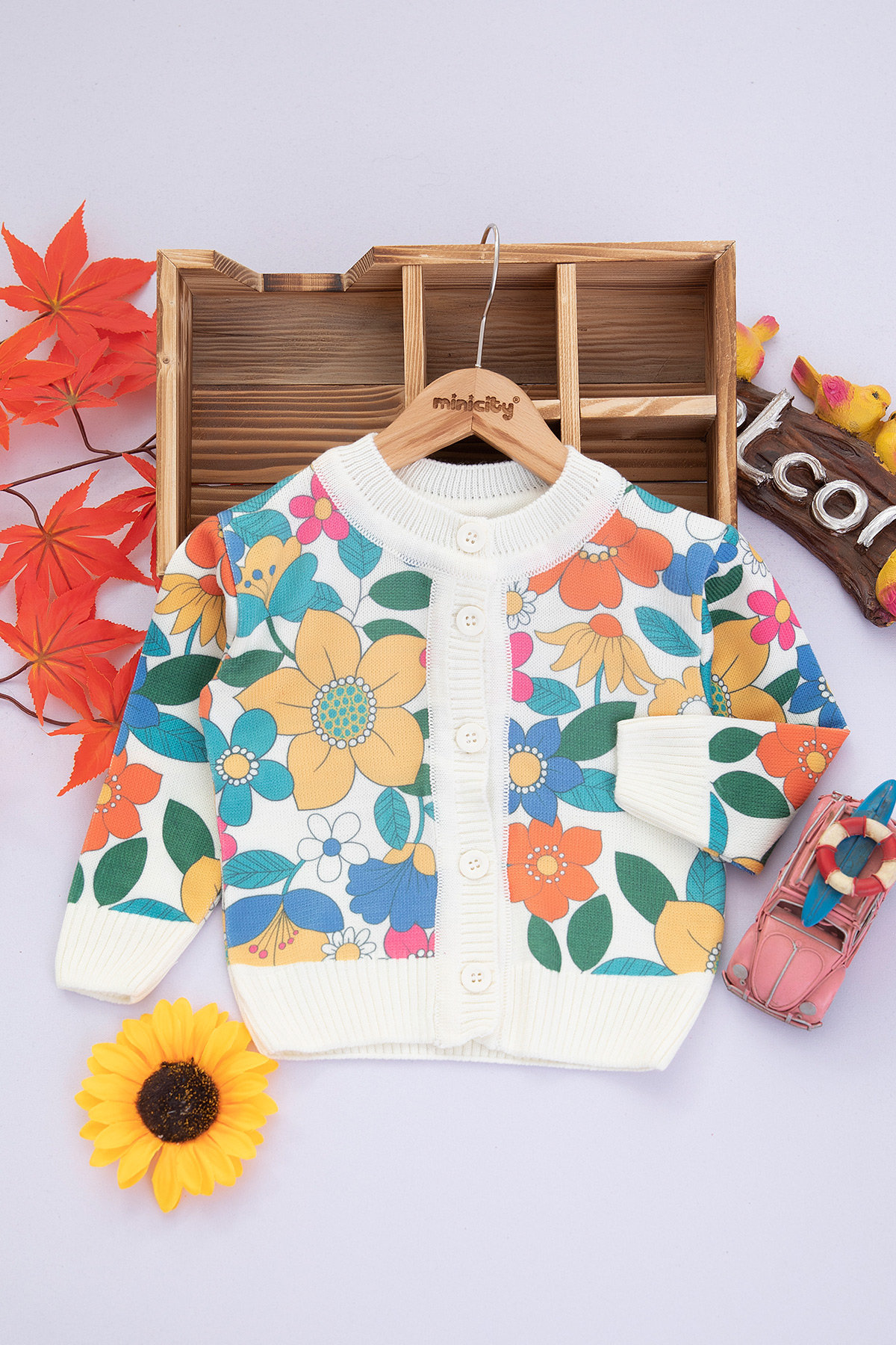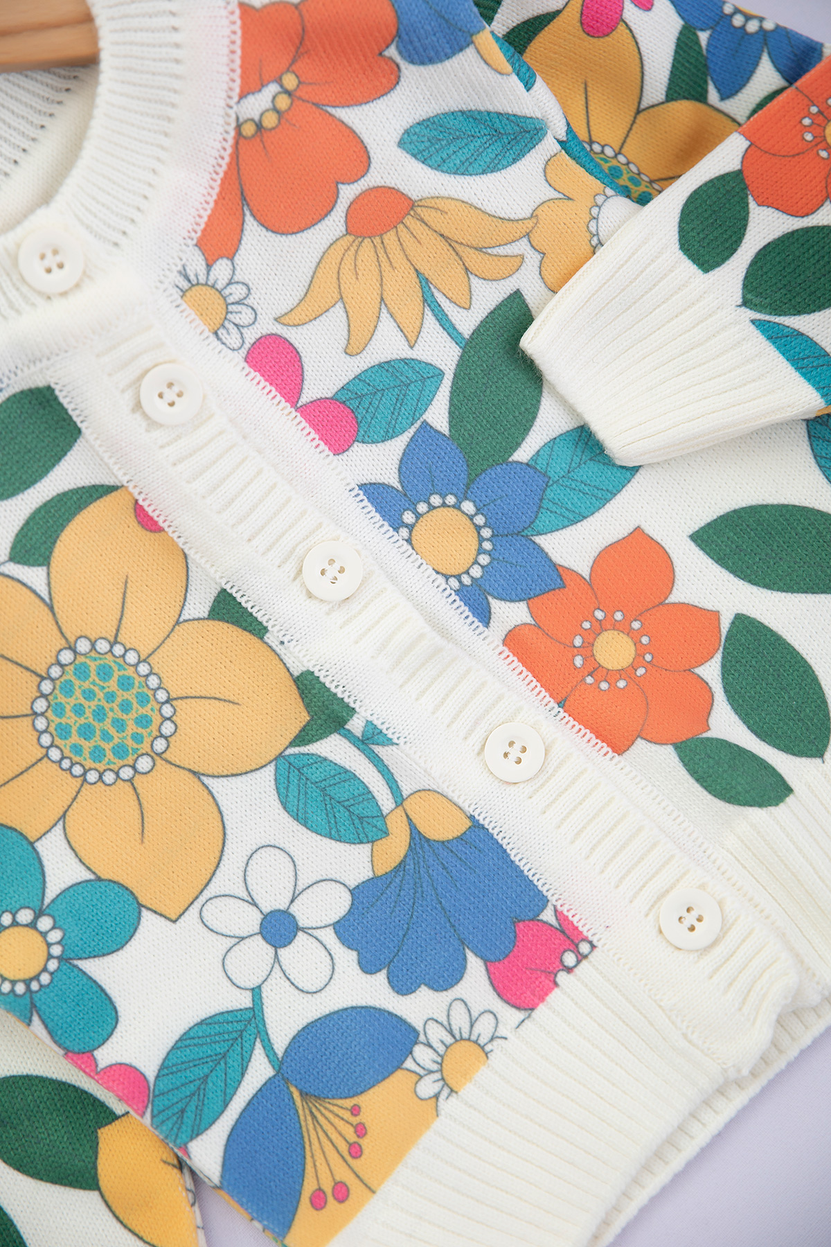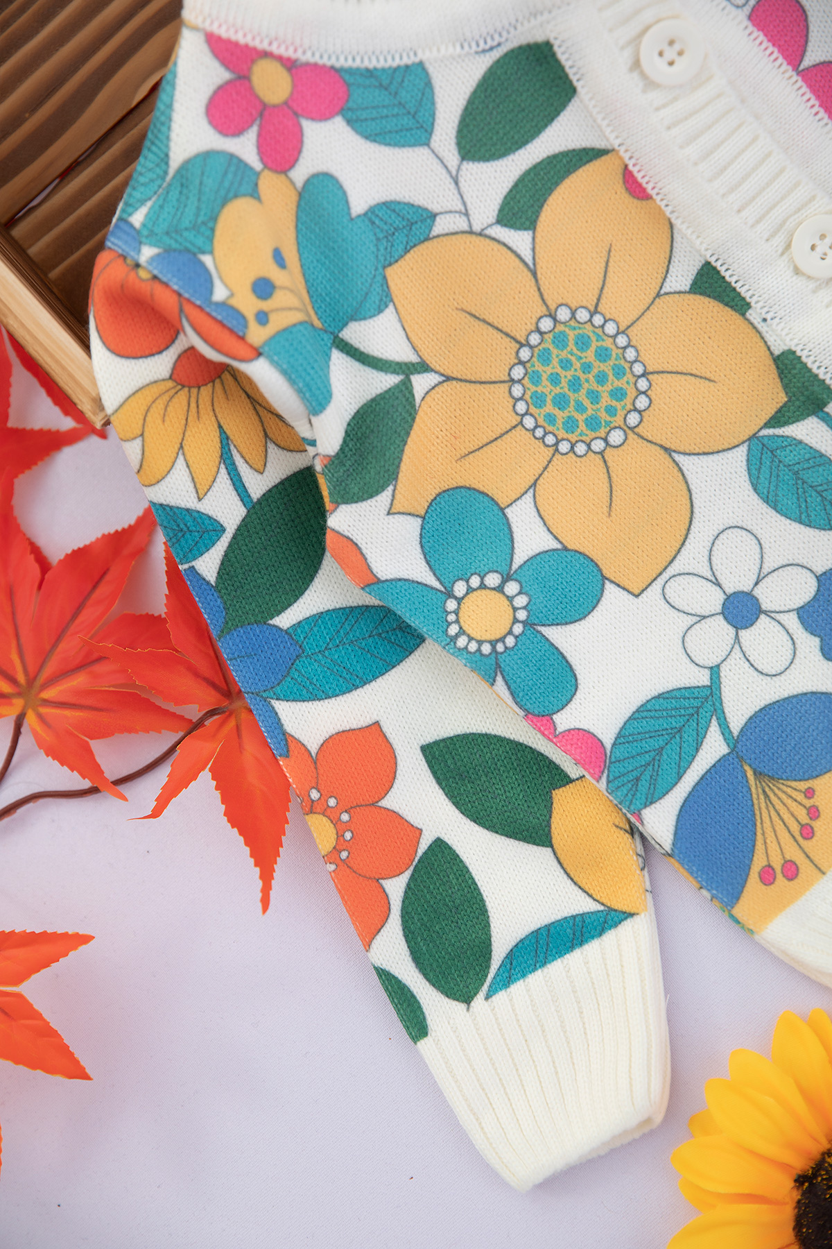 Kız Çocuk Renkli Çiçekli Düğmeli Triko Hırka (2-8 Yaş)