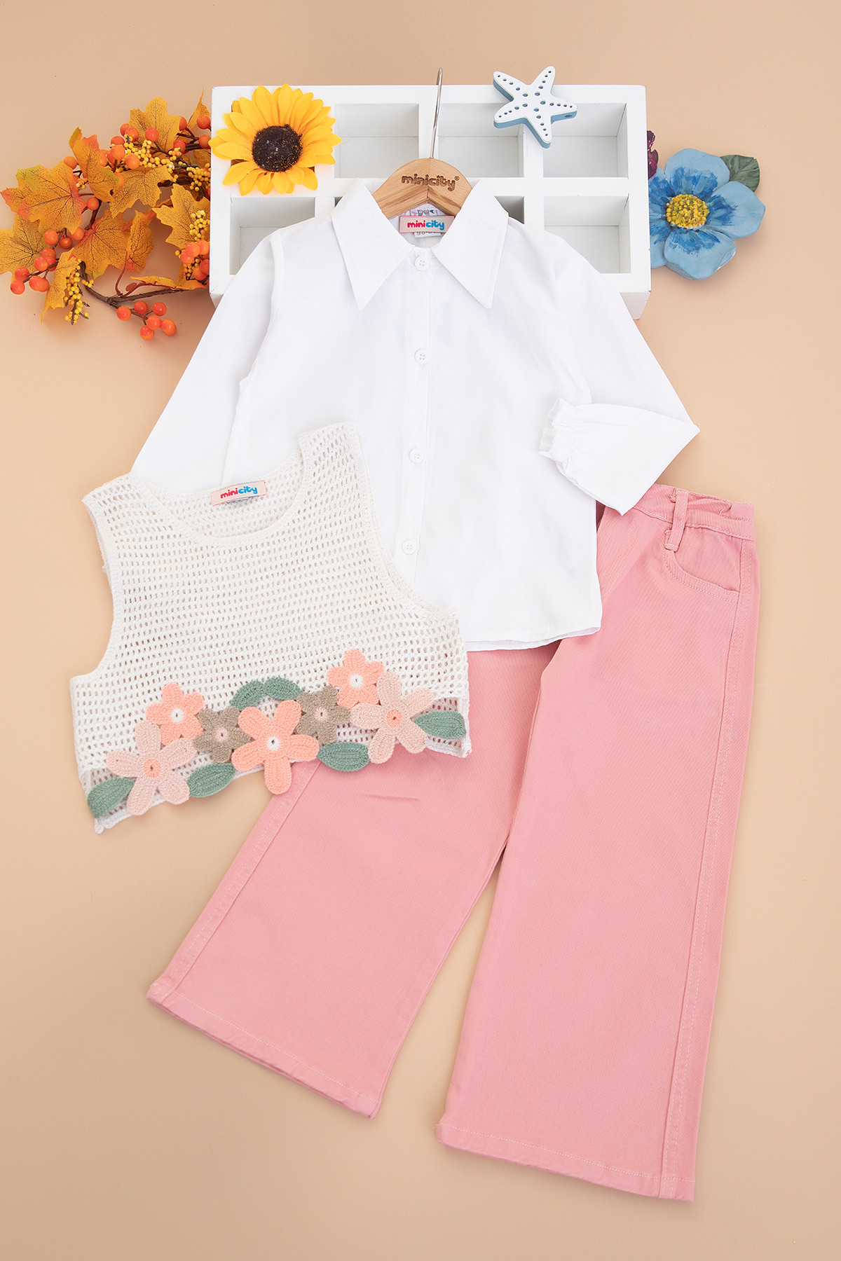 Kız Çocuk Renkli Çiçekli Süveterli Takım - 26124 (3-6 Yaş)
