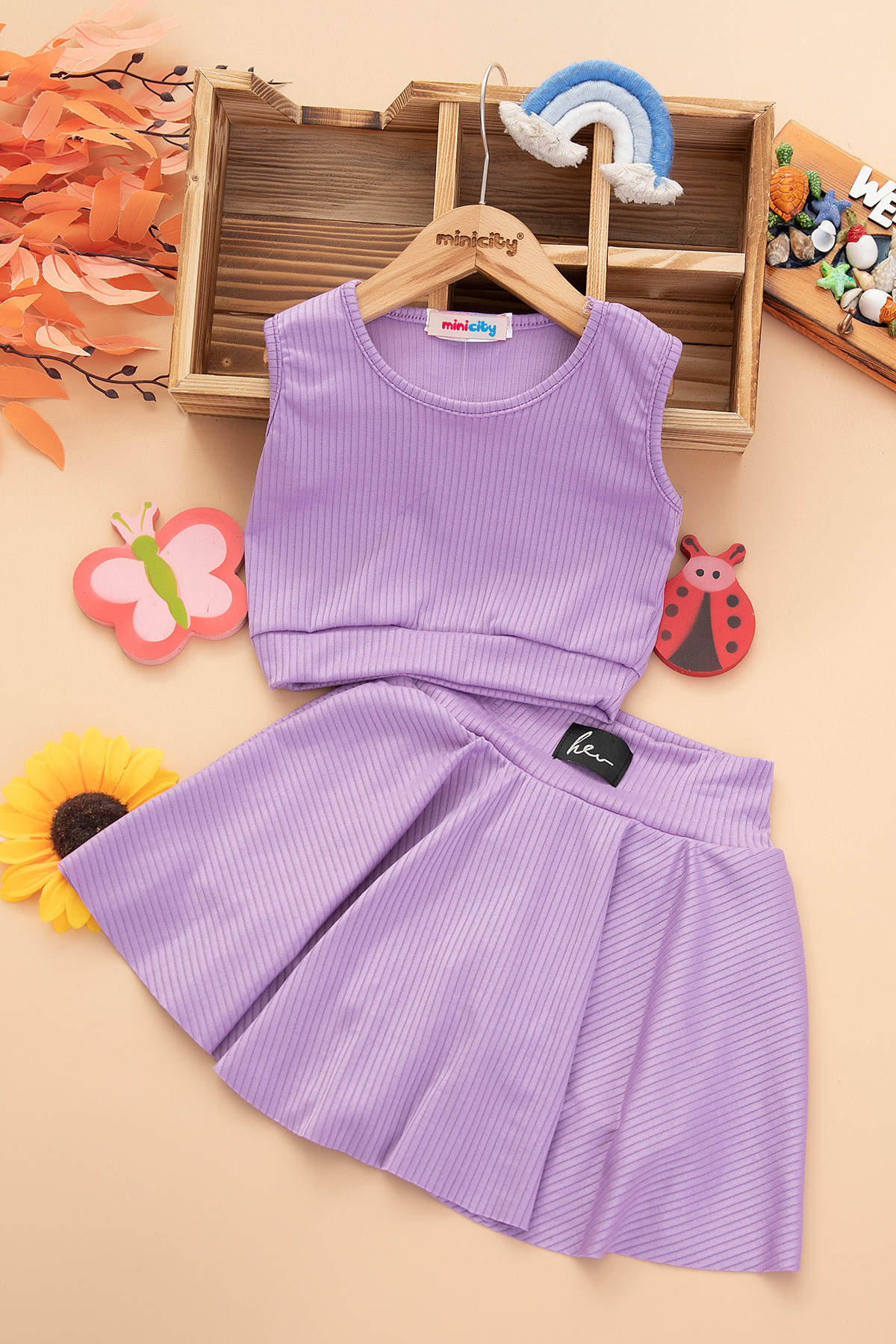 Kız Çocuk Renkli Crop Badi Şort Etek Takım - 2775 (5-14 Yaş)