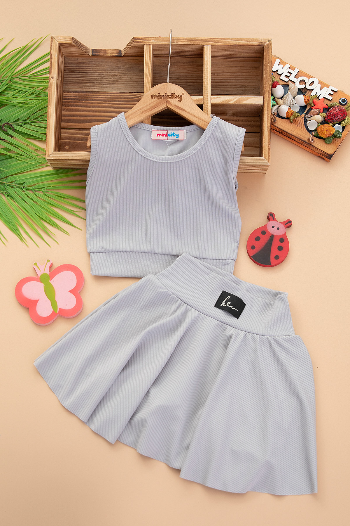 Kız Çocuk Renkli Crop Badi Şort Etek Takım - 2775 (5-14 Yaş)