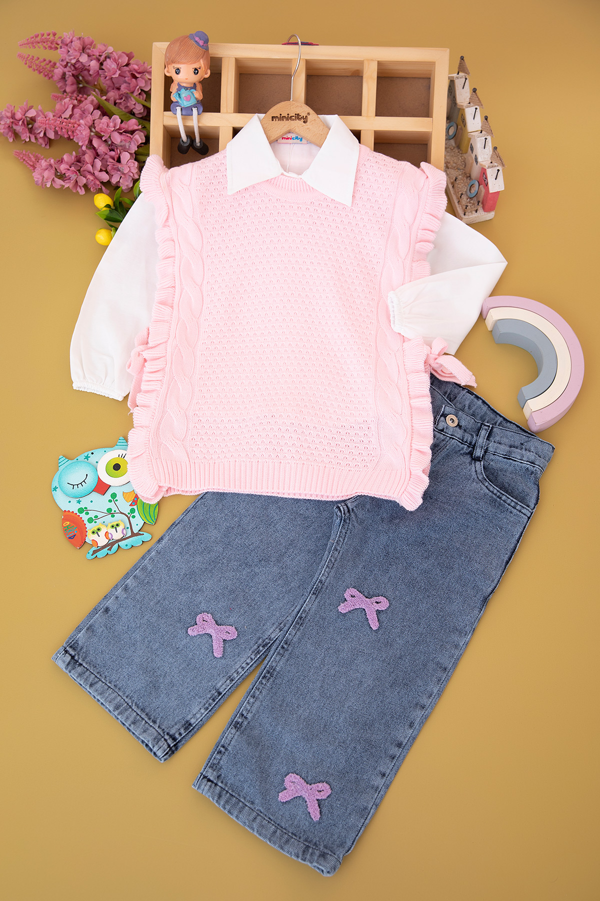 Kız Çocuk Renkli Fiyonk İşli Triko Takım - 335 (9-12 Yaş)