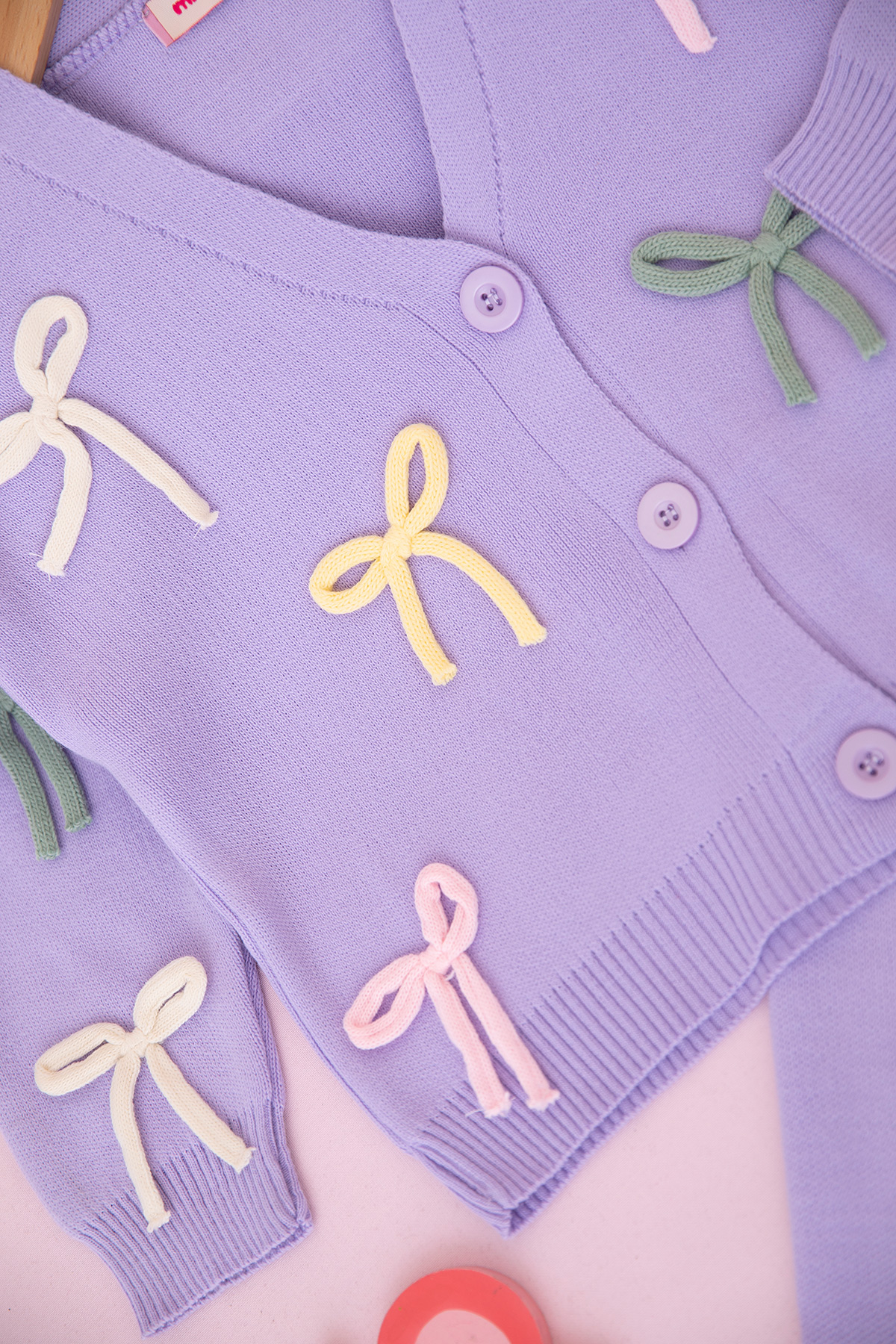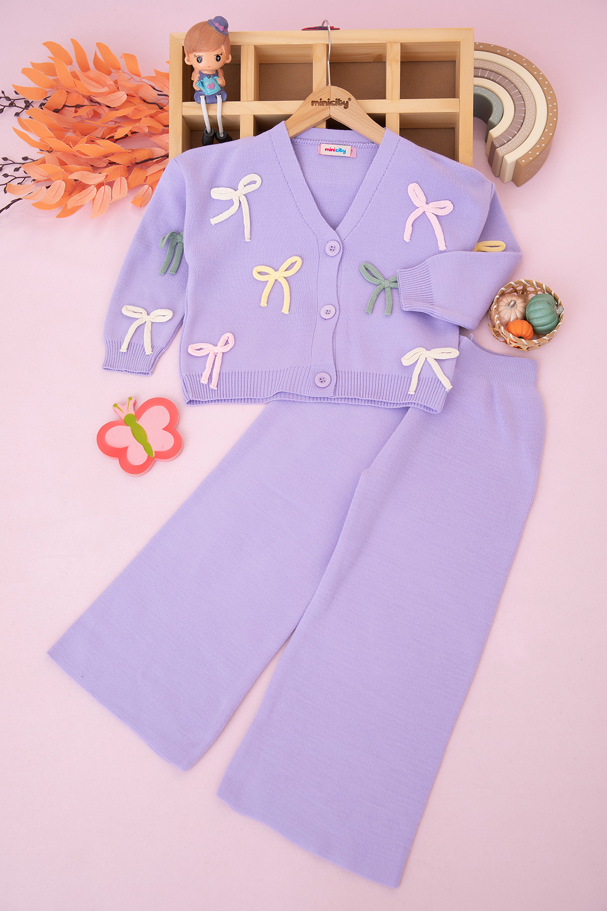 Kız Çocuk Renkli Fiyonklu Triko Takım - 1821 (4-8 Yaş)